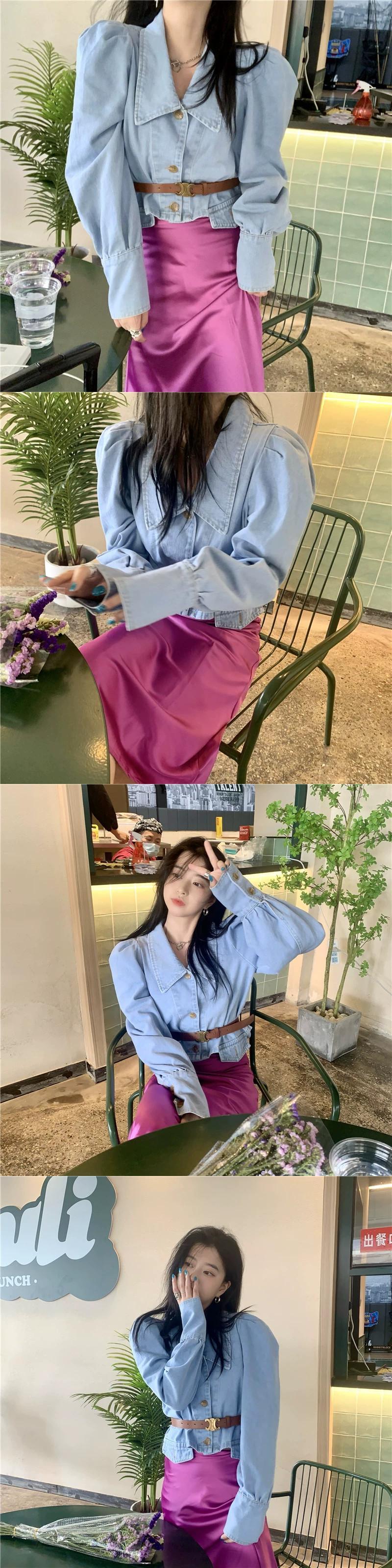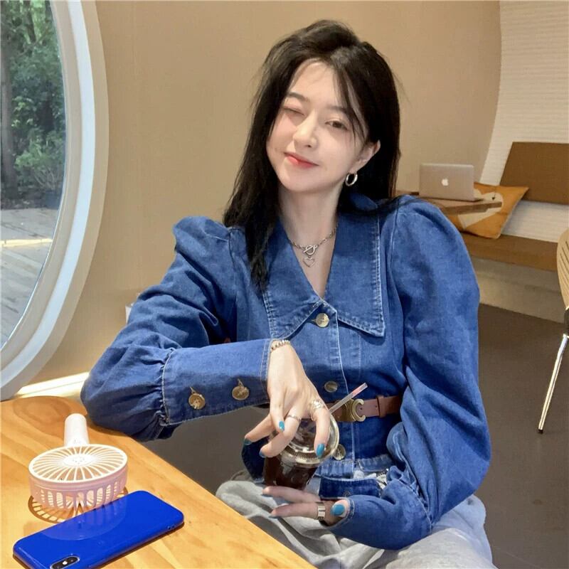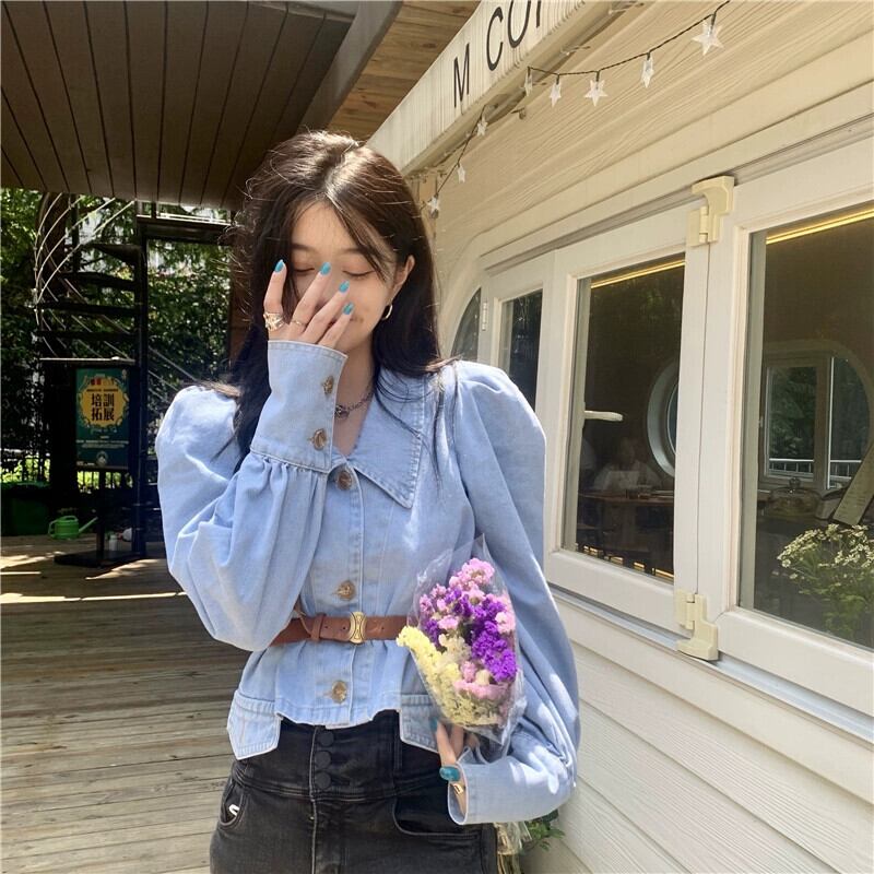 長袖デニムシャツレディース2023新作香港風レトロ気質ハイエンドプチシックショートトップ ロング 8571697564493449