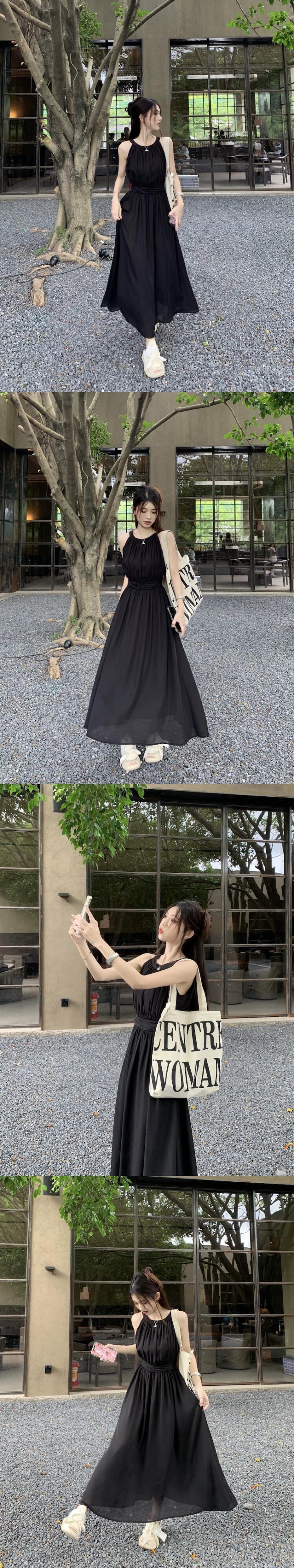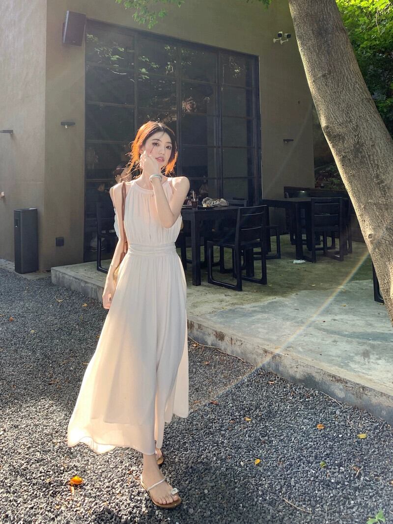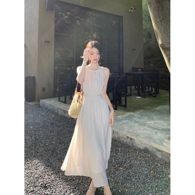 夏のホルターネックサスペンダードレス女性、フレンチスタイル、女神スタイル、高級ウェア、とても素敵なウエストを締めるロングスカート サマー 夏物 8571644809444611