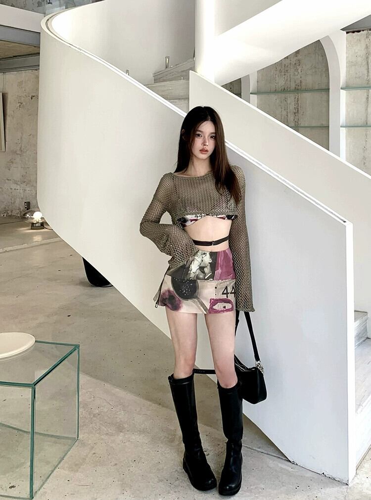 プリントスカート女性の夏のハイウエスト A ラインスカート 2023 新しいヨーロッパアメリカのセクシーなヒップカバーショートスカート サマー 夏物 Aライン ヨーロピアン 8571663119533241