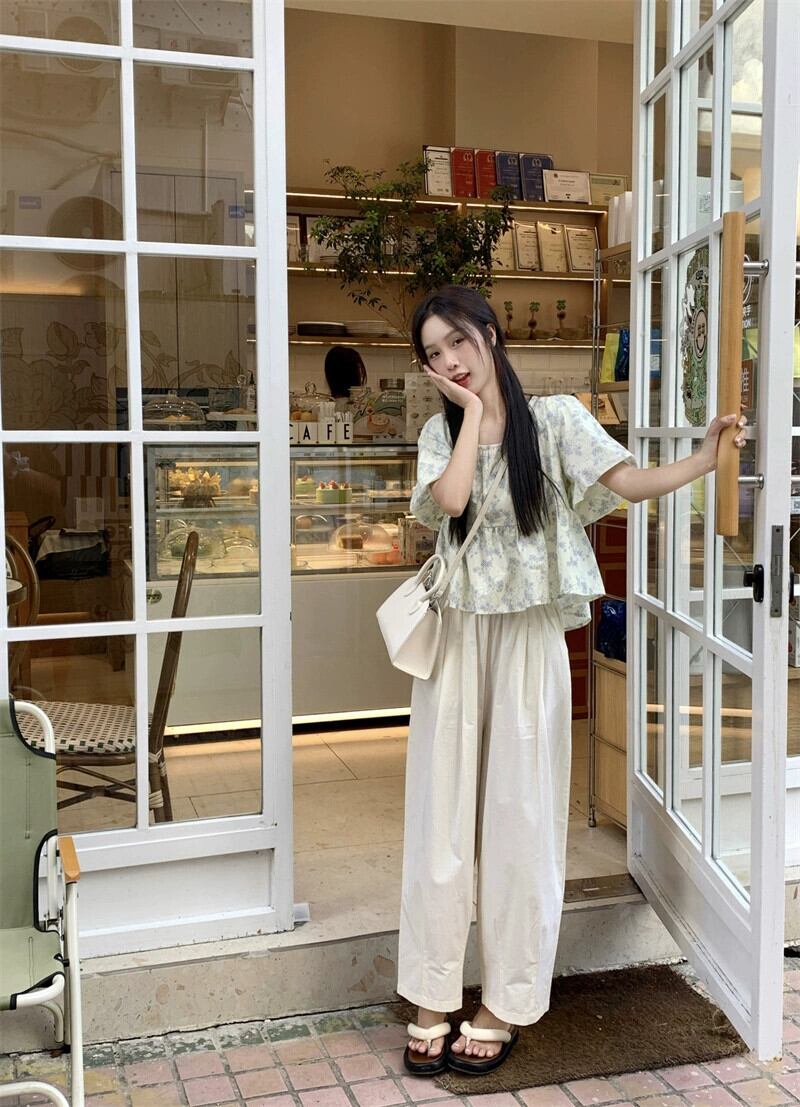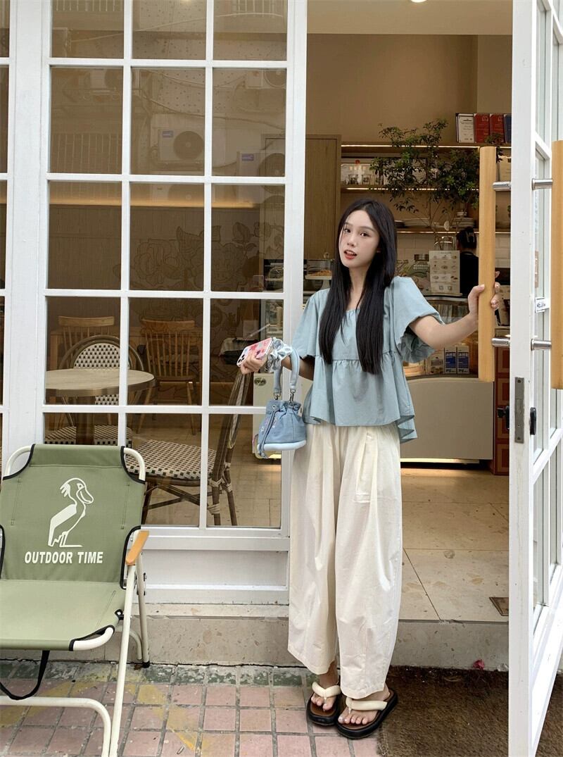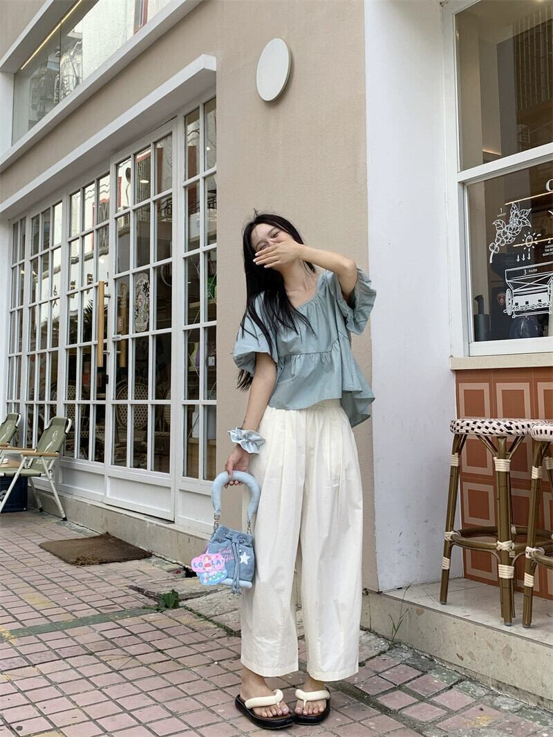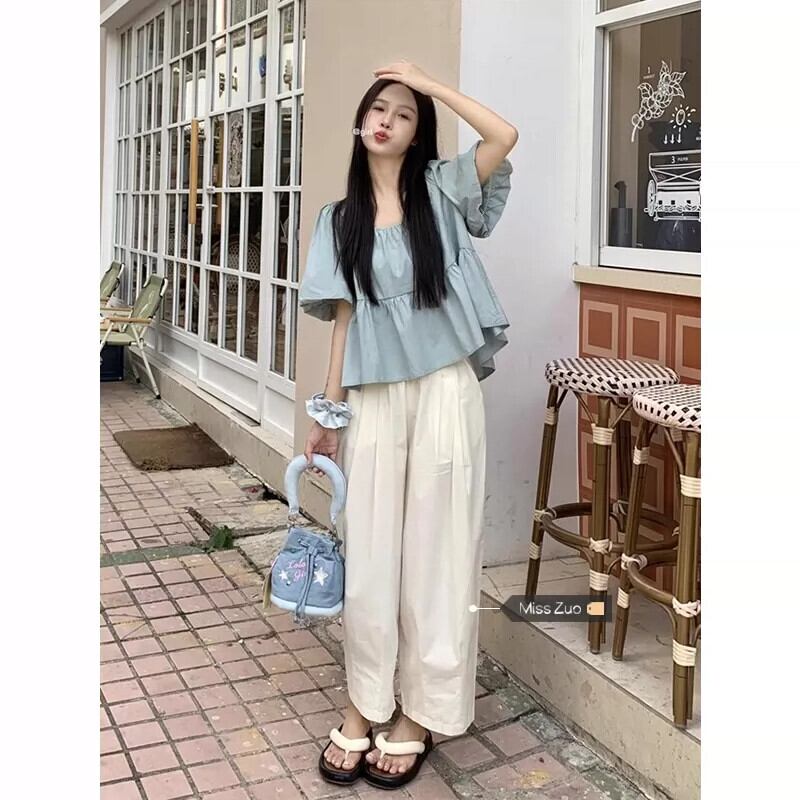 ベビードールトップス女性夏 2023 新しいスタイルフランス甘くて優しい小さなスクエアネックパフスリーブブルーシャツ 大人ガーリー スウィート キュート カジュアル サマー 夏物 スクウェア 857161278864932