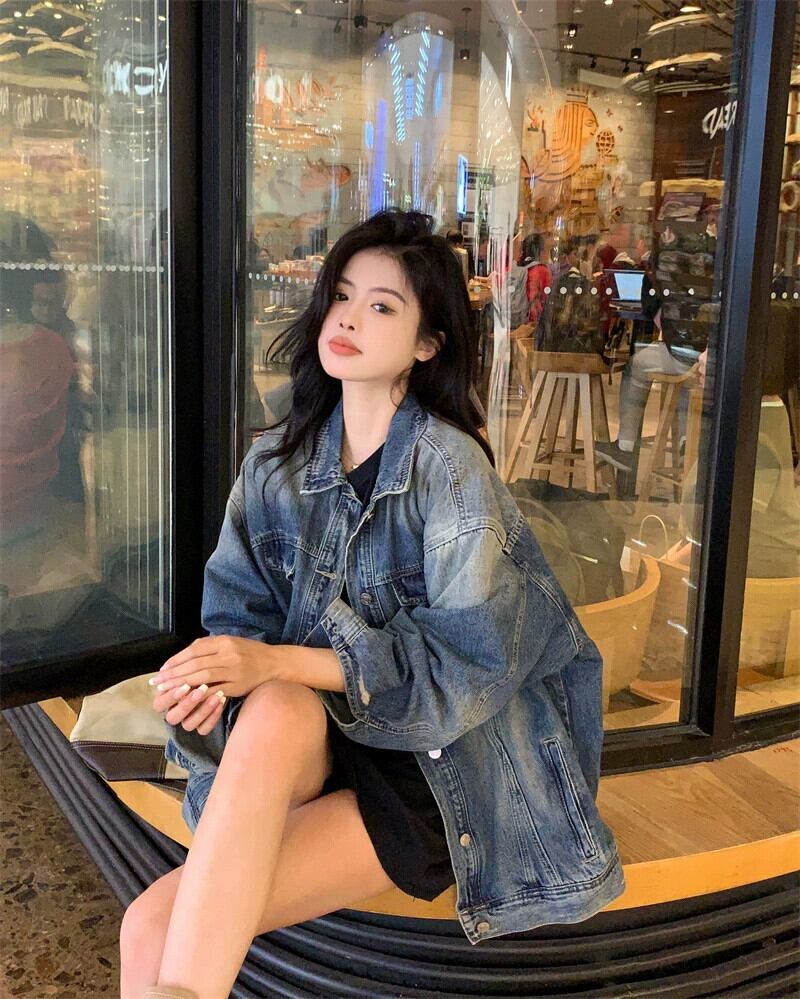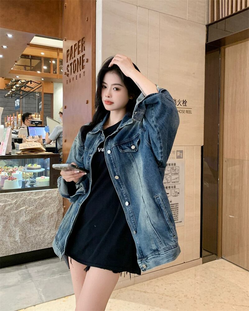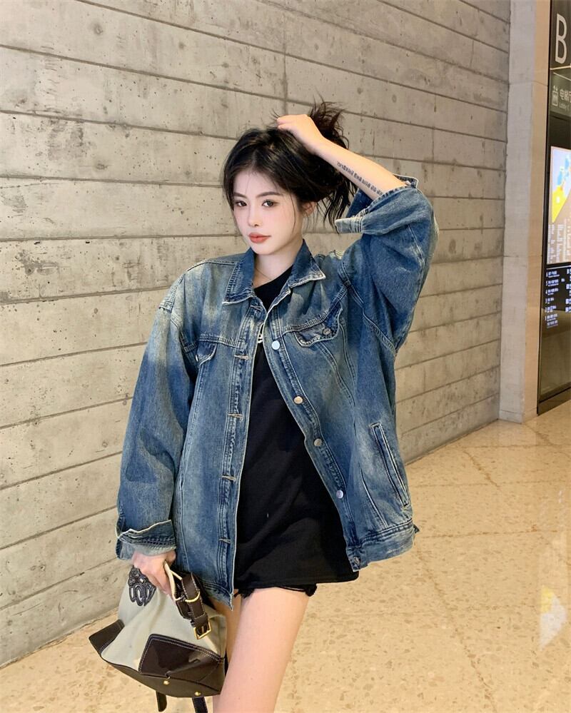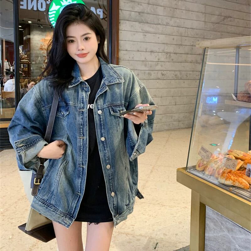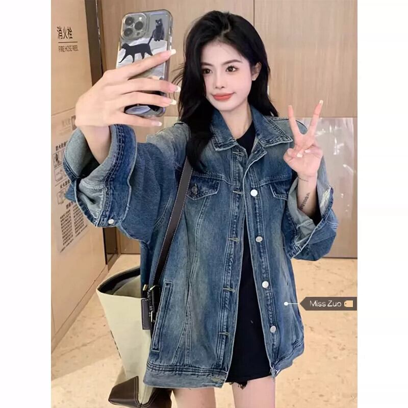 ブルーデニムジャケットレディース秋2023新しい香港スタイルレトロシックなルーズレイジースタイル多目的トップ オータム 秋物 8571674320008547