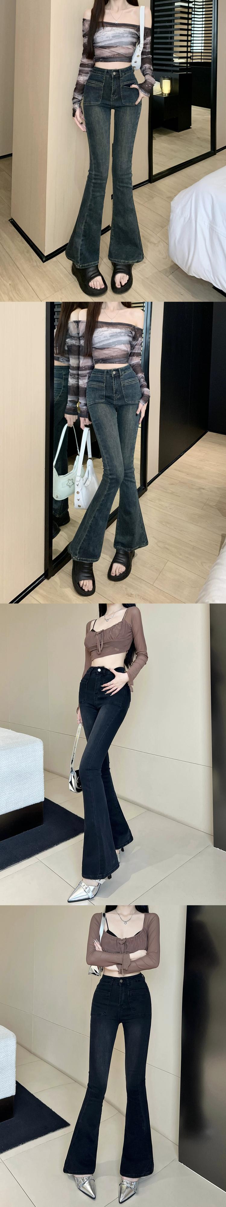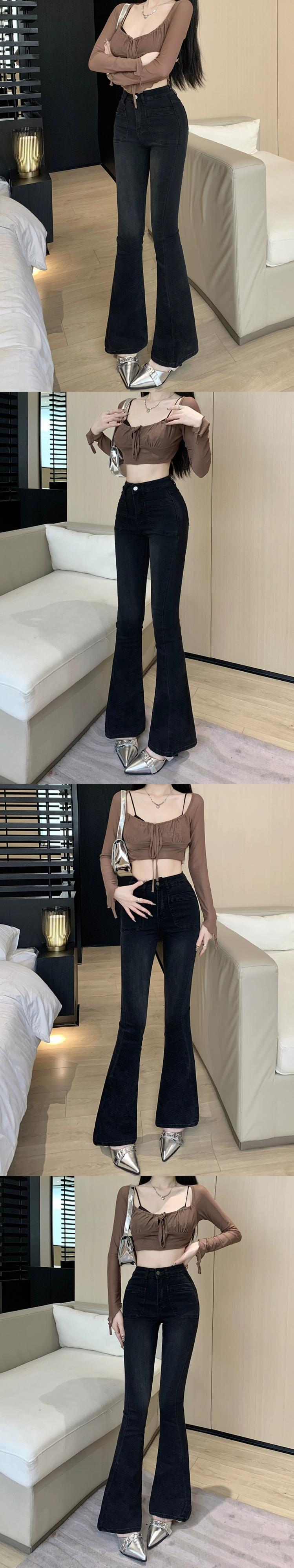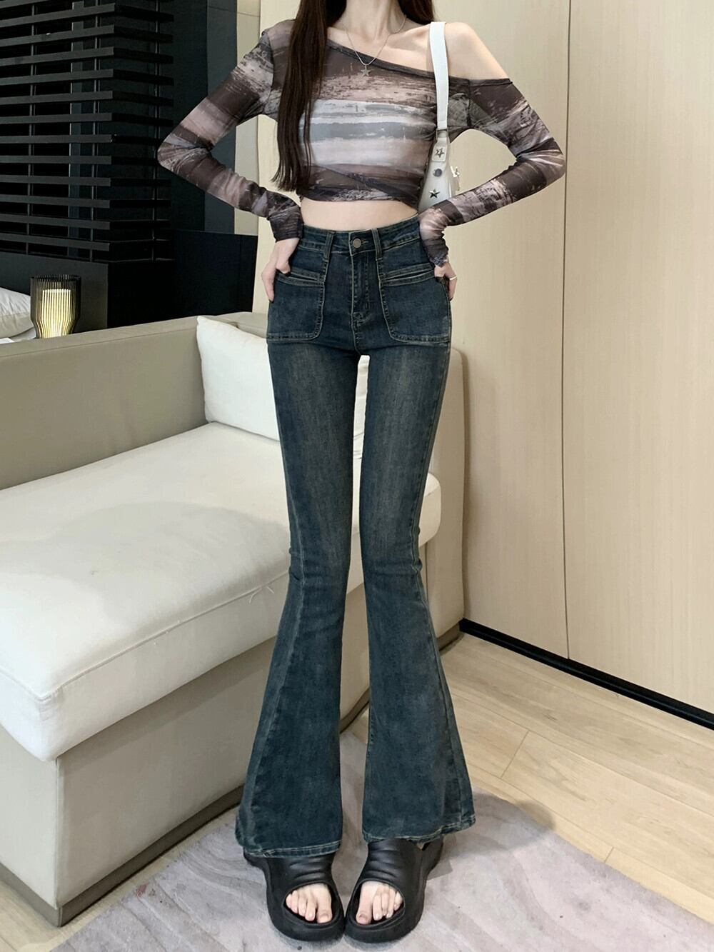 ブルーマイクロフレアジーンズレディース、ハイウエストスリム馬蹄パンツ、2023初秋の新スタイル、レトロストレッチフロアモップパンツ レッド オータム 秋物 8571694441082658
