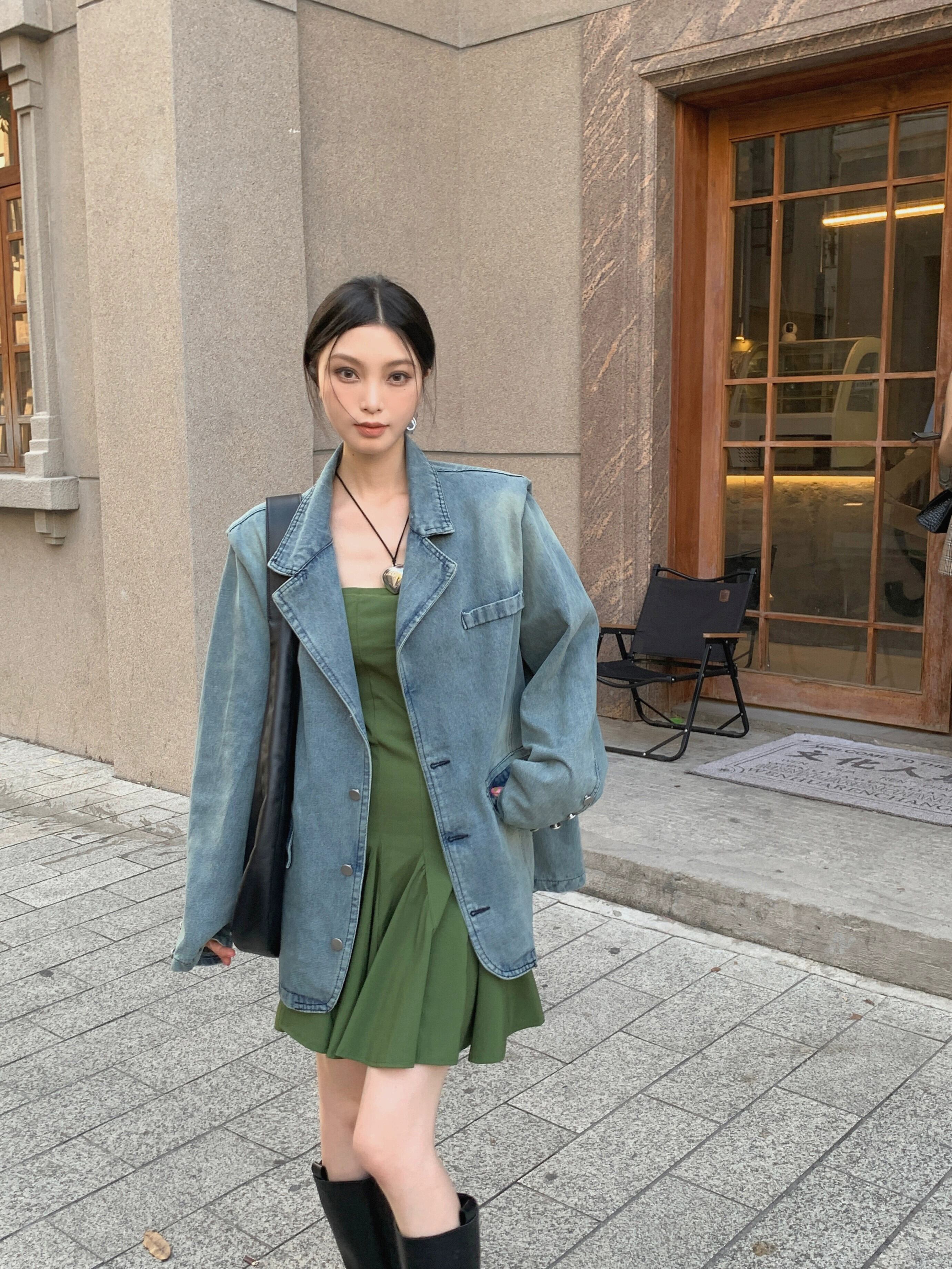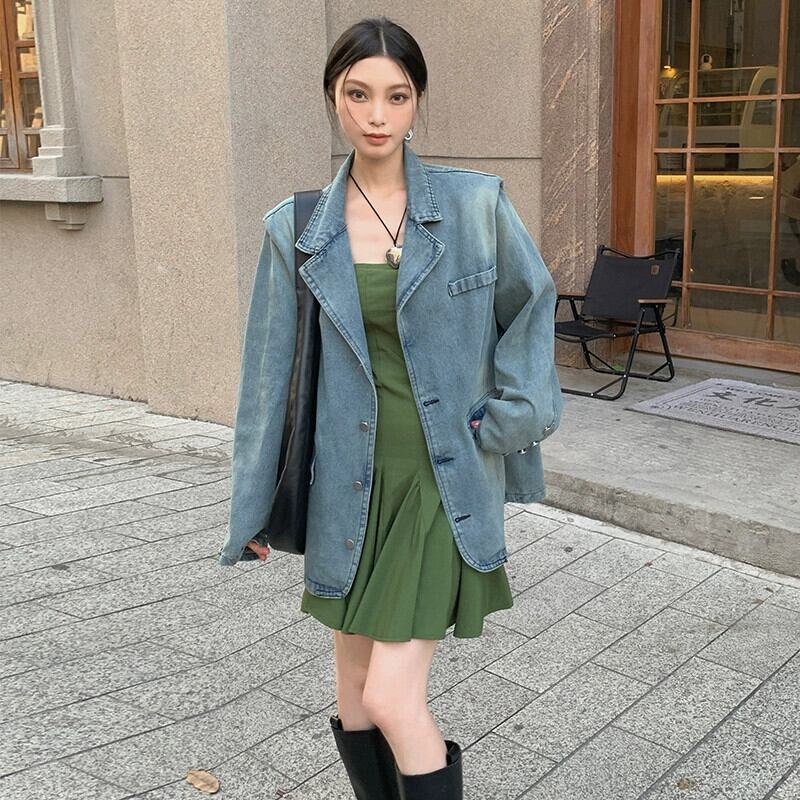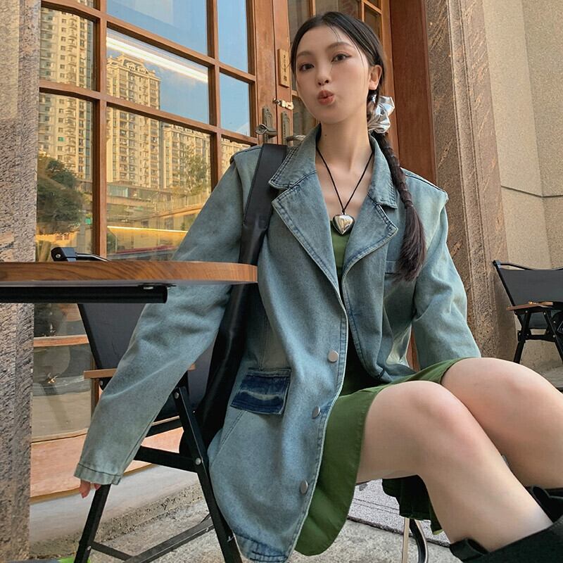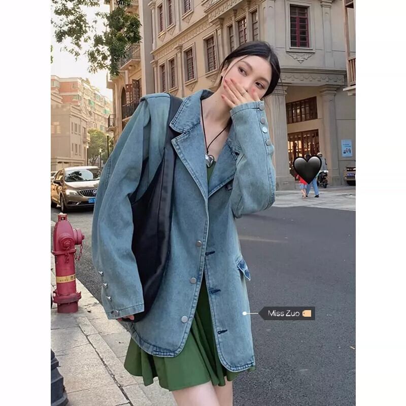 デニムスーツジャケット女性 2023 秋の新スタイルアメリカンレトロ気質ハイエンドストリートショルダーパッドカジュアルスーツ オータム 秋物 8571673703705669
