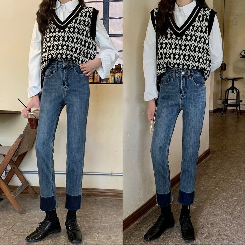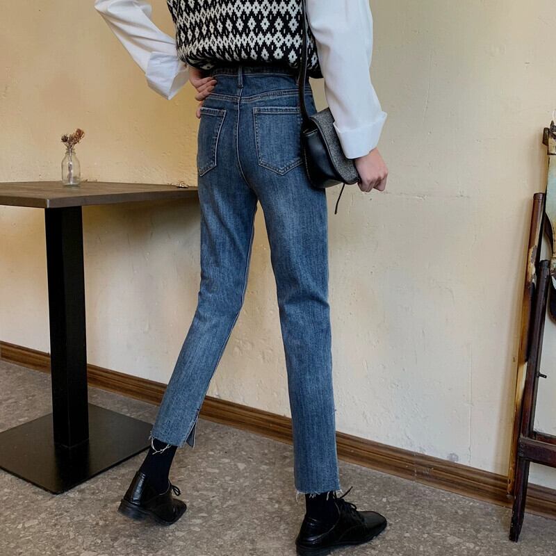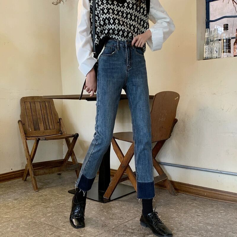 レトロブルー 9 点ジーンズ女性 2023 秋の新しいスタイルの小さなハイウエストスリムストレート弾性パイプパンツ エラスティック 伸縮 オータム 秋物 8571660741218923