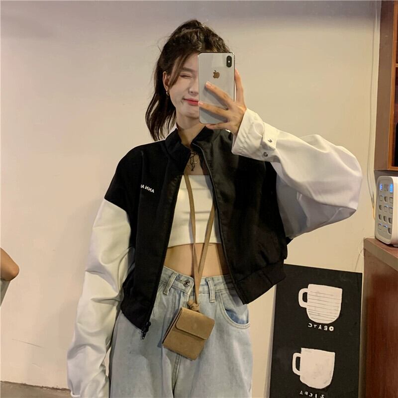 ベースボールジャケット レディース 秋 Sサイズ 2023 アメリカンレトロ - ネットセレブ人気ショートジャケット オータム 秋物 8571658372746558