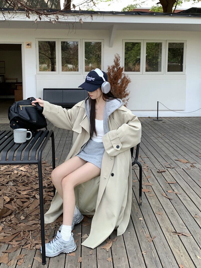 カーキ トレンチコート レディース 2023秋新作 ロング丈 膝上 英国風 高級 人気コート オータム 秋物 8571680568799992