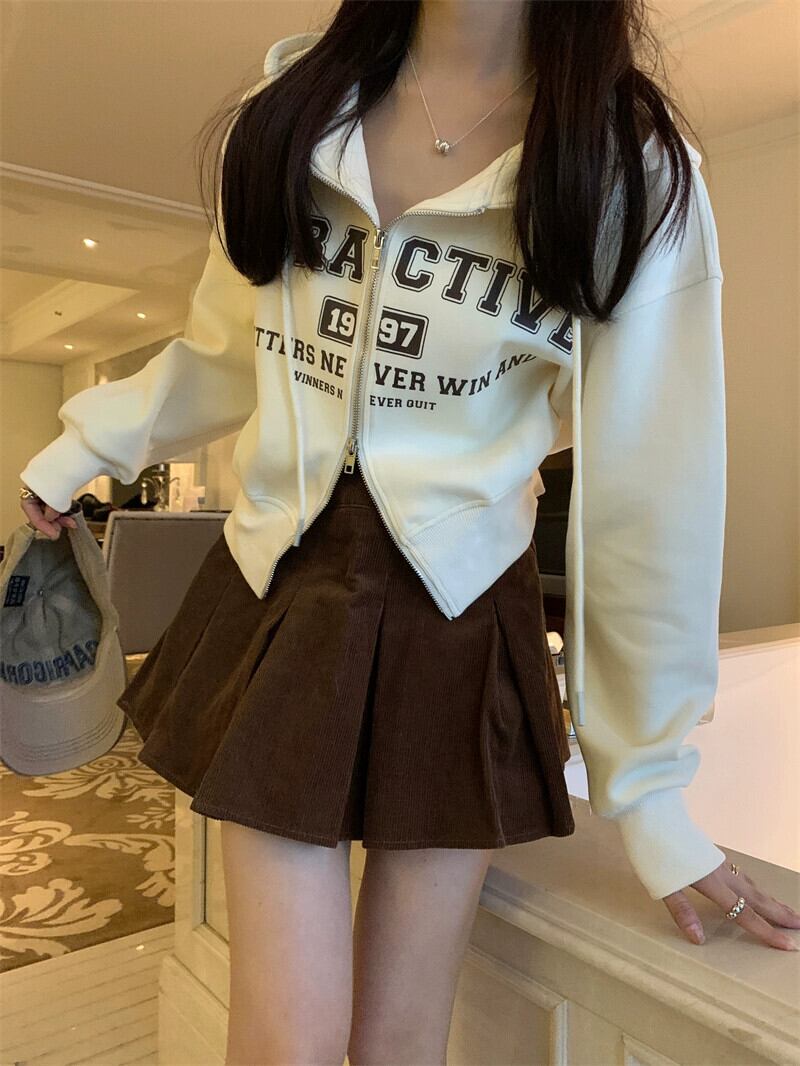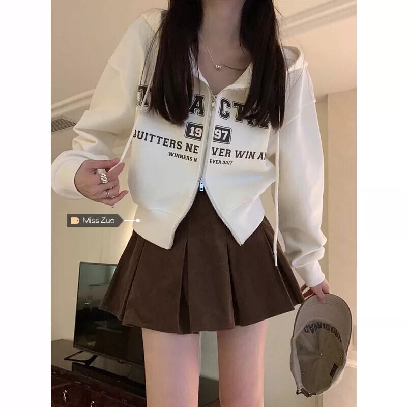 両エンドジッパーフード付きスウェットシャツジャケット女性 2023 初秋の新しいアメリカンレトロな小さなショートトップトレンディな オータム 秋物 8571647516781293