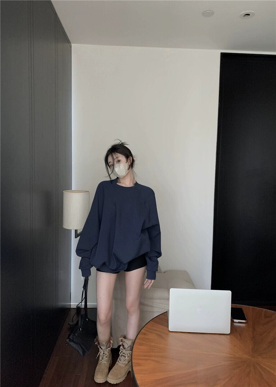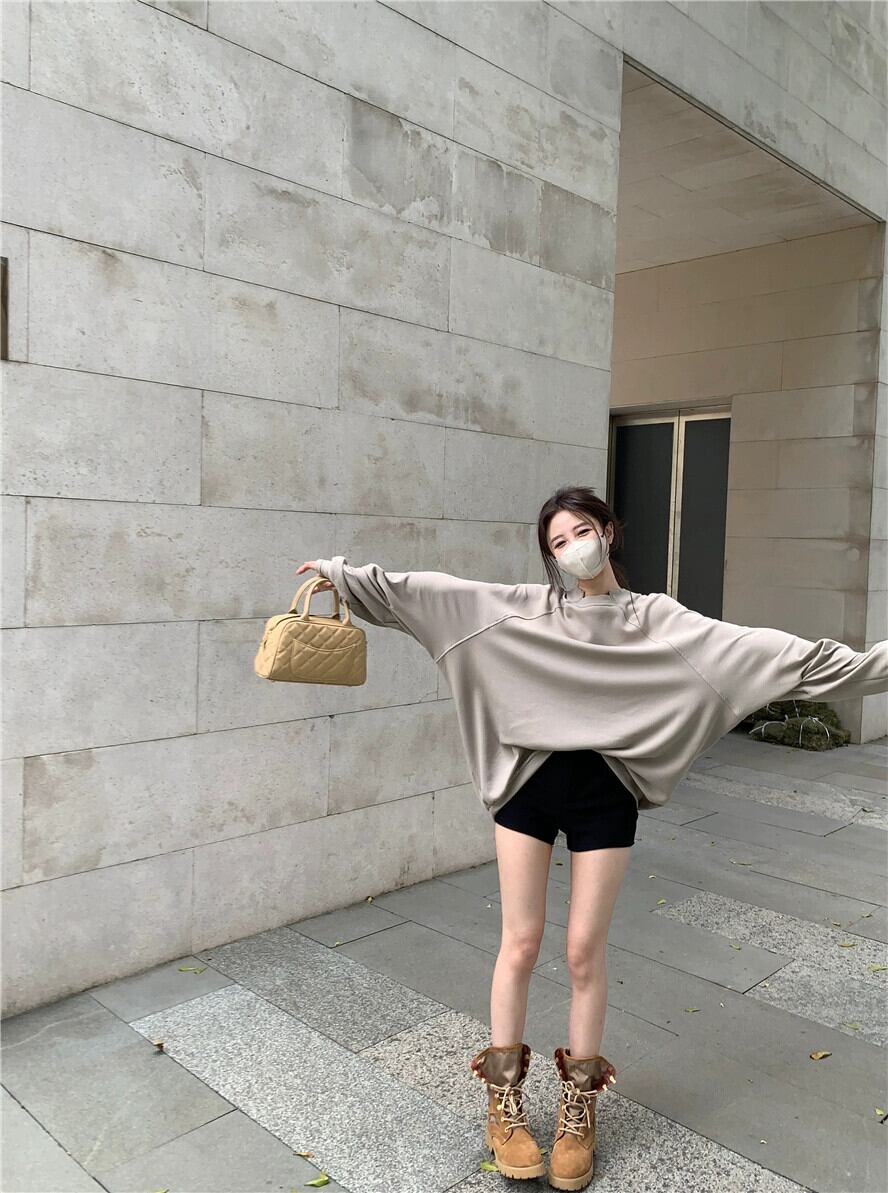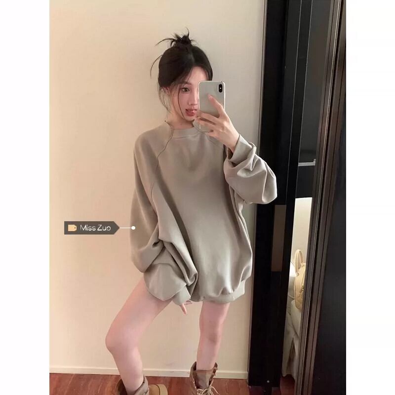 アプリコット長袖スウェットシャツレディース2023初秋新作人気スタイルルーズBFレイジースタイルオーバーサイズトップ ロング オータム 秋物 857169062443547
