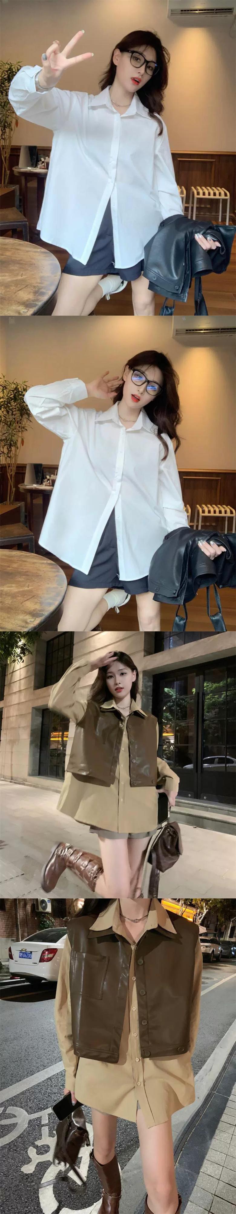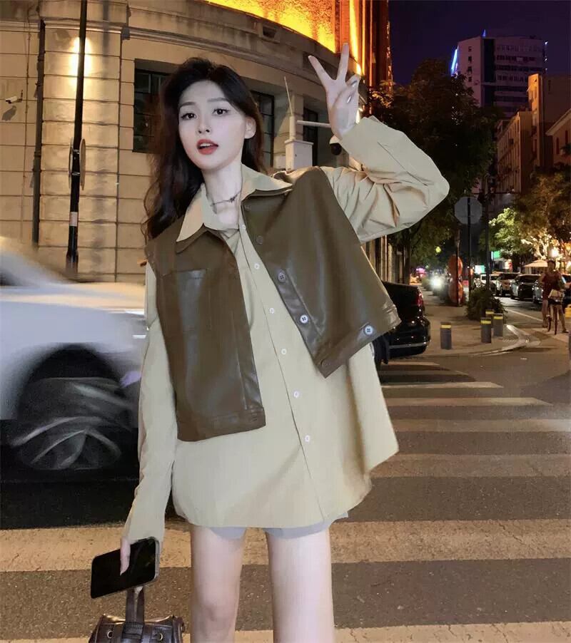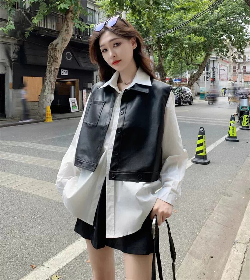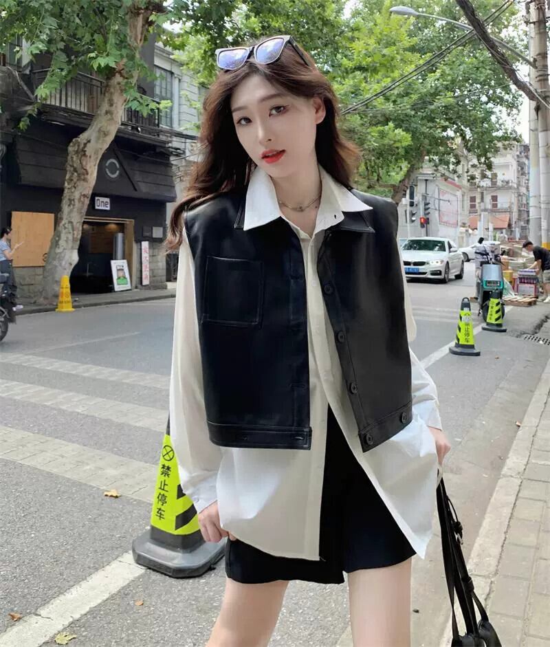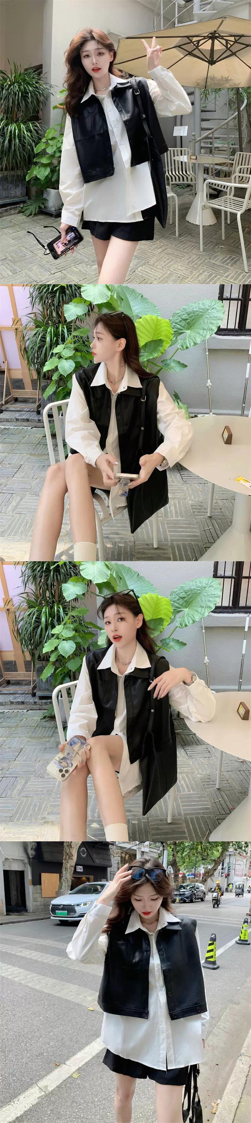 黒革のベストジャケット女性 2023 秋の新しいシャツとベストの重ね着、ファッショナブルでスタイリッシュなベスト レッド ブラック オータム 秋物 レザー 8571660196971574