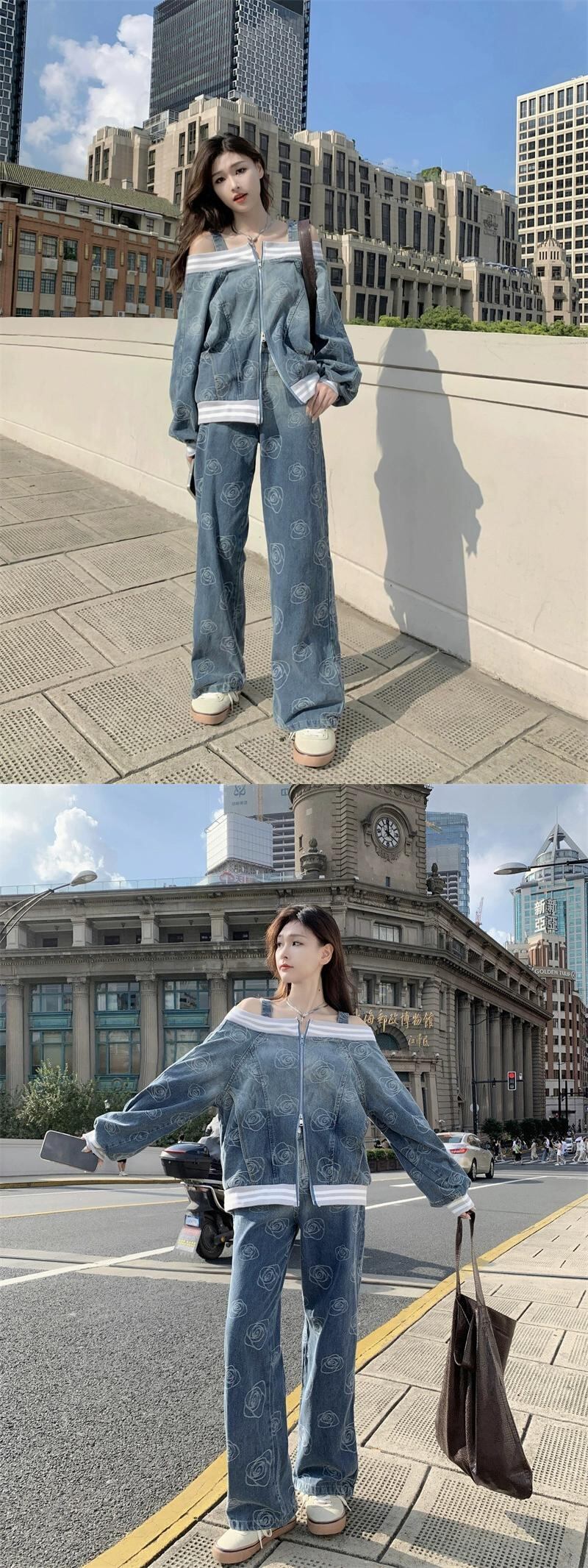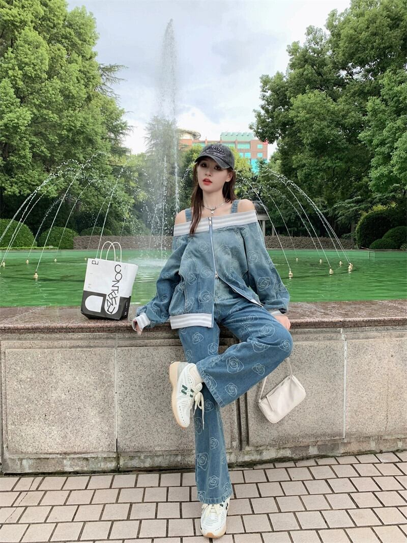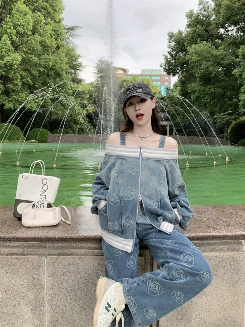 ワンショルダージャカードデニムジャケットレディース2023秋新作デザインニッチウエスタンスタイルトップ オータム 秋物 8571645153104311