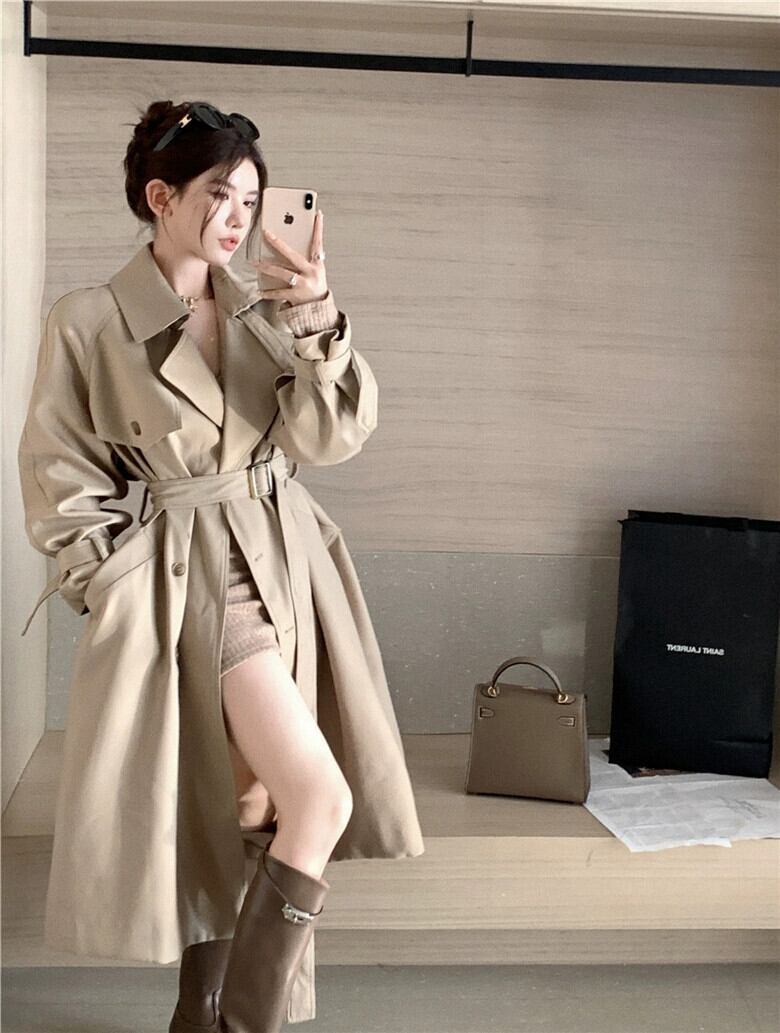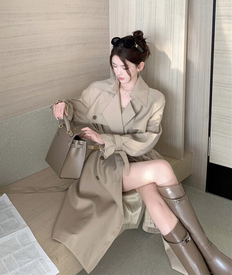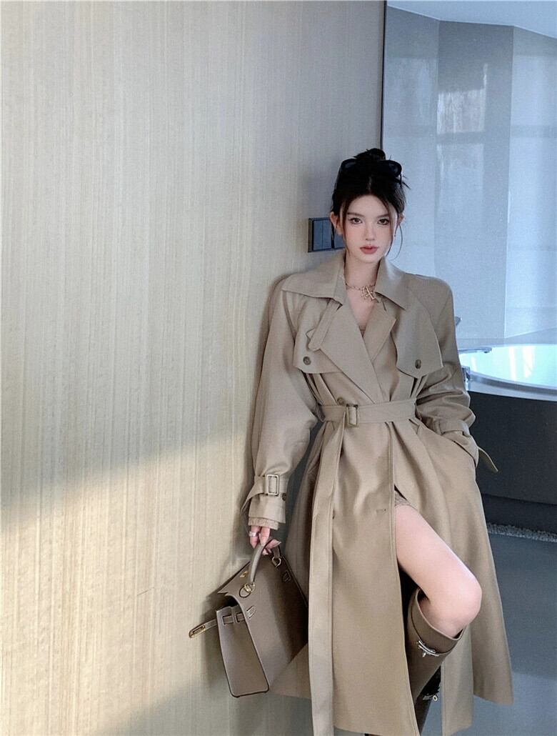 カーキ トレンチコート レディース 2023 秋新作 英国風 高級 超美形 ロングコート オータム 秋物 8571614104246403