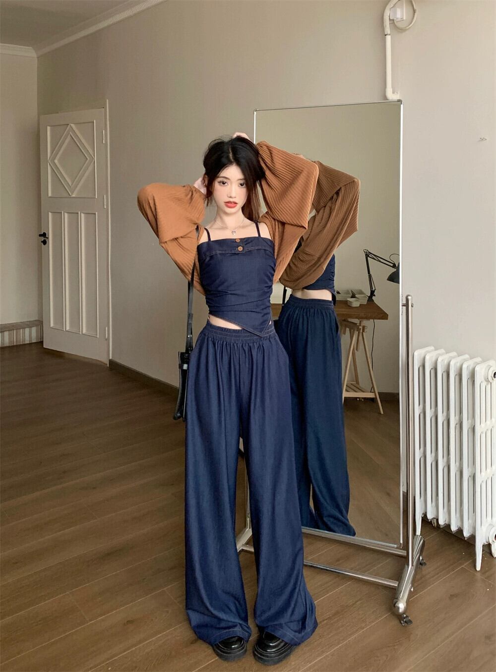 デニム キャミソール レディース 秋ボトリング チューブ トップ 香港スタイルのホットガールのシックでユニークな胸巻き不規則なトップ オータム 秋物 85716803528924