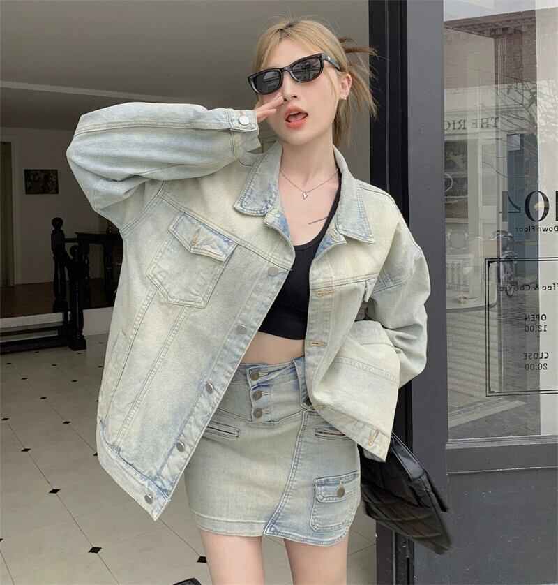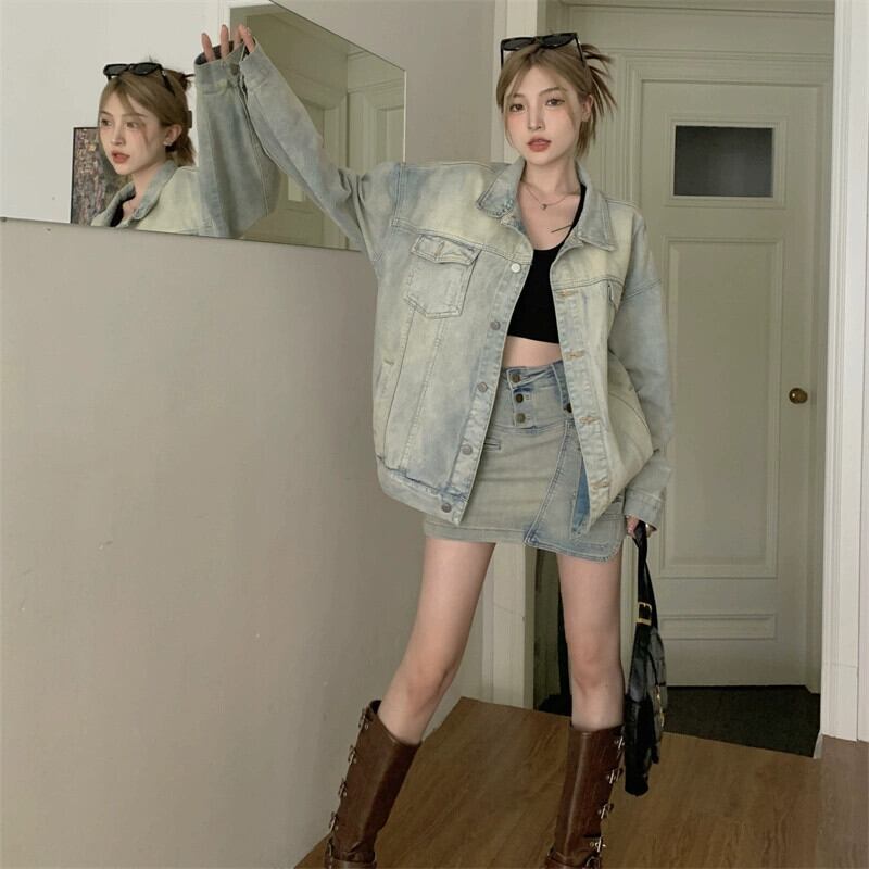 イエローマッドデニムジャケットレディース 2023 秋の新スタイルアメリカンレトロニッチハイストリートブランド怠惰なスタイルトップ オータム 秋物 8571682150854628
