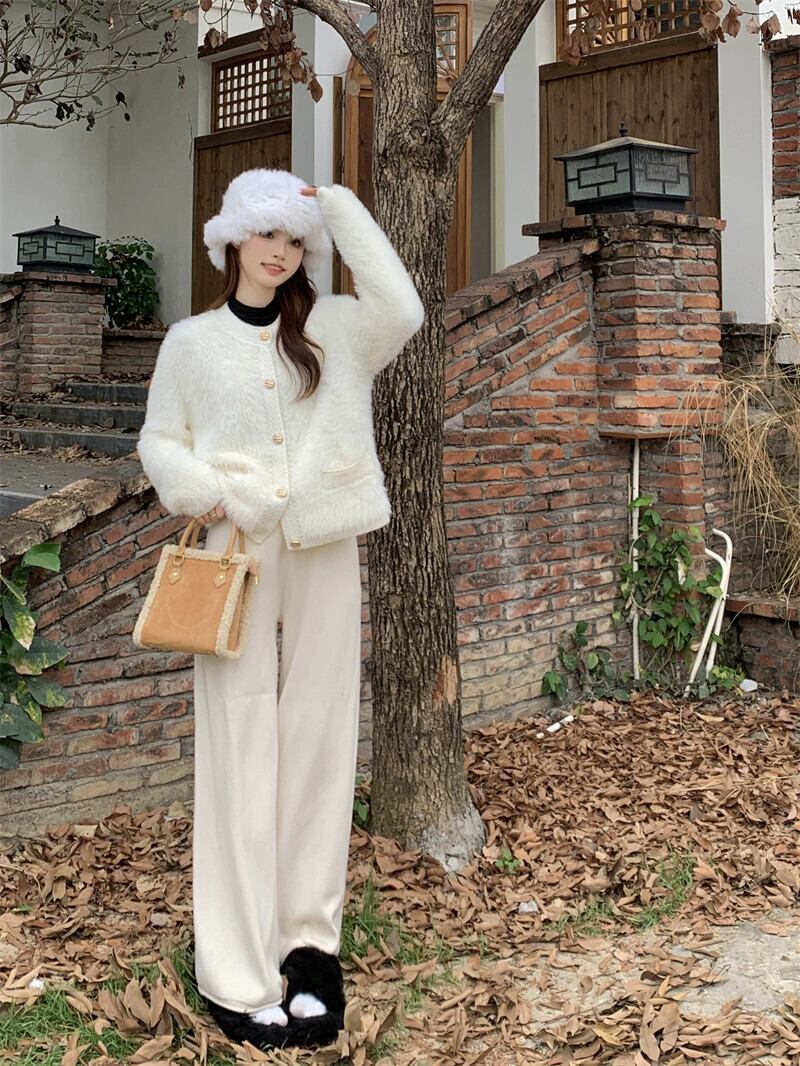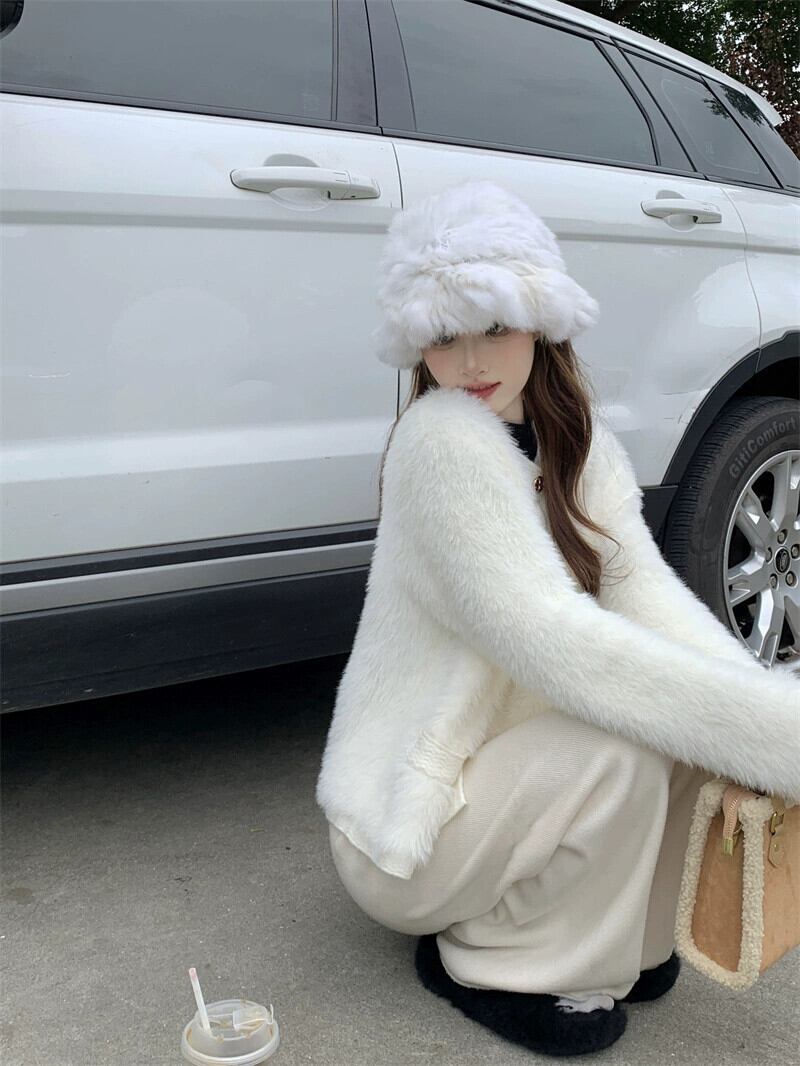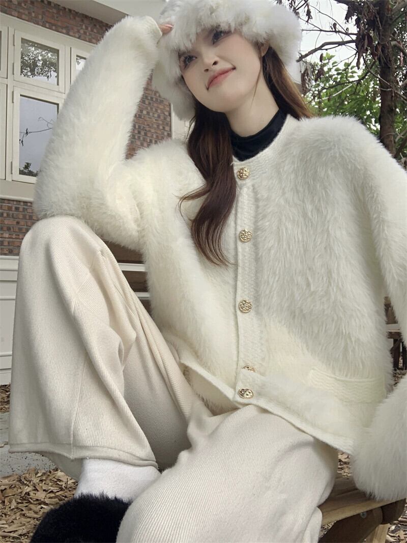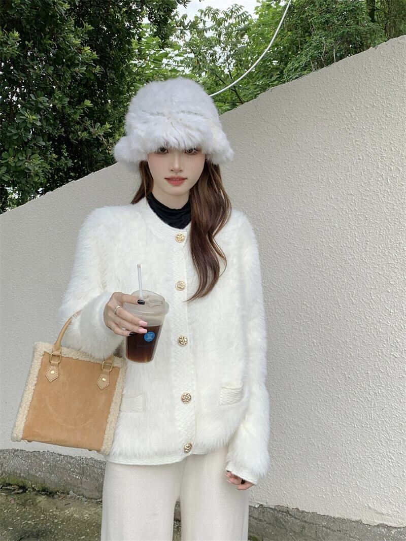 ホワイトスモールフレグランススタイルセータージャケットレディース秋冬フレンチスタイル優しくて高級なソフトワックスイミテーションミンクベルベットニットカーディガン オータム 秋物 ウィンター 冬物 8571691034444915