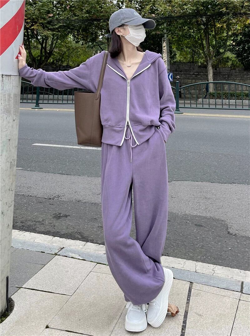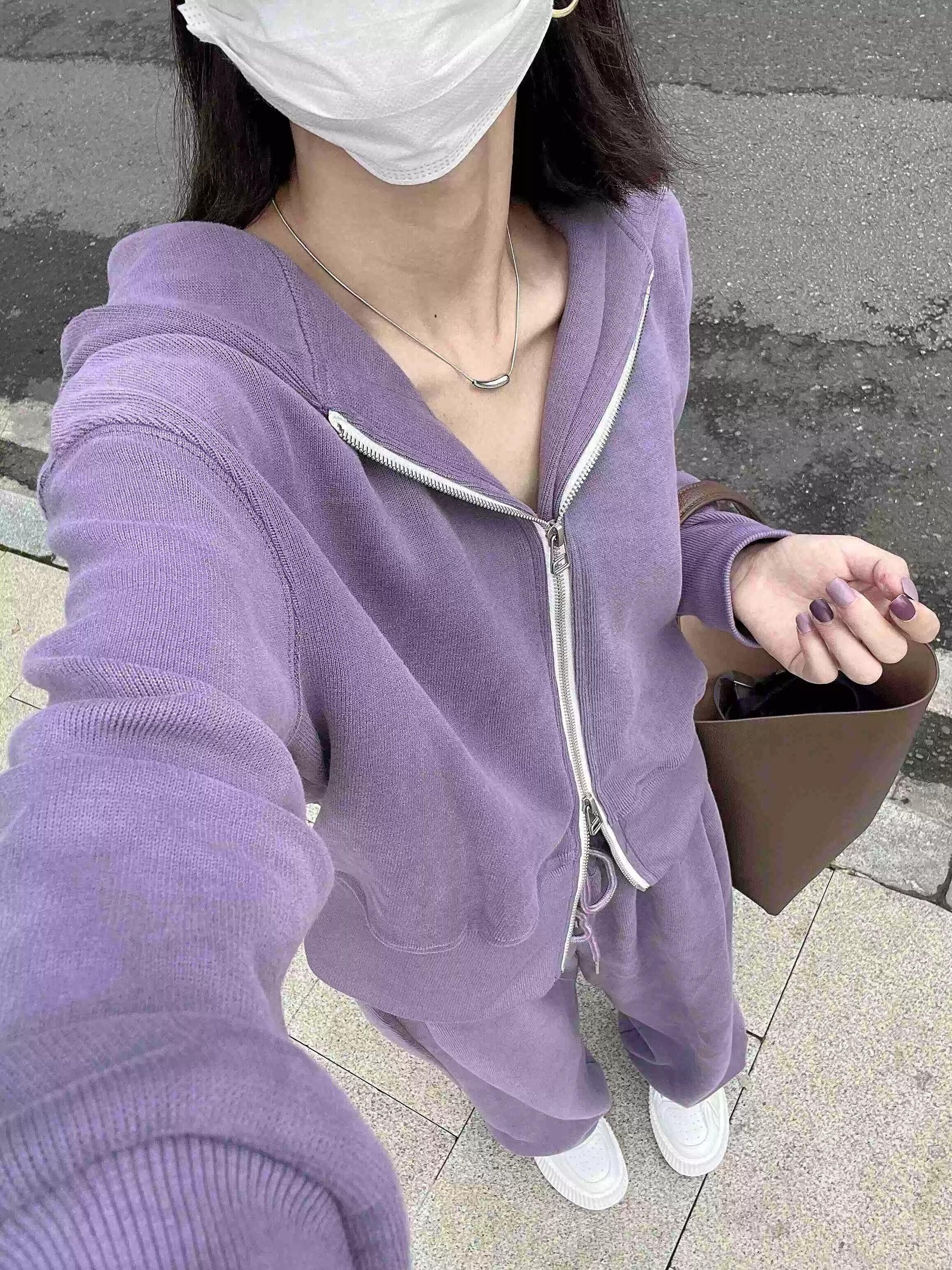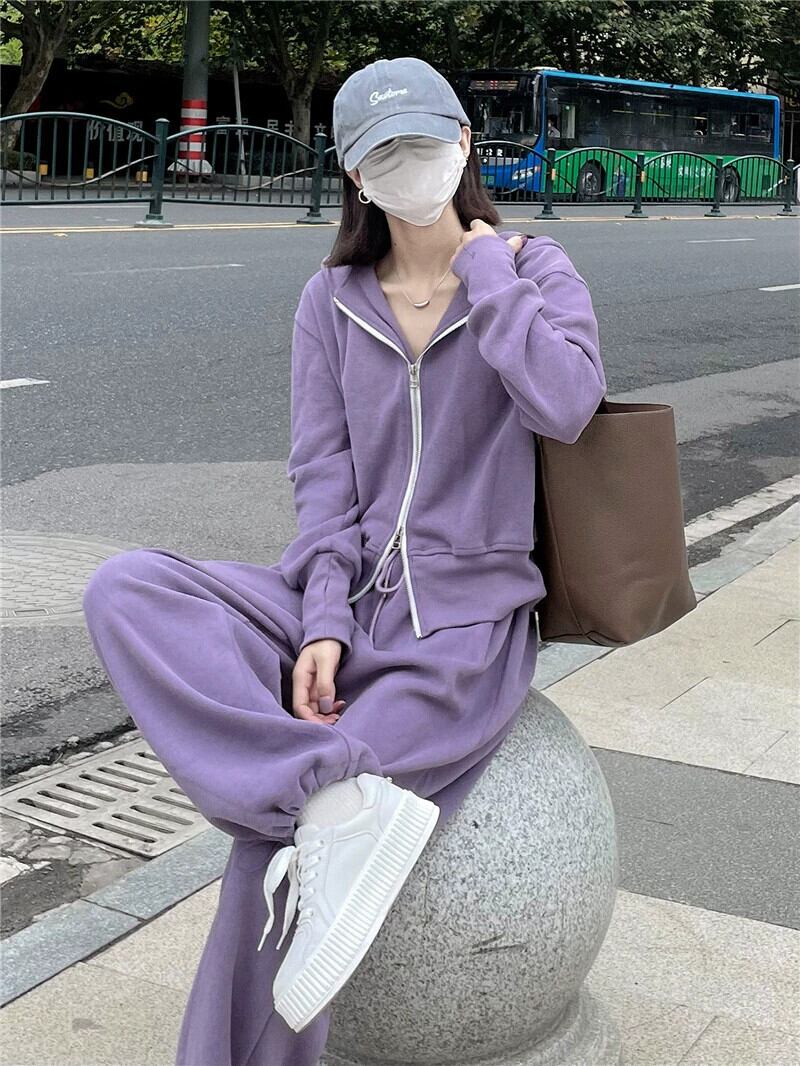 紫色のフード付きスウェットシャツジャケットの女性 2023 初秋の新カジュアルスポーツジッパーカーディガン小さな長袖トップ ロング オータム 秋物 パープル 8571694767699173