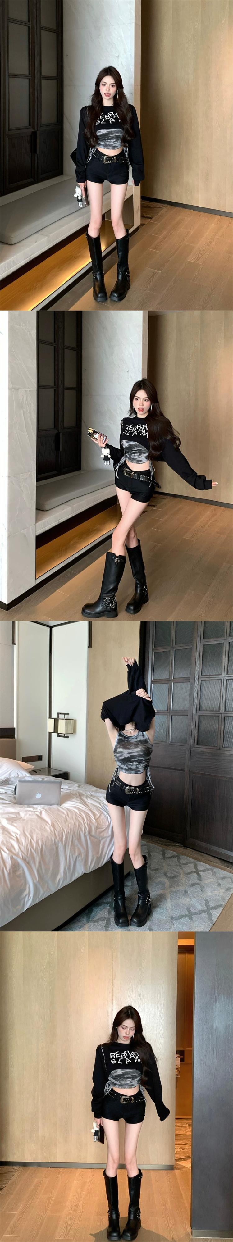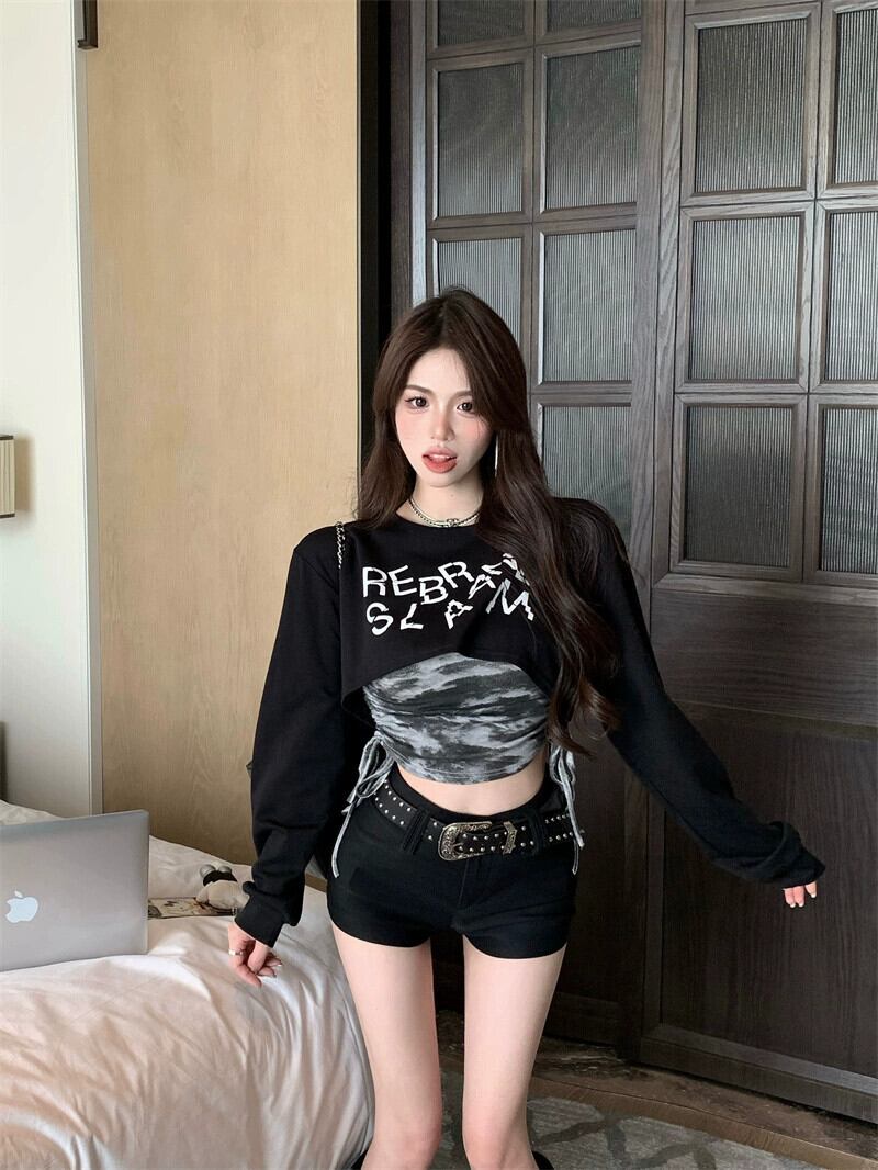 ブラウントレーナーブラウスツーピーススーツ女性 2023 初秋の新アメリカンレトロレイヤードショートトップ レッド オータム 秋物 8571676096269252