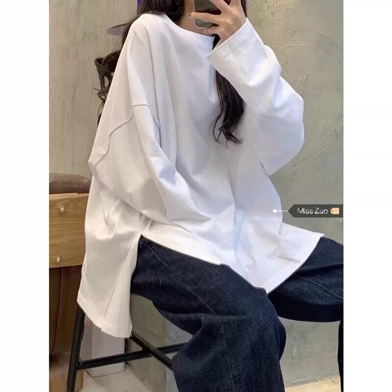 白長袖Tシャツレディース秋冬レイヤードインナーレイヤードシャツ2023新スタイルeignスタイルルーズスリットトップ ロング ホワイト レッド オータム 秋物 ウィンター 冬物 8571663690821914