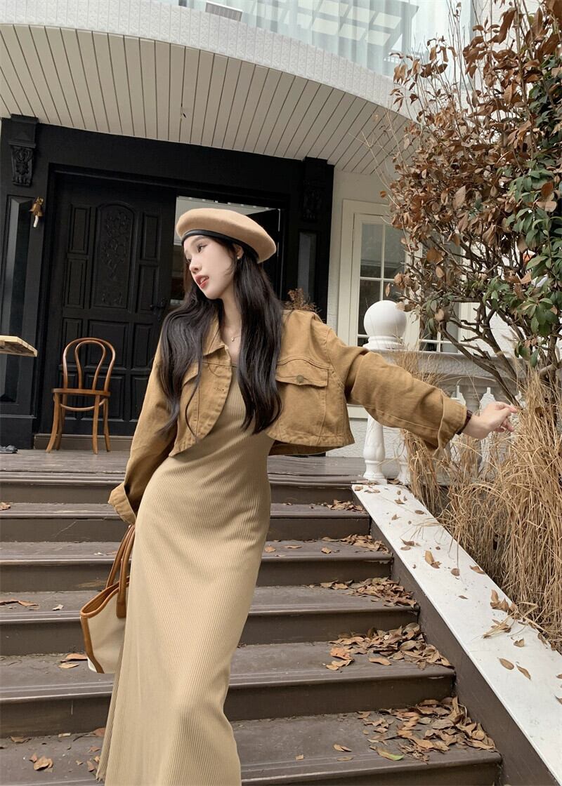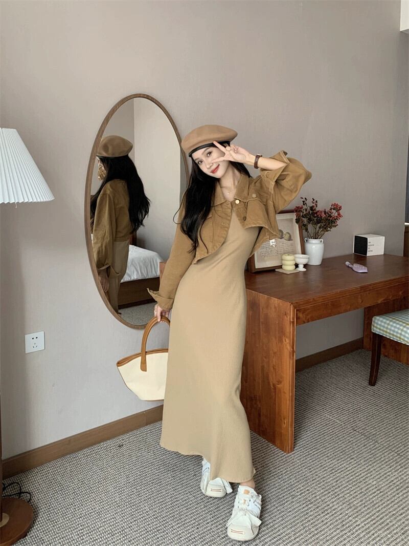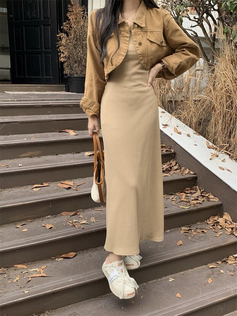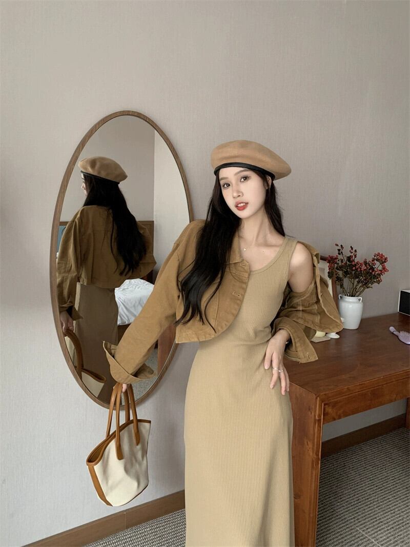 ニットベストドレス女性 2023 秋の新しいスリムフィットとドレープのインナーボトムノースリーブロングスカート オータム 秋物 8571611274032552