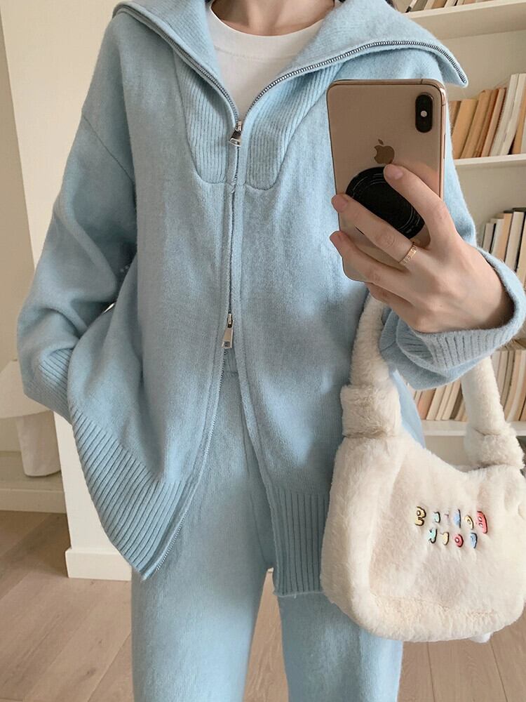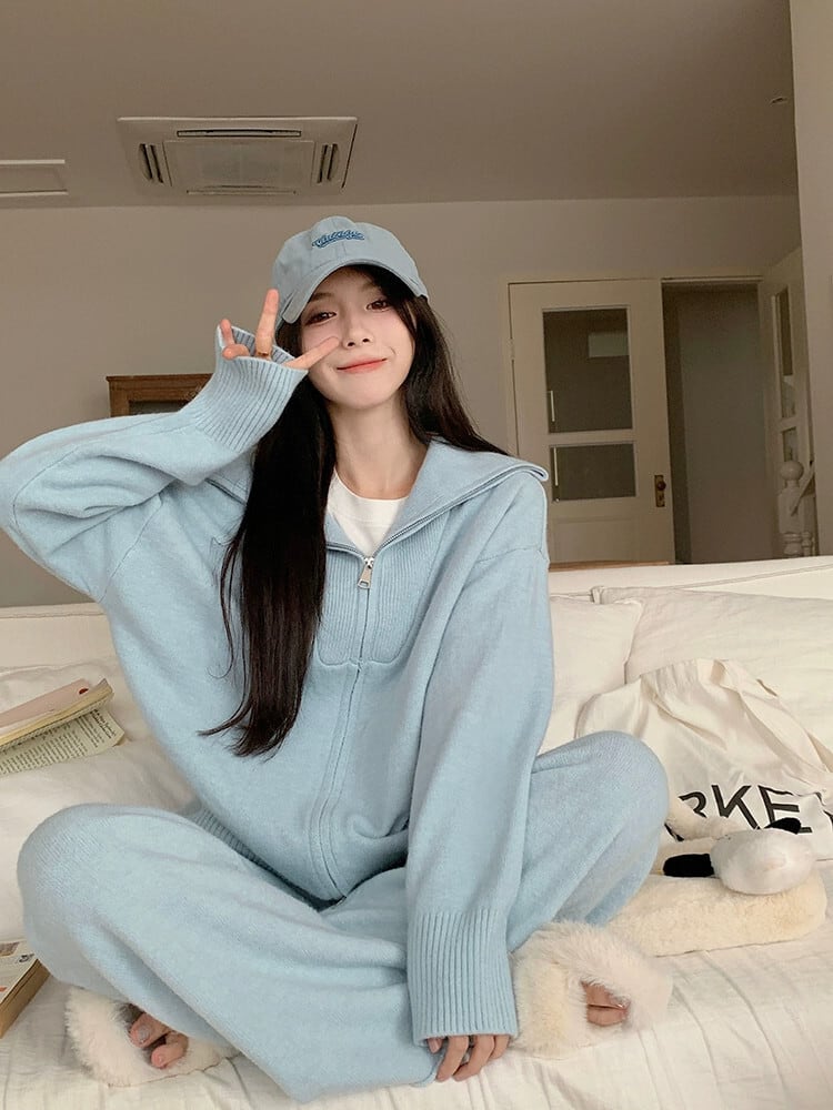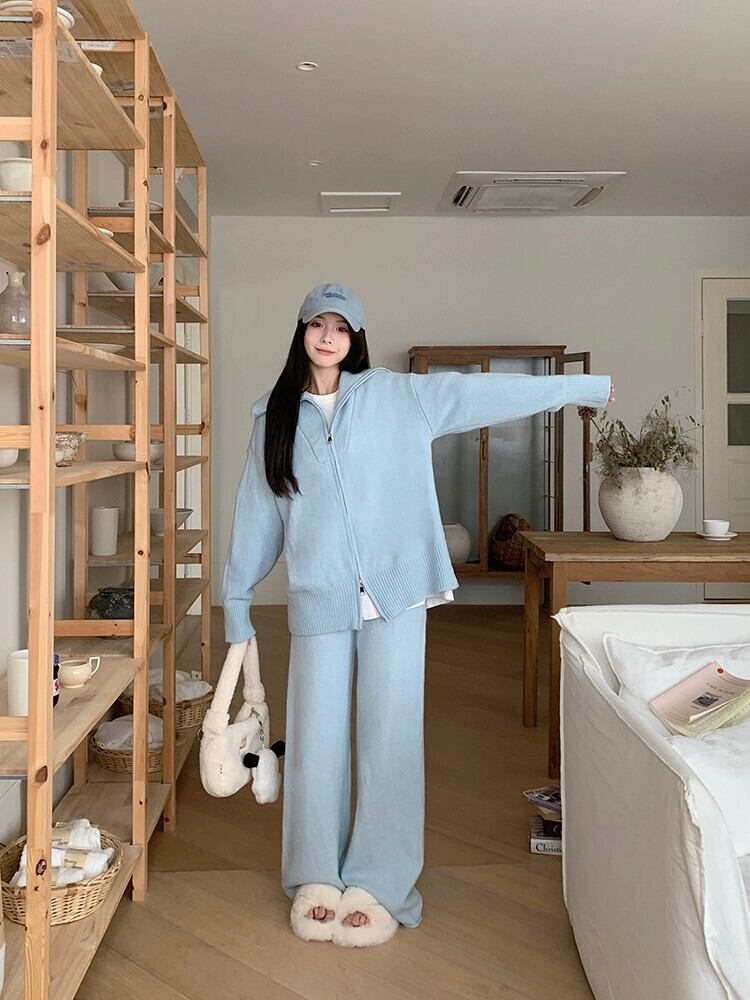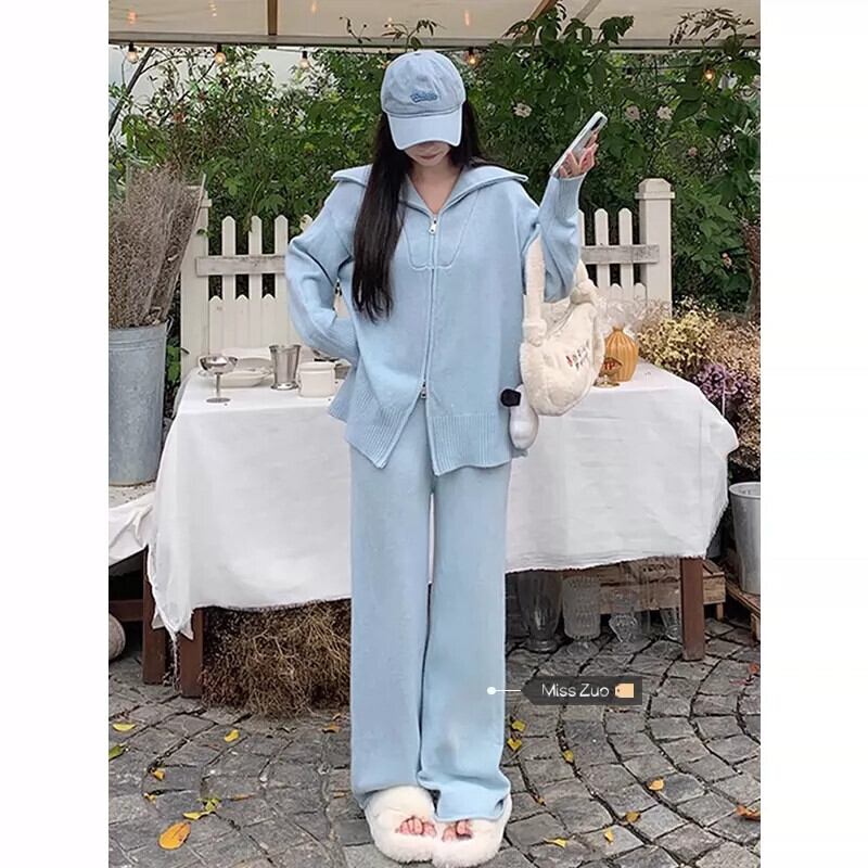 ブルージッパーセータージャケット女性秋 2023 新しいスタイル優しい怠惰なハイエンドニットカーディガンツーピーススーツ オータム 秋物 8571699440805174