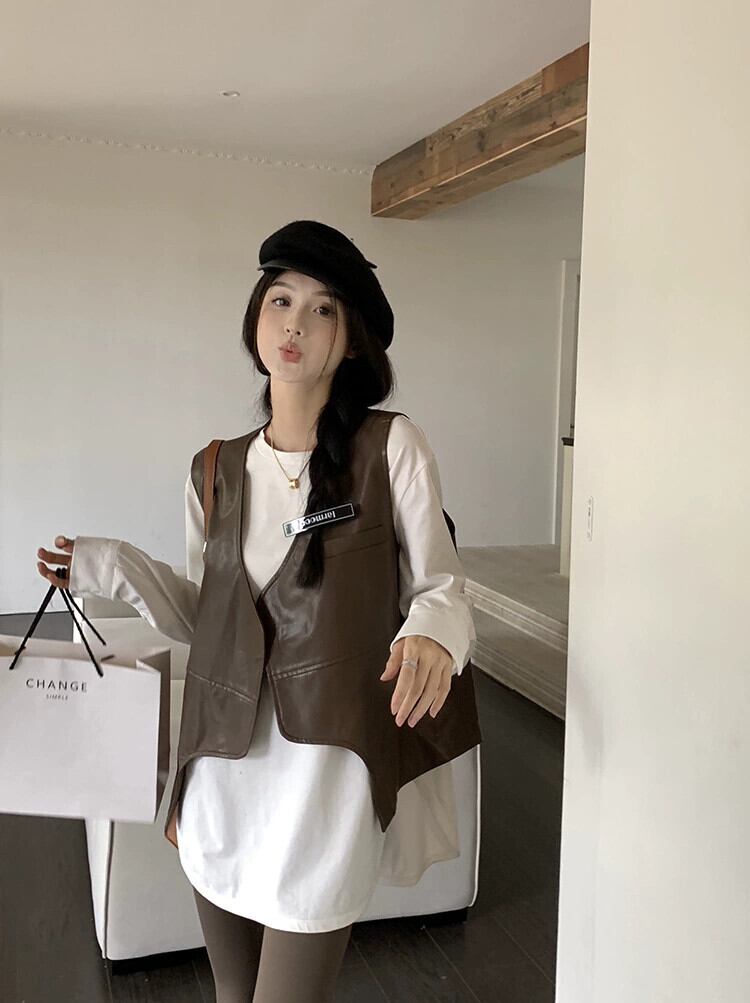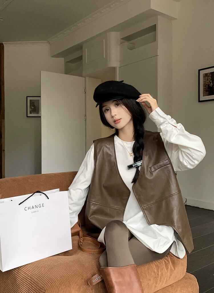 色:ブラウンPUレザーベスト,ホワイトベーストップ,ブロガー募集オーダー