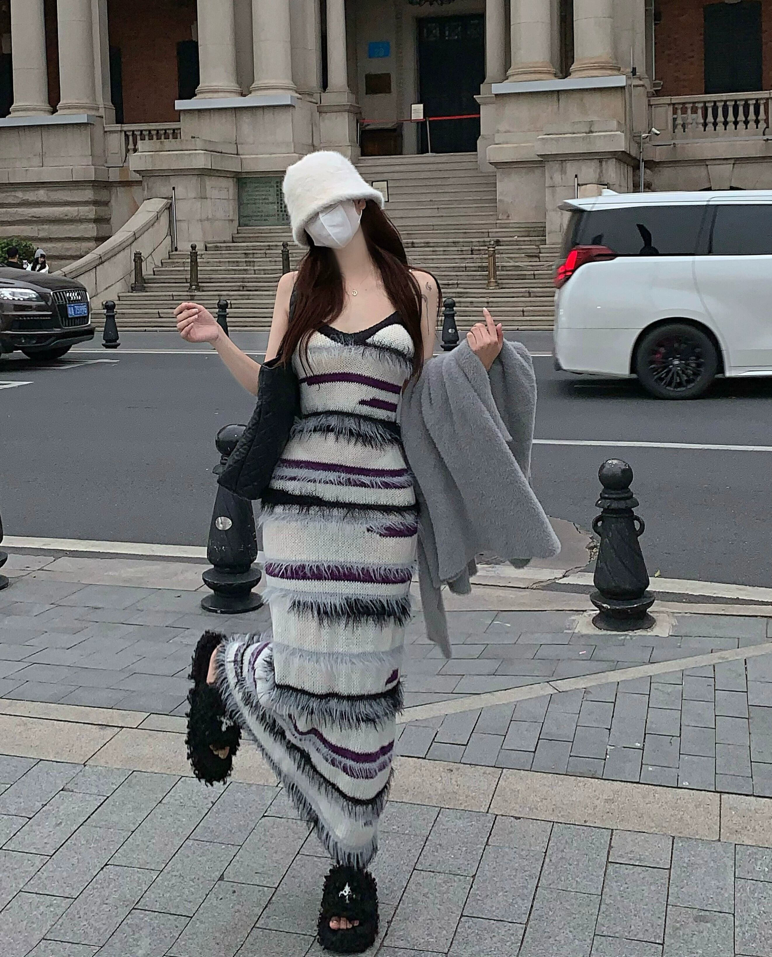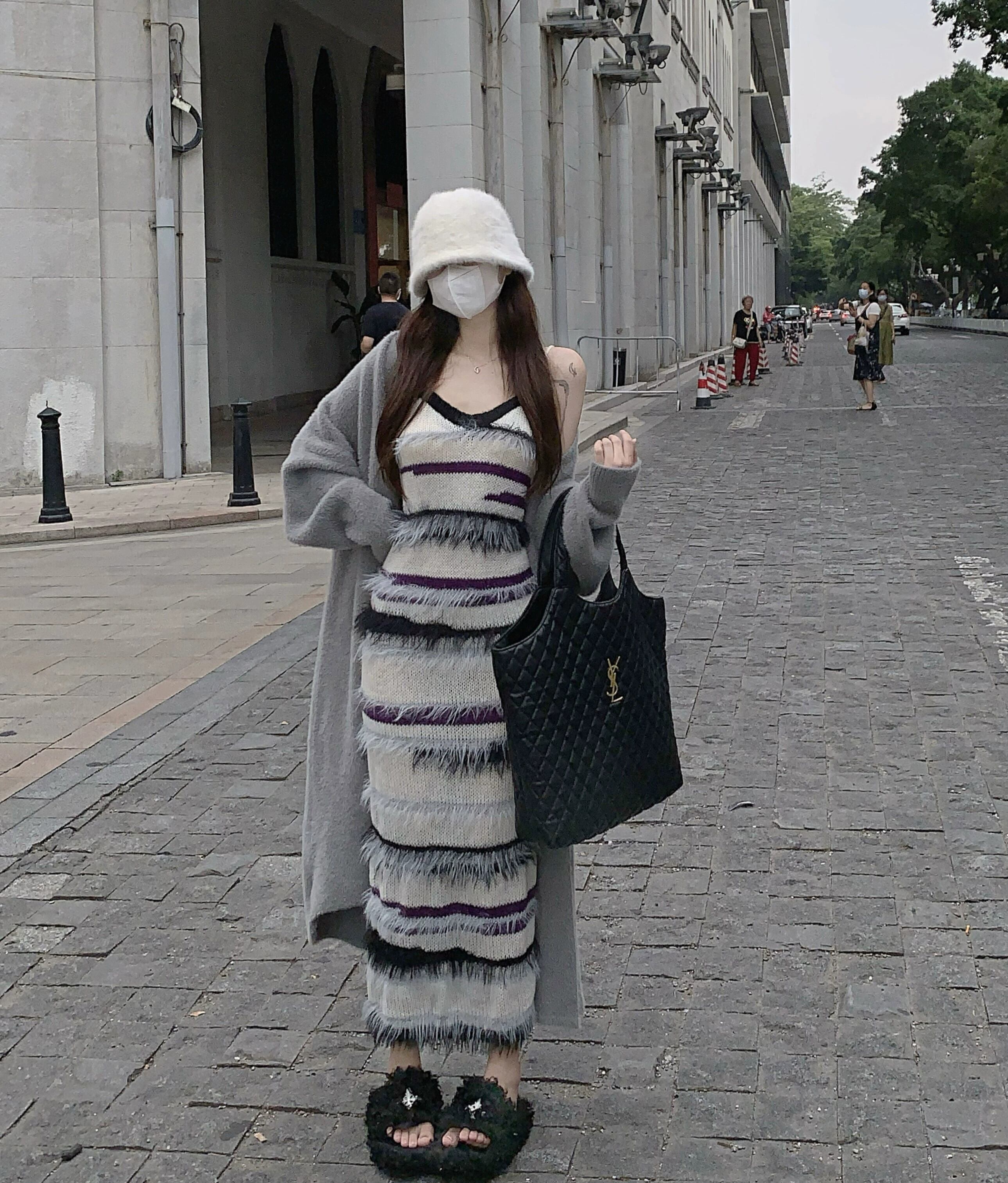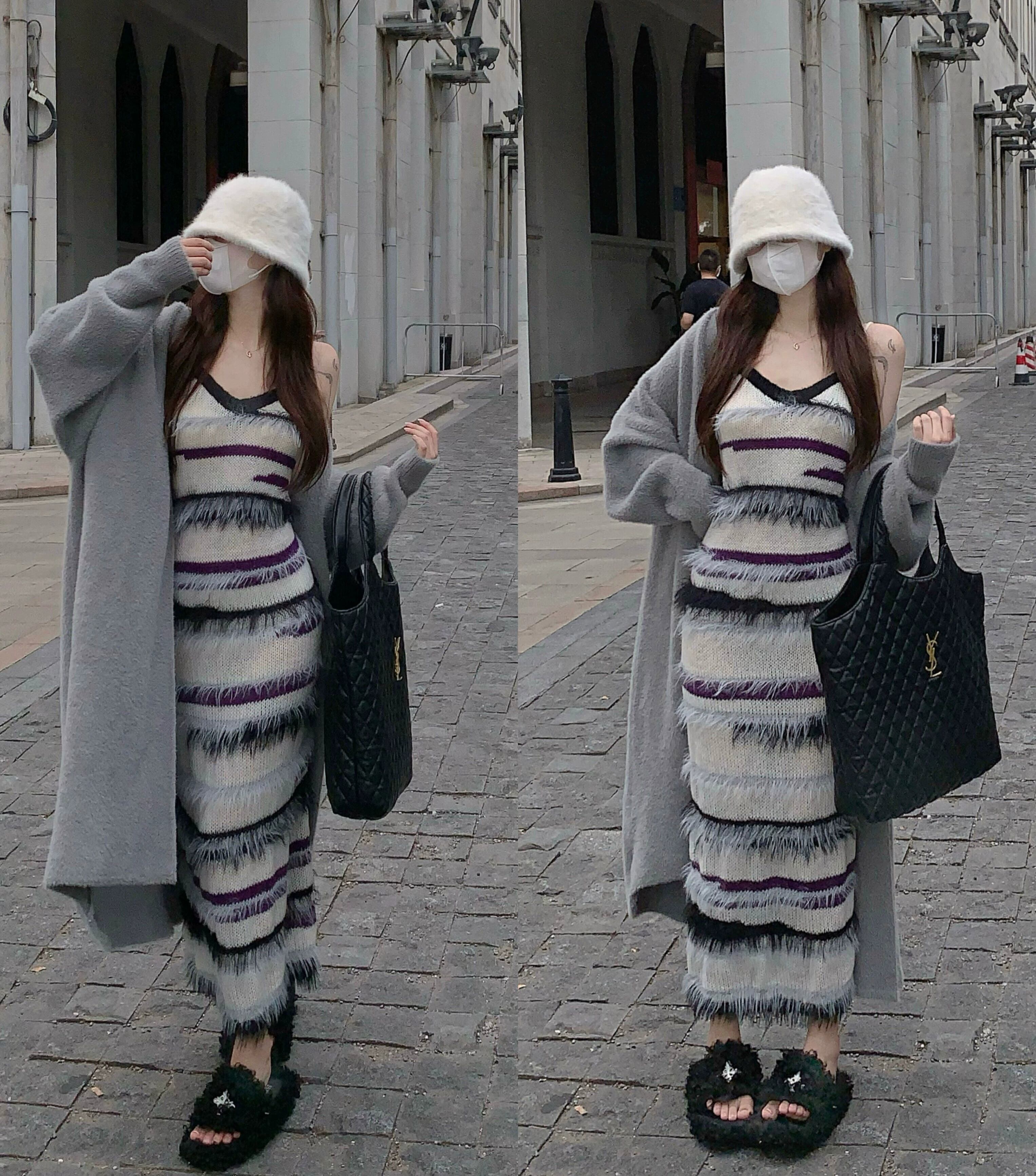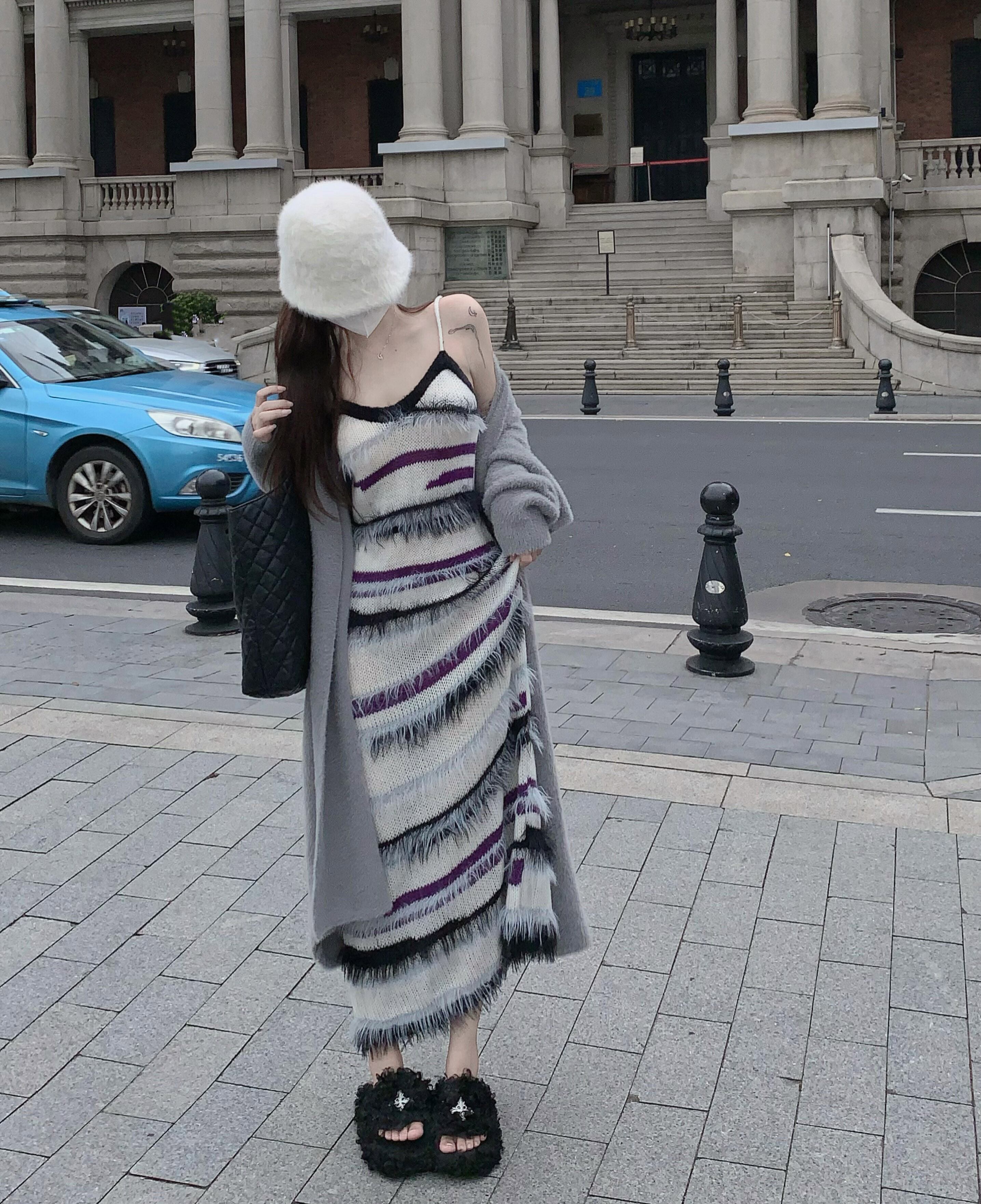 ニットサスペンダードレスレディース秋インナースカート2023新デザインニッチテルロングスカート オータム 秋物 8571651444084215