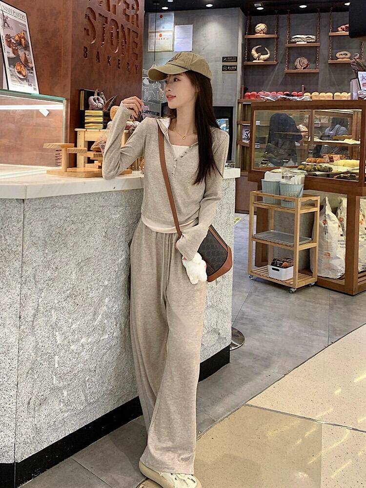 色:オートミールパンツ,カーボングレーパンツ,オートミールトップ(フェイク2個),カーボングレートップ(フェイク2枚),ブロガー募集オーダー