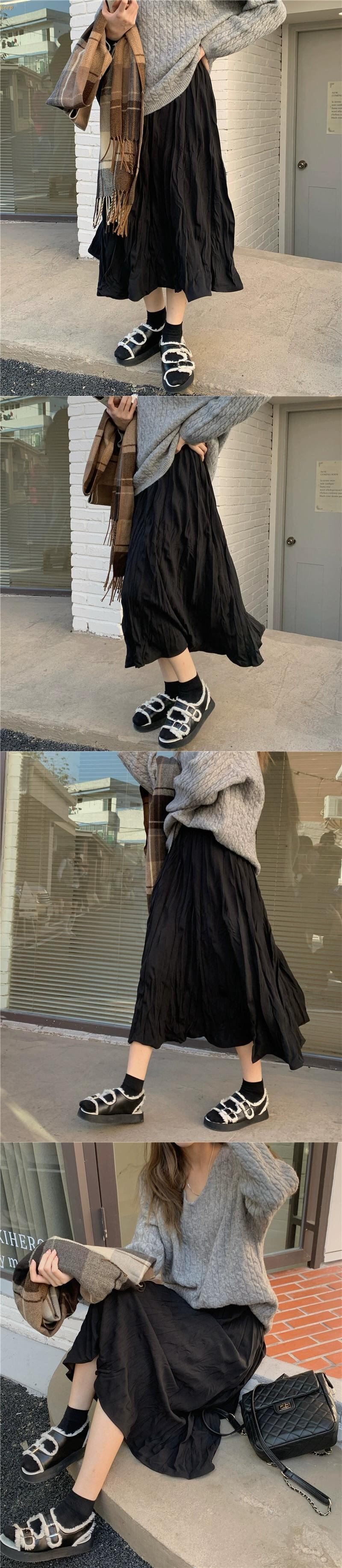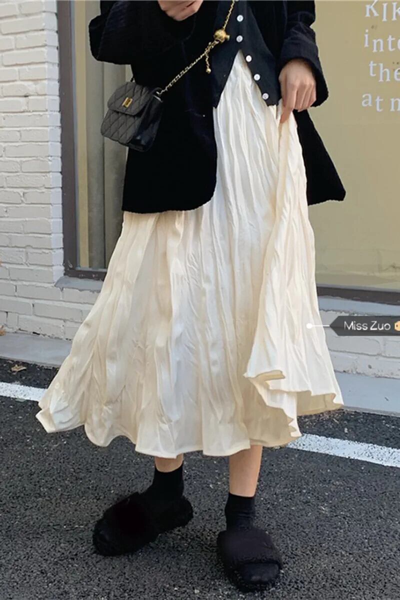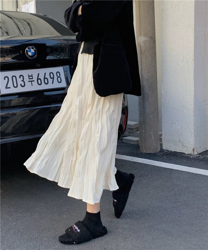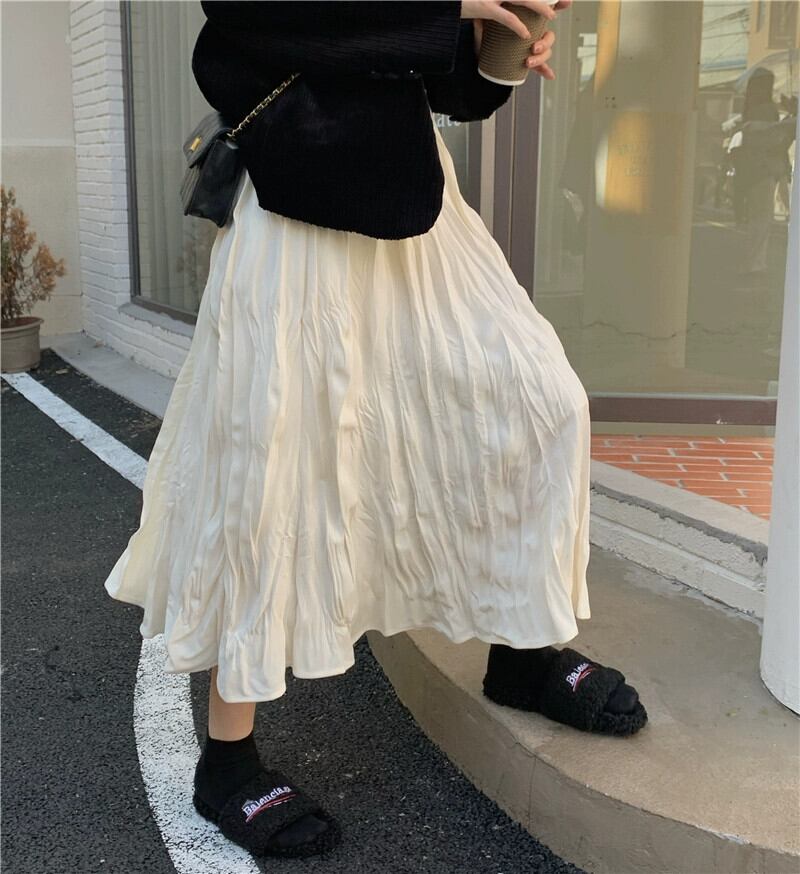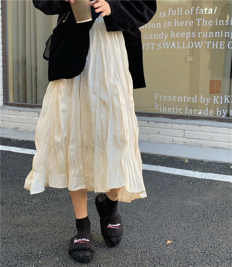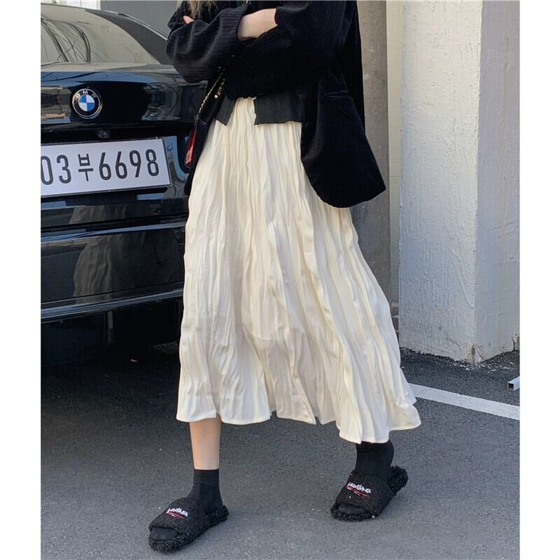 プリーツスカートレディース秋ハイウエストスリムAラインスカート2023新デザインミドル丈スカート小人 オータム 秋物 8571613300664460