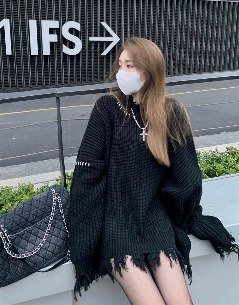 黒の厚いセーター女性の緩い、怠惰でハイエンドの 2023 年秋の新しいレトロなセータートップ ブラック オータム 秋物 8571654391127616