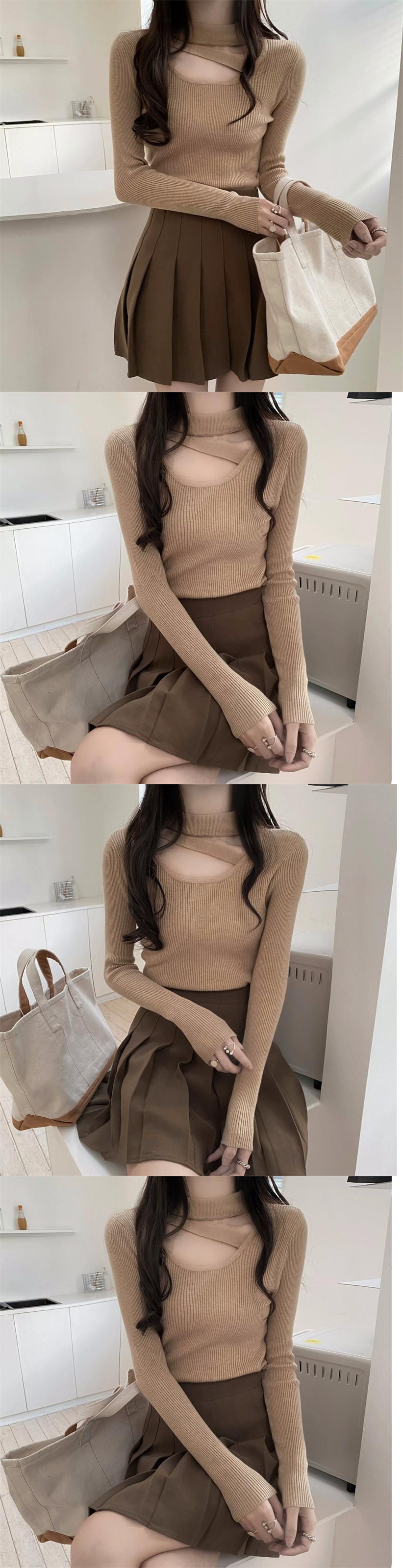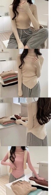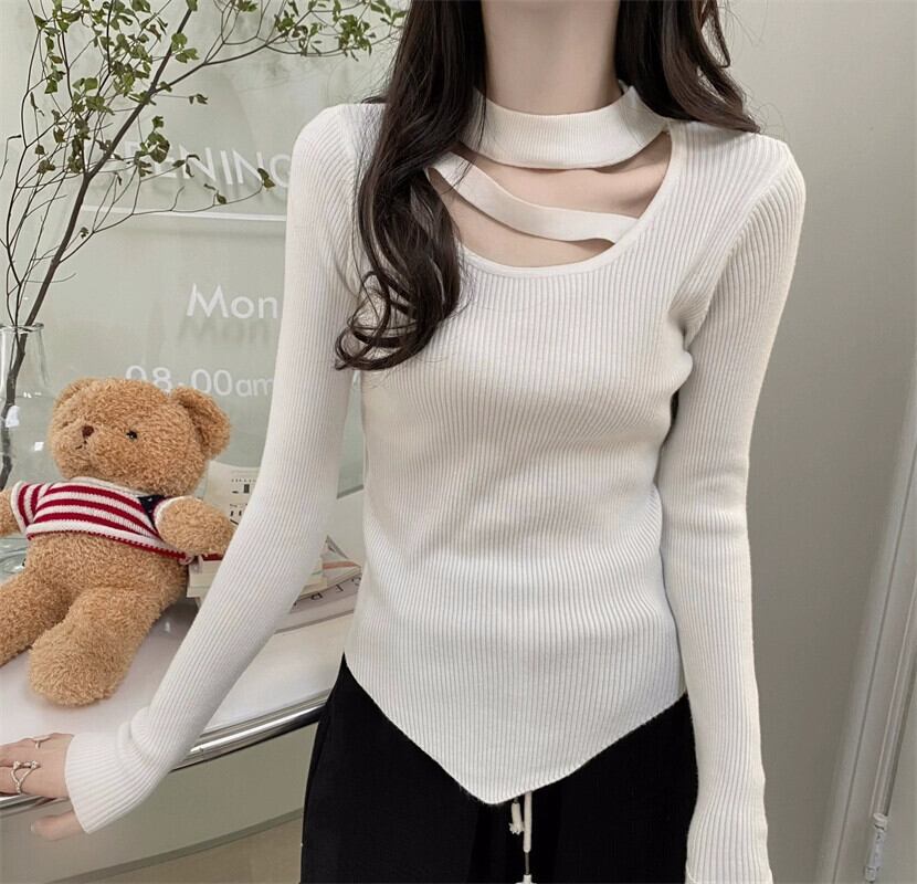 秋のデザインのボトムシャツレディース、ニッチ、ユニークでシック、スリム、長袖、ショートニットセータートップ ロング オータム 秋物 8571690755255842