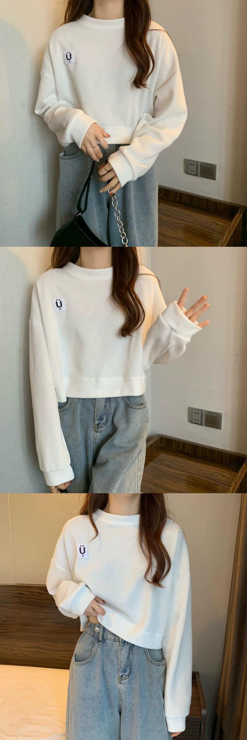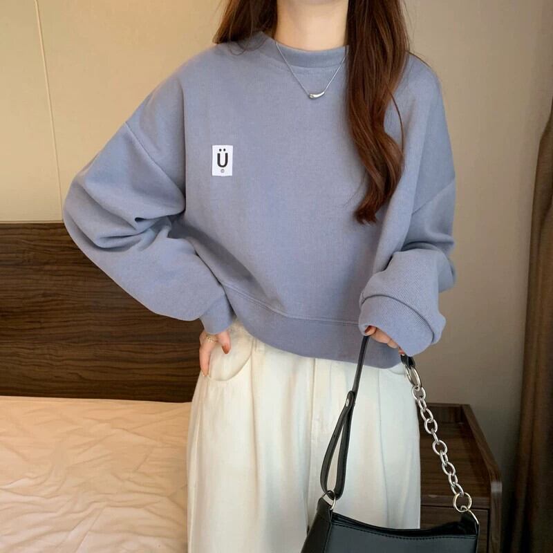 ラウンドネックショートスウェットシャツ女性の2023秋の新しいスタイルのゆったりとした小さいファッショナブルな長袖トップス ロング オータム 秋物 Oネック 857165379184886