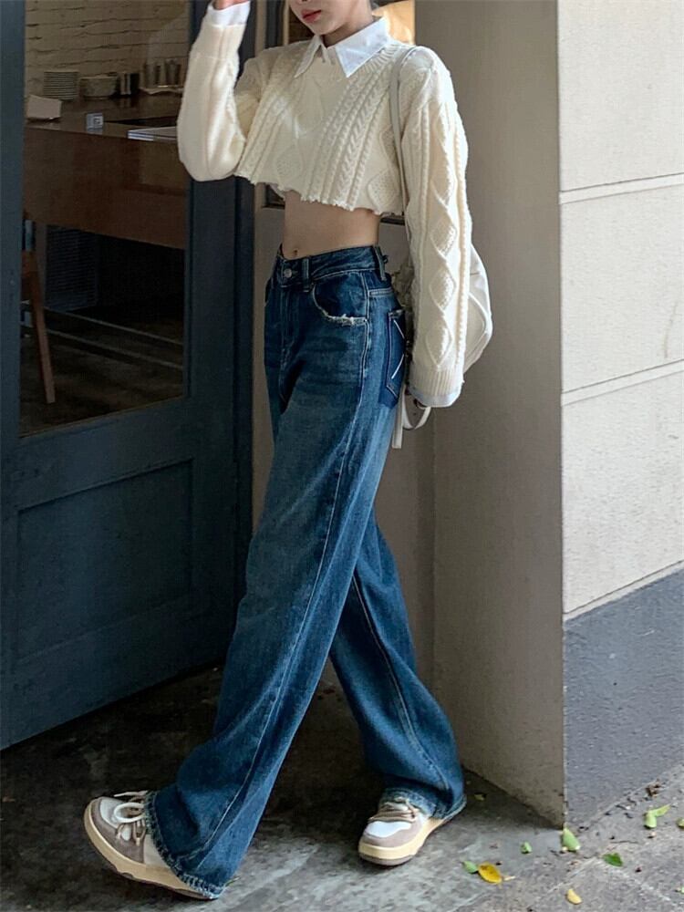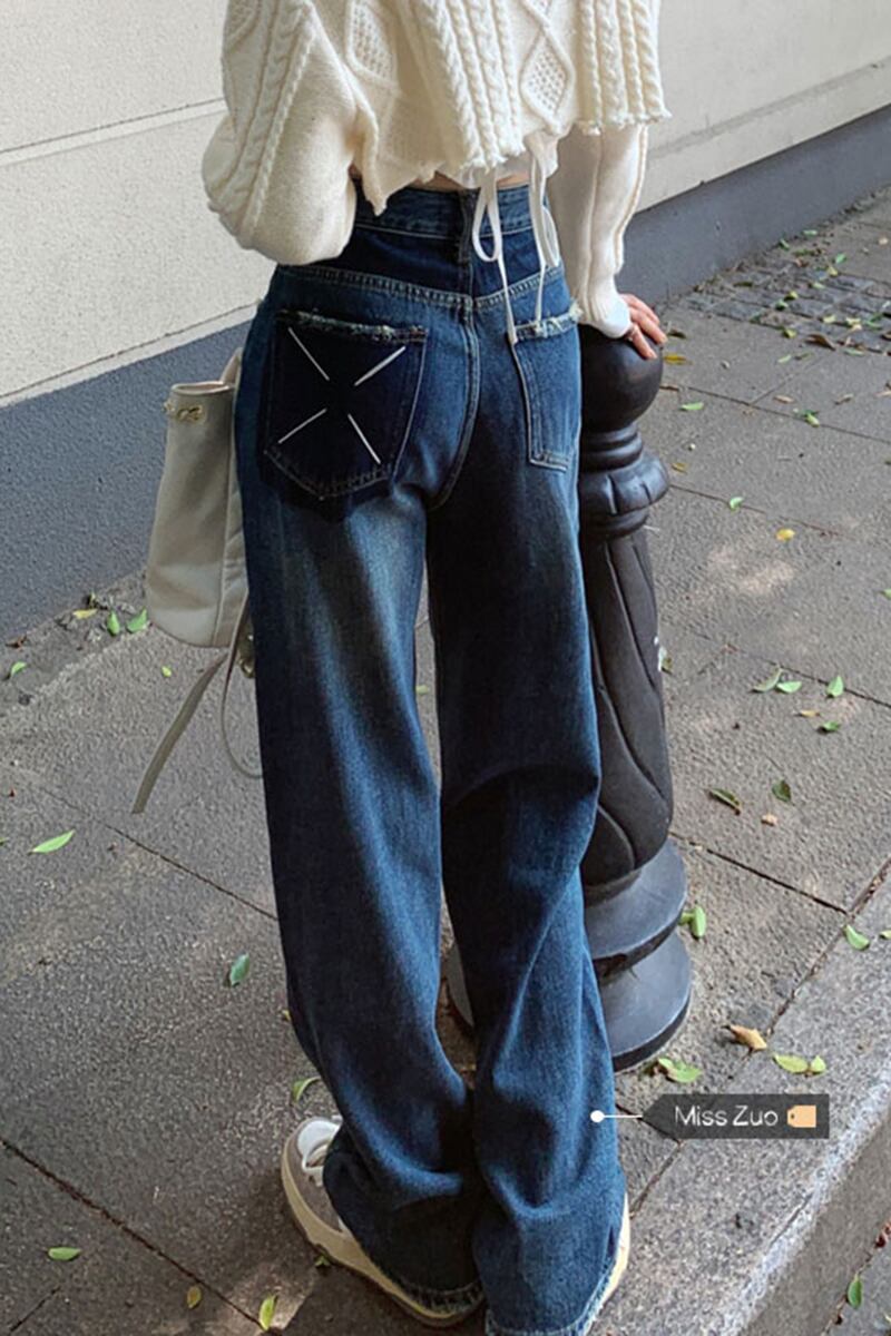 ハイウエストでスリムなワイドレッグジーンズの女性 2023 春と秋の新しいスタイルの香港スタイルのレトロなルーズストレートストレートフロアレングスパンツ ハイウェスト スプリング 春物 オータム 秋物 8571634562380647