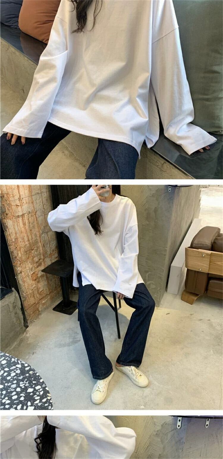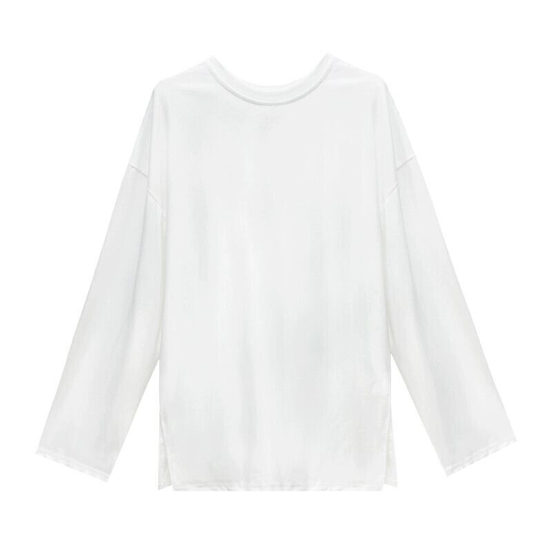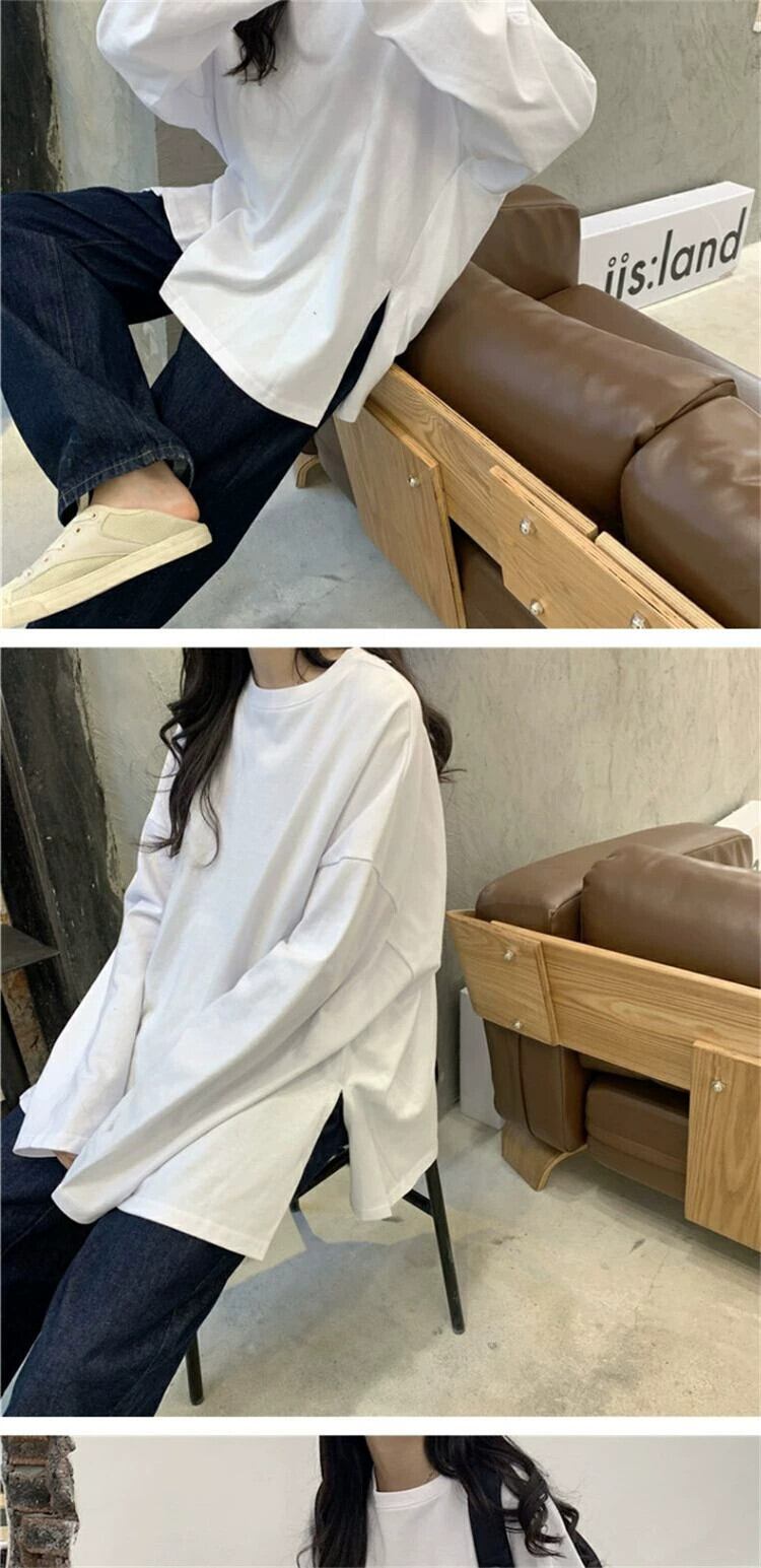 ルーズ T シャツ レディース デザイン ニッチ 2023 秋の新しいスタイルのユニークで甘いスリット長袖トップ ロング 大人ガーリー スウィート キュート カジュアル オータム 秋物 Tシャツ 8571626982607644
