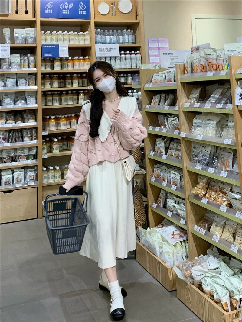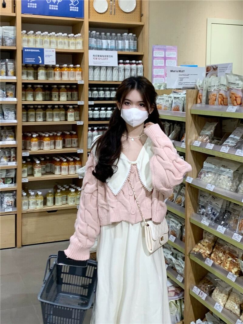 ピンクツイストセータージャケット女性の秋冬2023アート生乳甘い優しいスタイルショートニットカーディガン 大人ガーリー スウィート キュート カジュアル オータム 秋物 ウィンター 冬物 8571623995119662