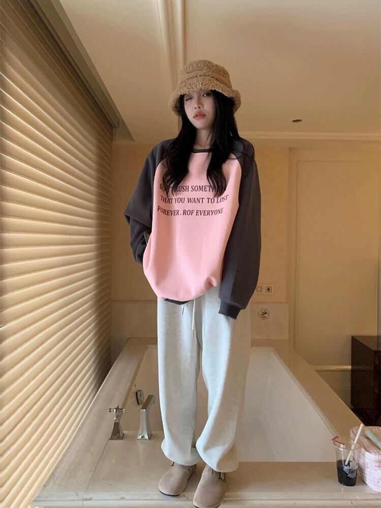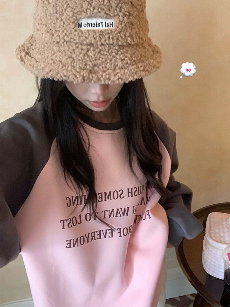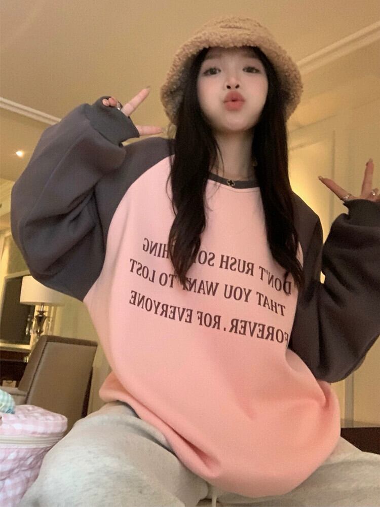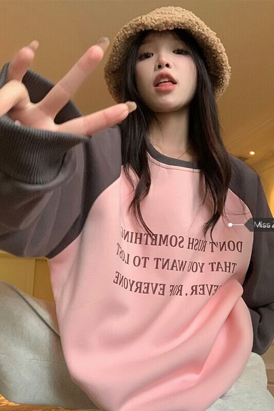 秋冬のアメリカンレトロスウェットシャツレディース、プラスベルベットと厚み、2023新しいスタイル、ファッショナブルでルーズで怠惰なスタイルのトップ オータム 秋物 ウィンター 冬物 8571697529948868