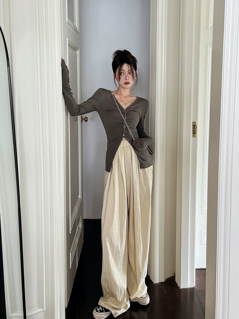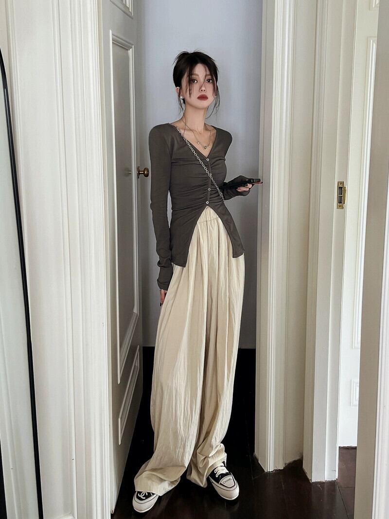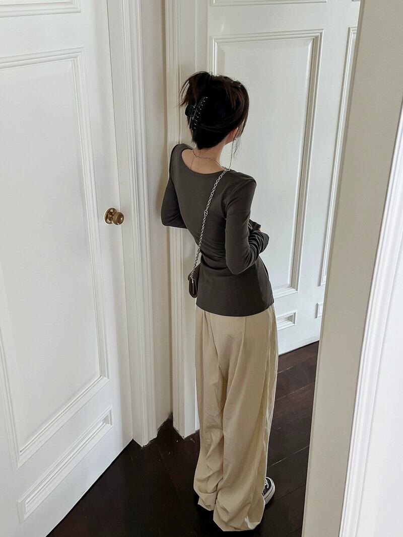 秋のVネックトップス女性、純粋な欲望、甘い、スリム、ユニークでユニークなデザイン、ニッチなインナーウェア、長袖Tシャツ ロング 大人ガーリー スウィート キュート カジュアル オータム 秋物 ピュア 8571674102493458