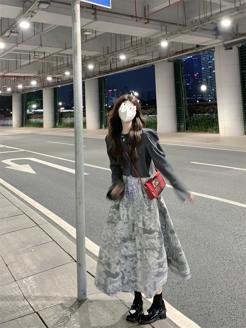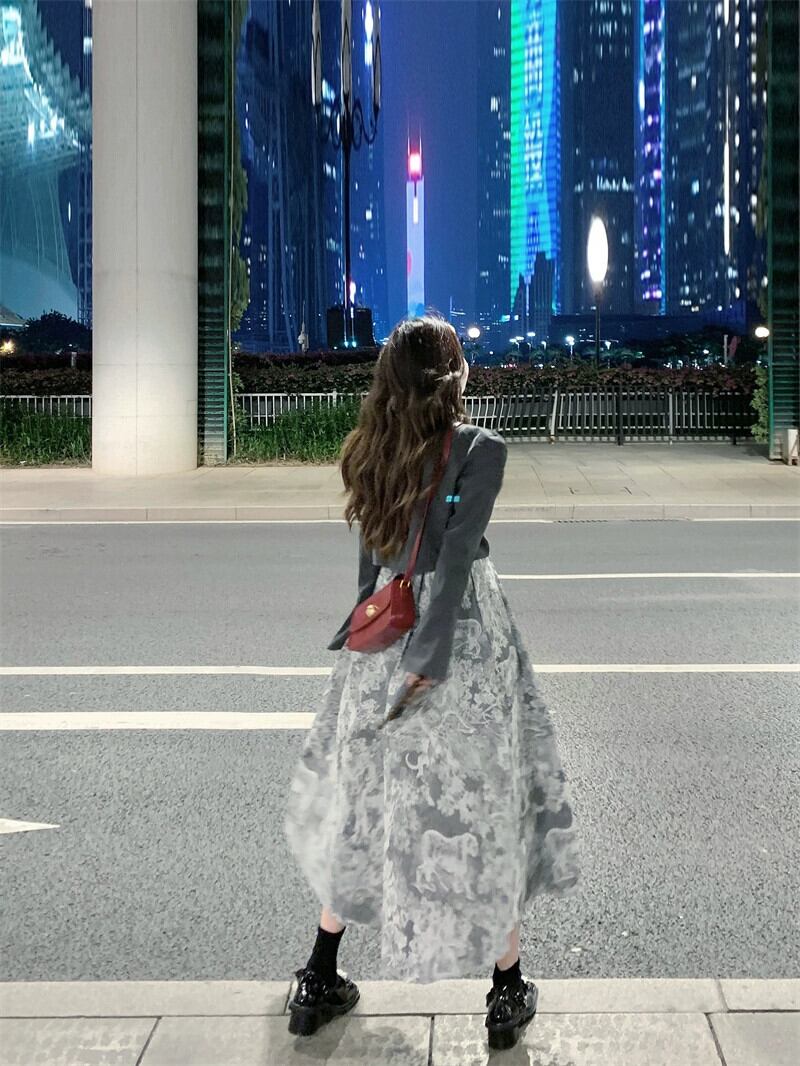 花柄スカート女性の春と秋のハイウエスト A ラインスカート 2023 新しいハイエンドデザインニッチミドルスカート スプリング 春物 オータム 秋物 Aライン 8571616216932865