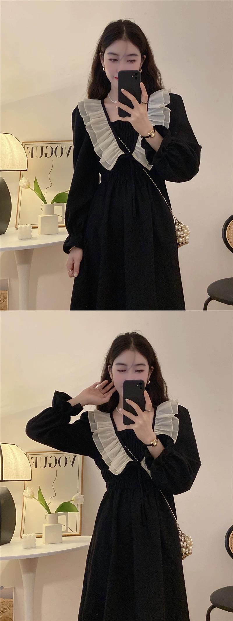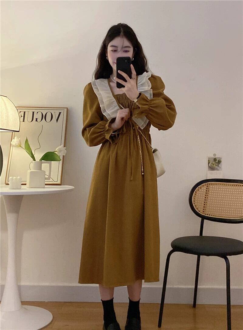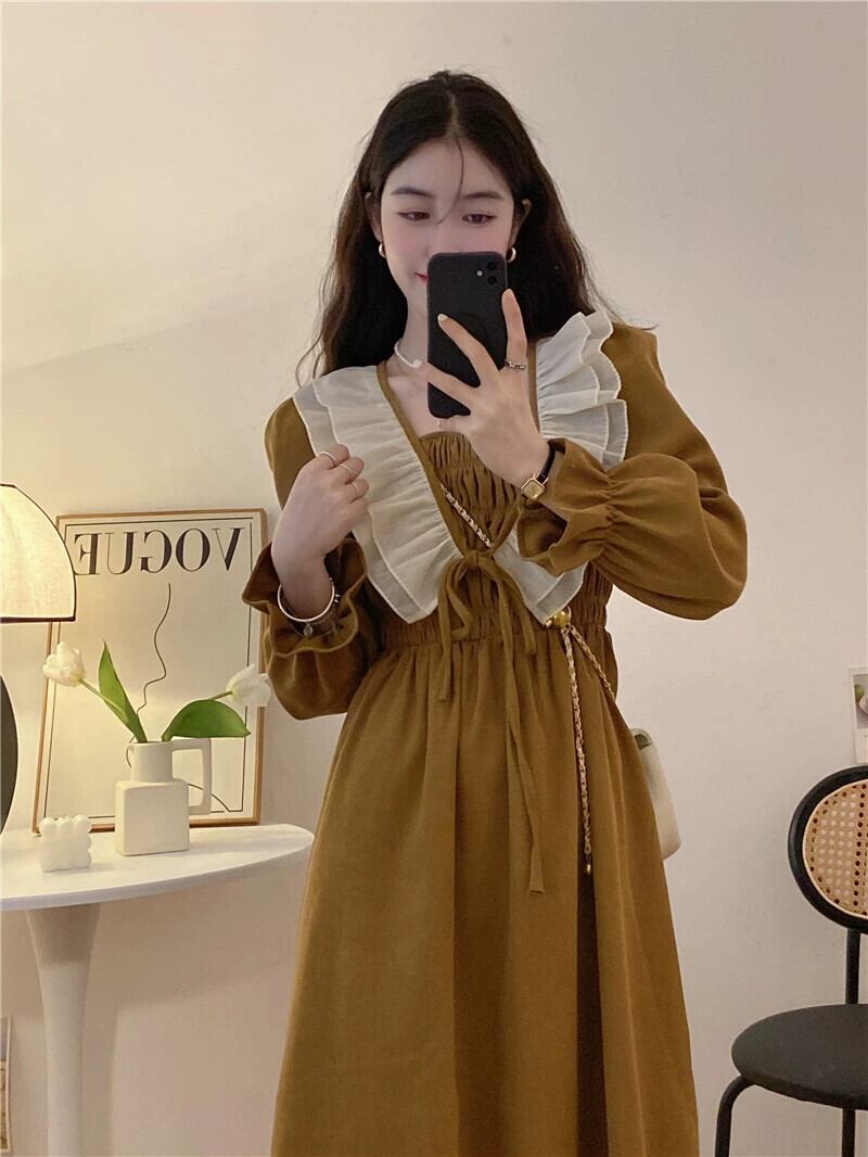 長袖ドレスの女性の 2023 秋の新しいスタイルのフランスの優しい気質のハイエンドのウエストを締めるフリルロングスカート オータム 秋物 8571680380613380