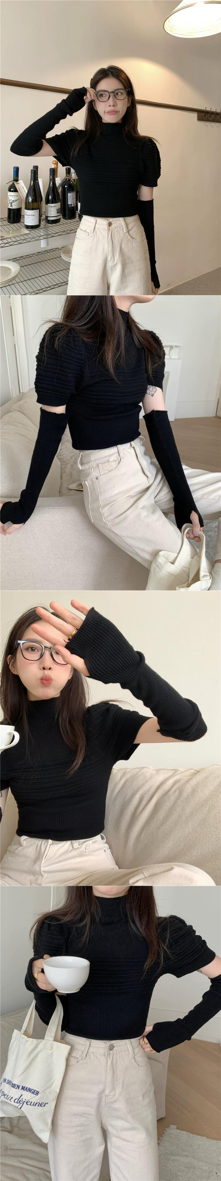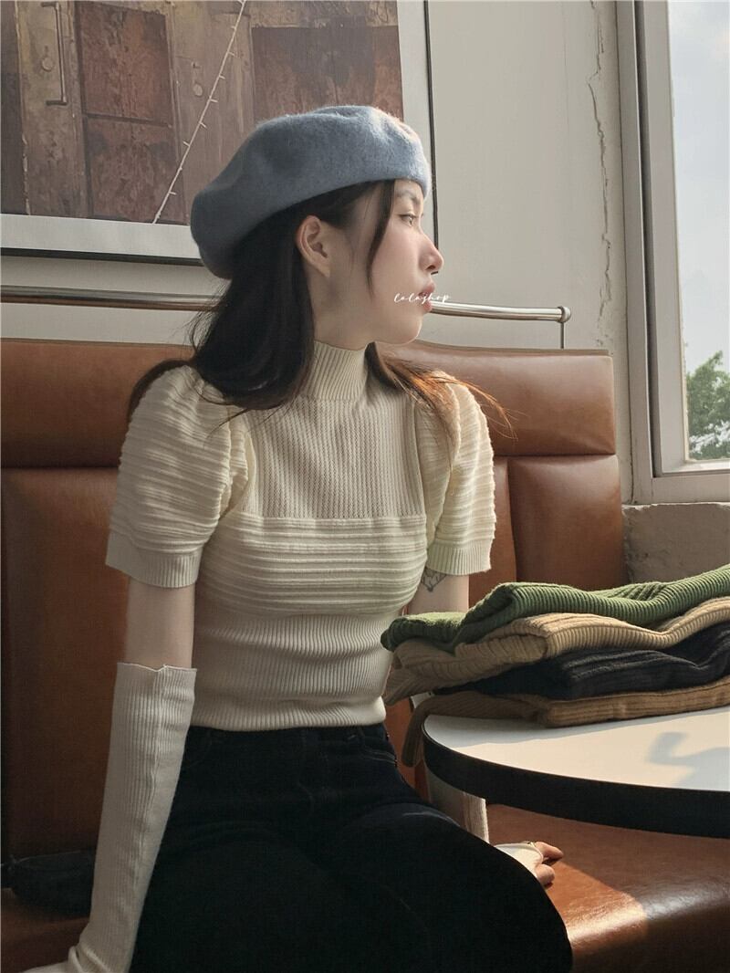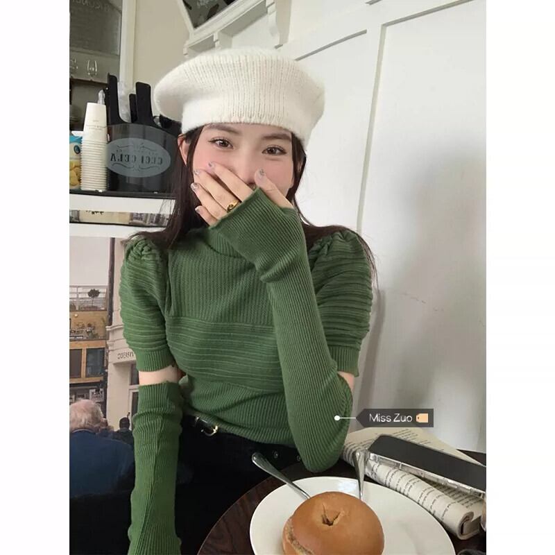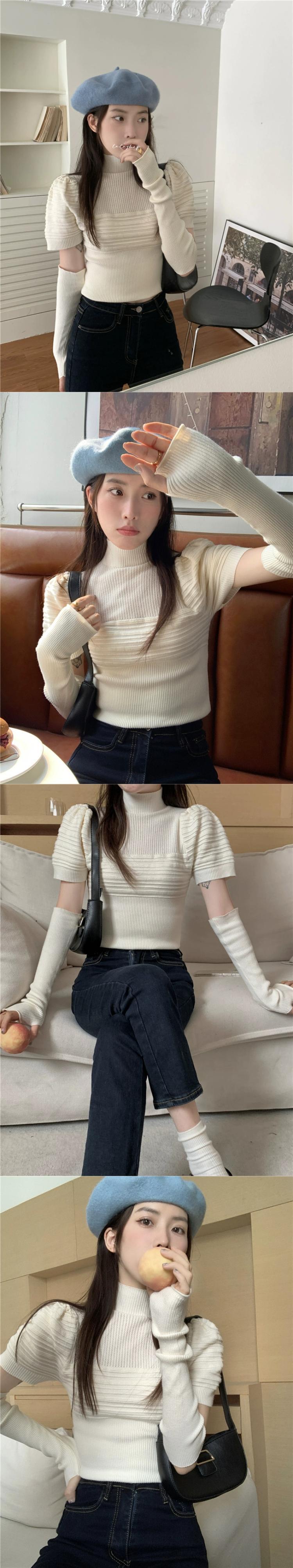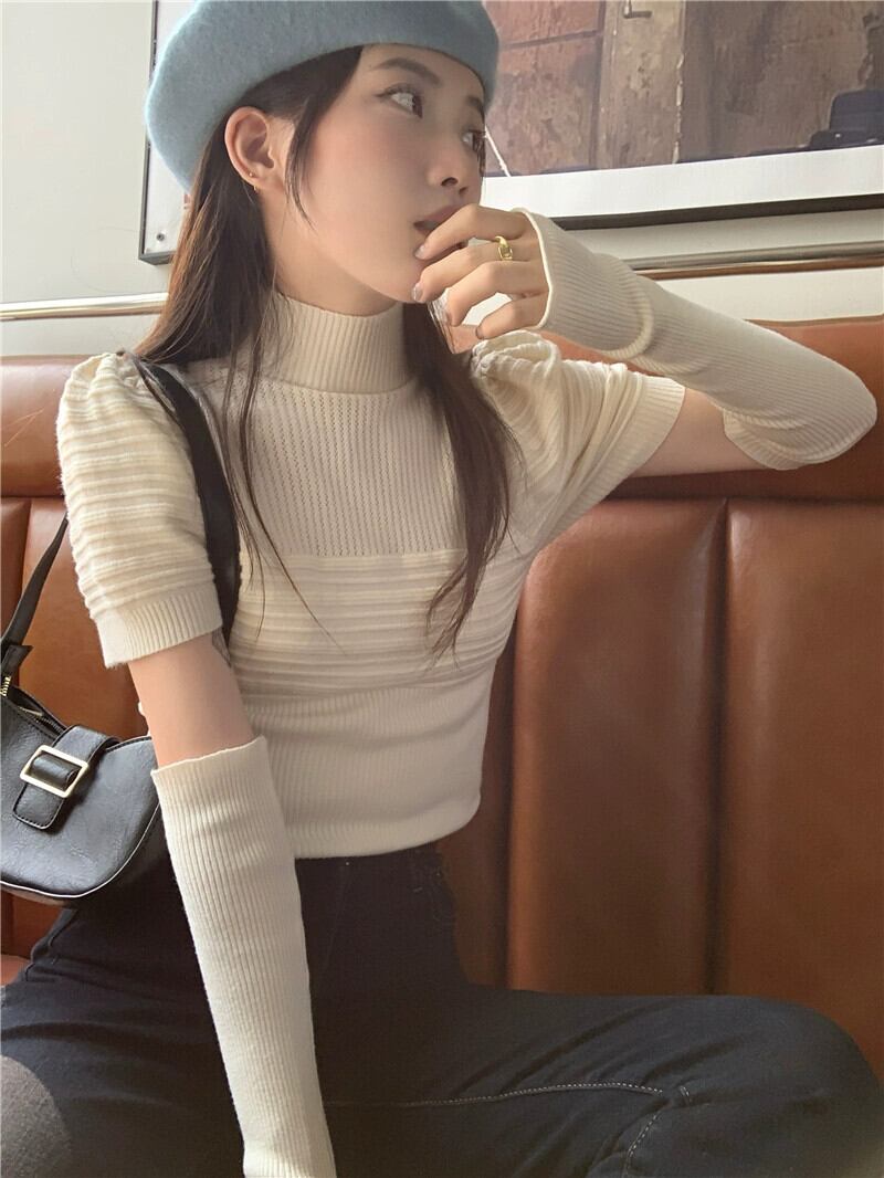 秋の分割袖セーター女性ベースレイヤーセーター 2023 新デザインハイネックスリムフィットトップ オータム 秋物 8571693088727839