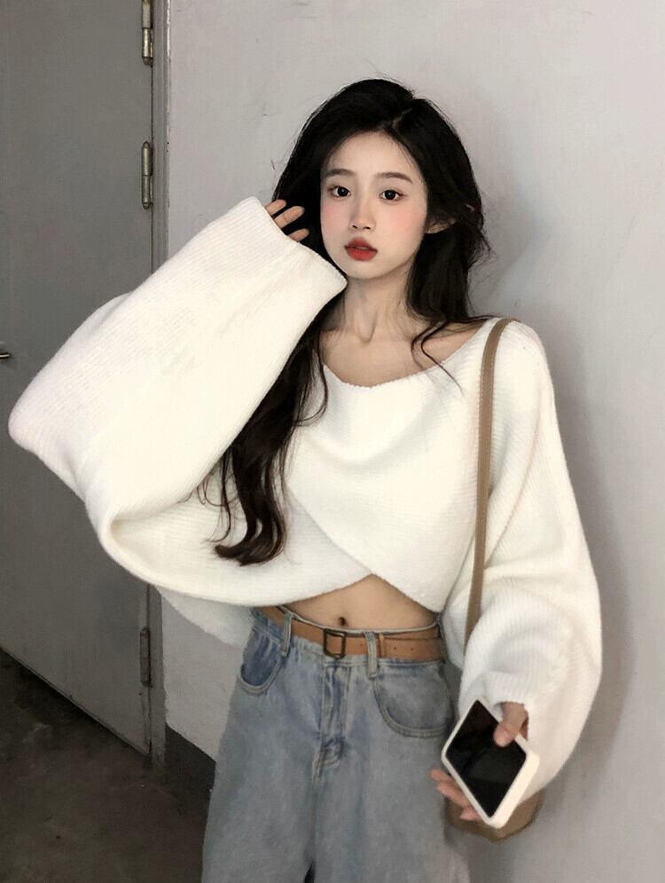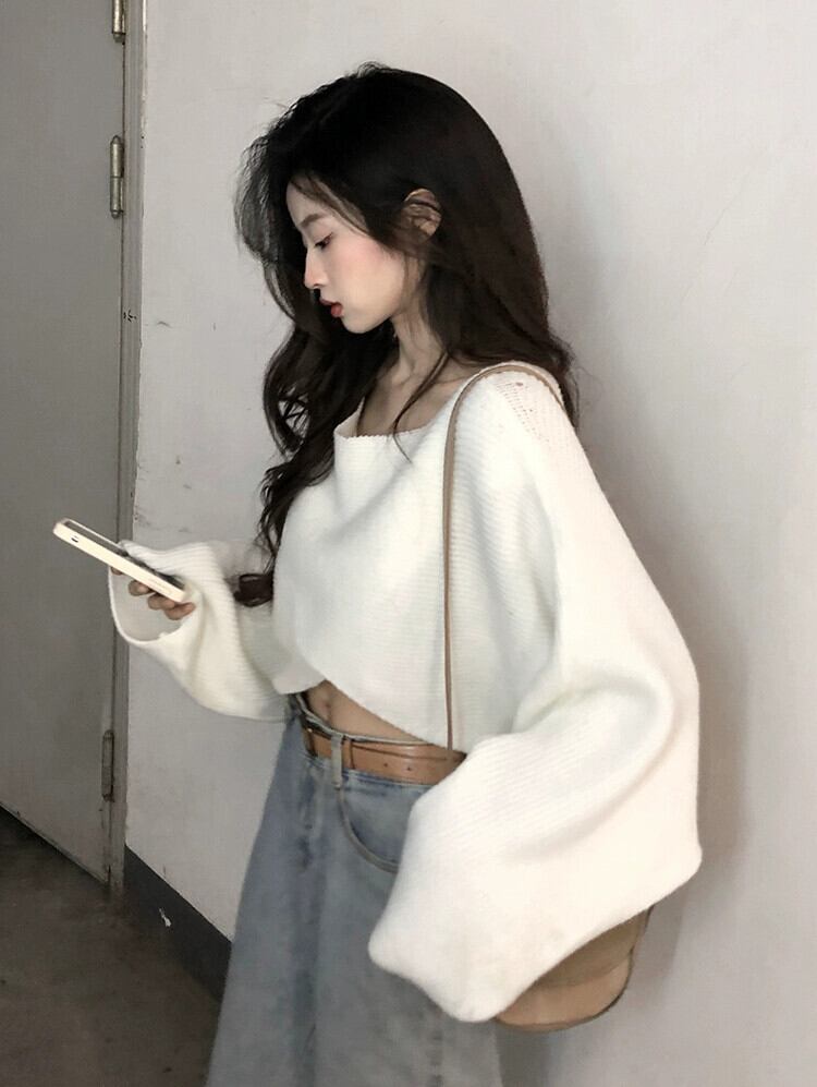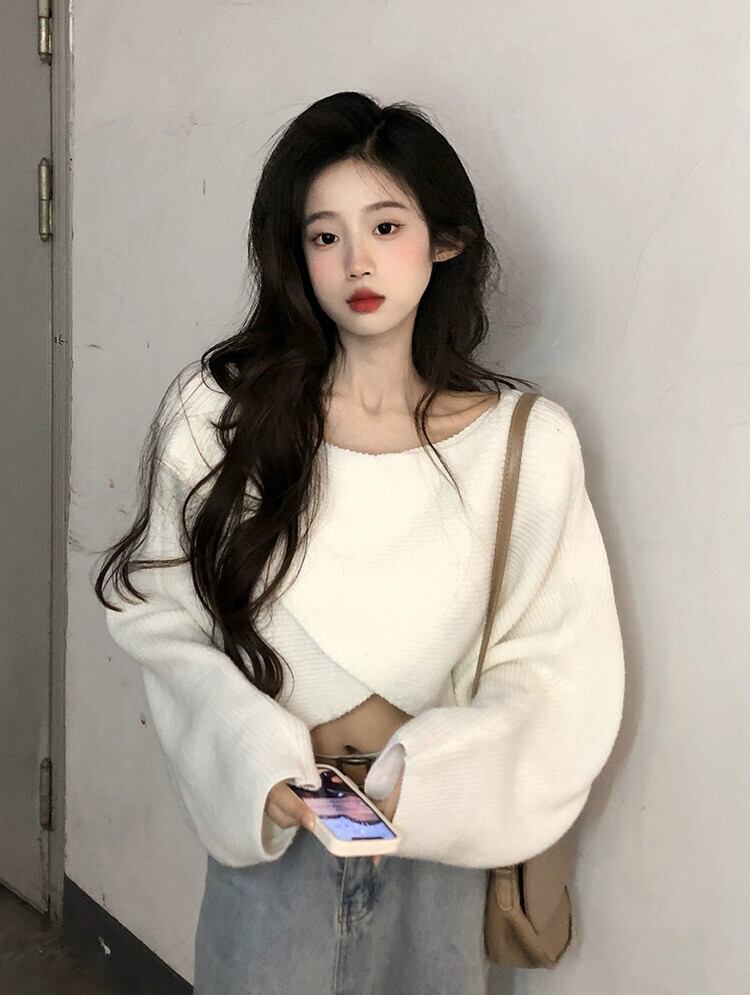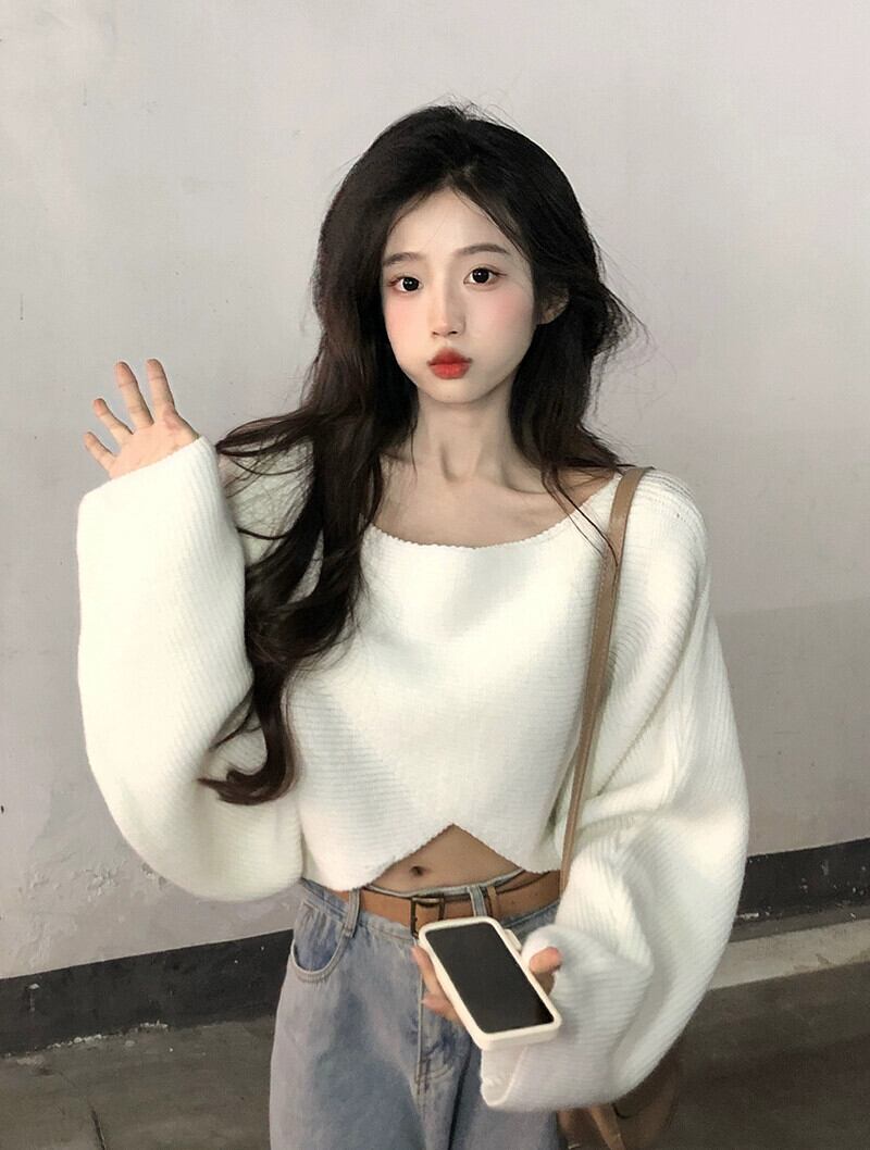 ルーズで怠惰なショートセーターの女性のデザインニッチ2023秋の新しいハイエンド不規則なニットセーター オータム 秋物 8571628134755631