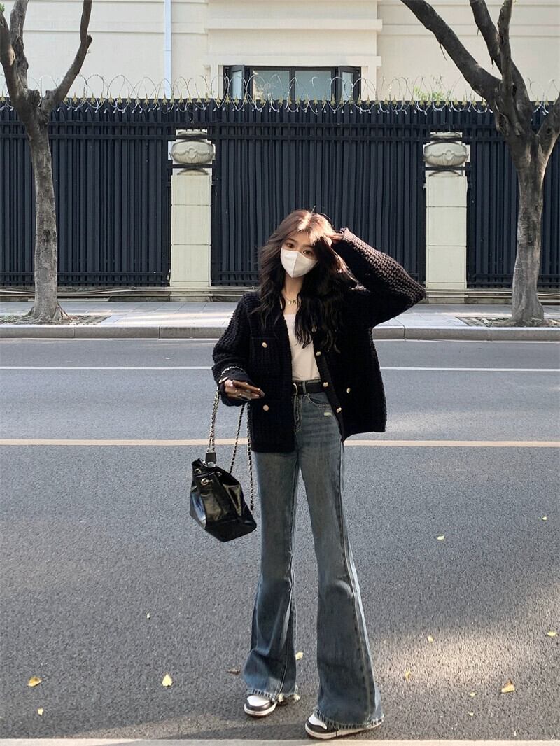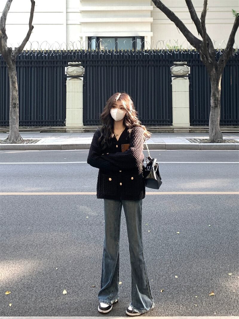Xiaoxiangfeng セーター ジャケット レディース 秋 2023 フレンチ ジェントル スタイル - レベル ブラック ニット カーディガン オータム 秋物 8571668754064156