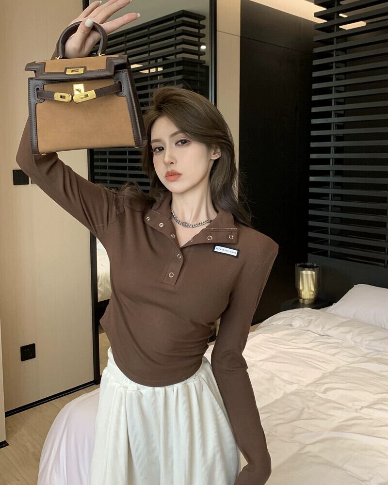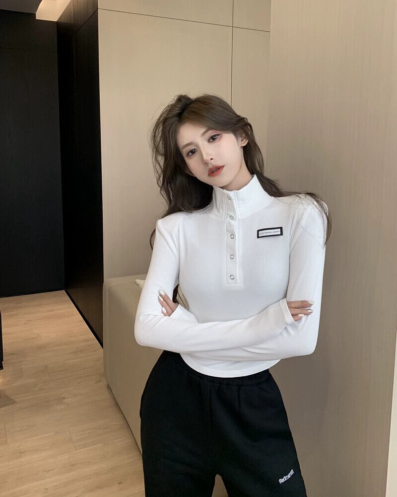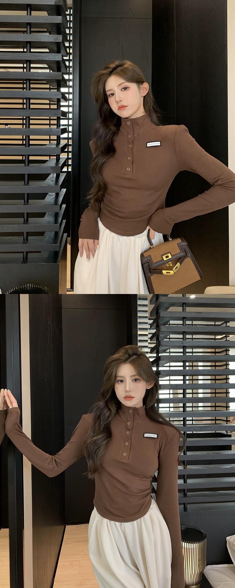 ハーフタートルネック起毛ボトムシャツレディース秋インナーショルダーパッドトップデザインニッチスイートネクタイ長袖Tシャツ ロング 大人ガーリー スウィート キュート カジュアル オータム 秋物 8571639638132777