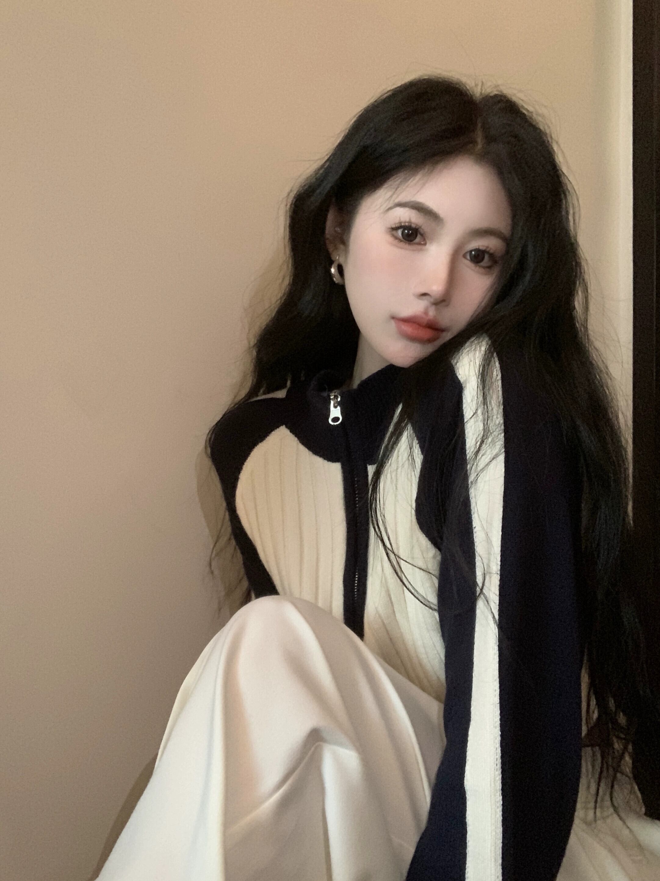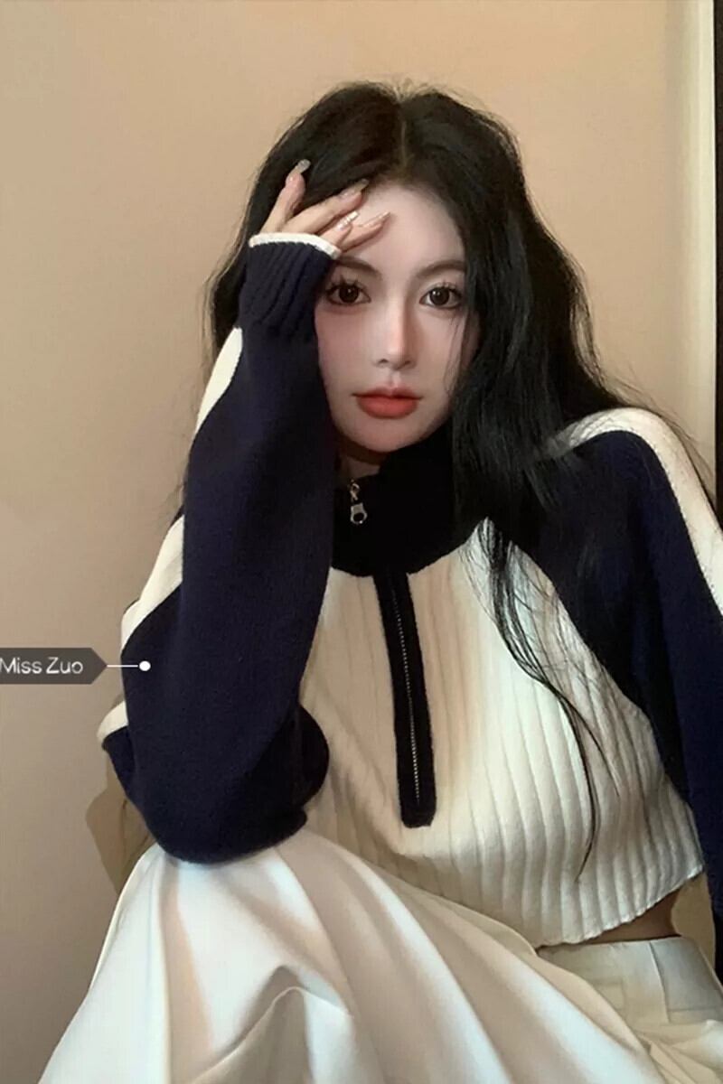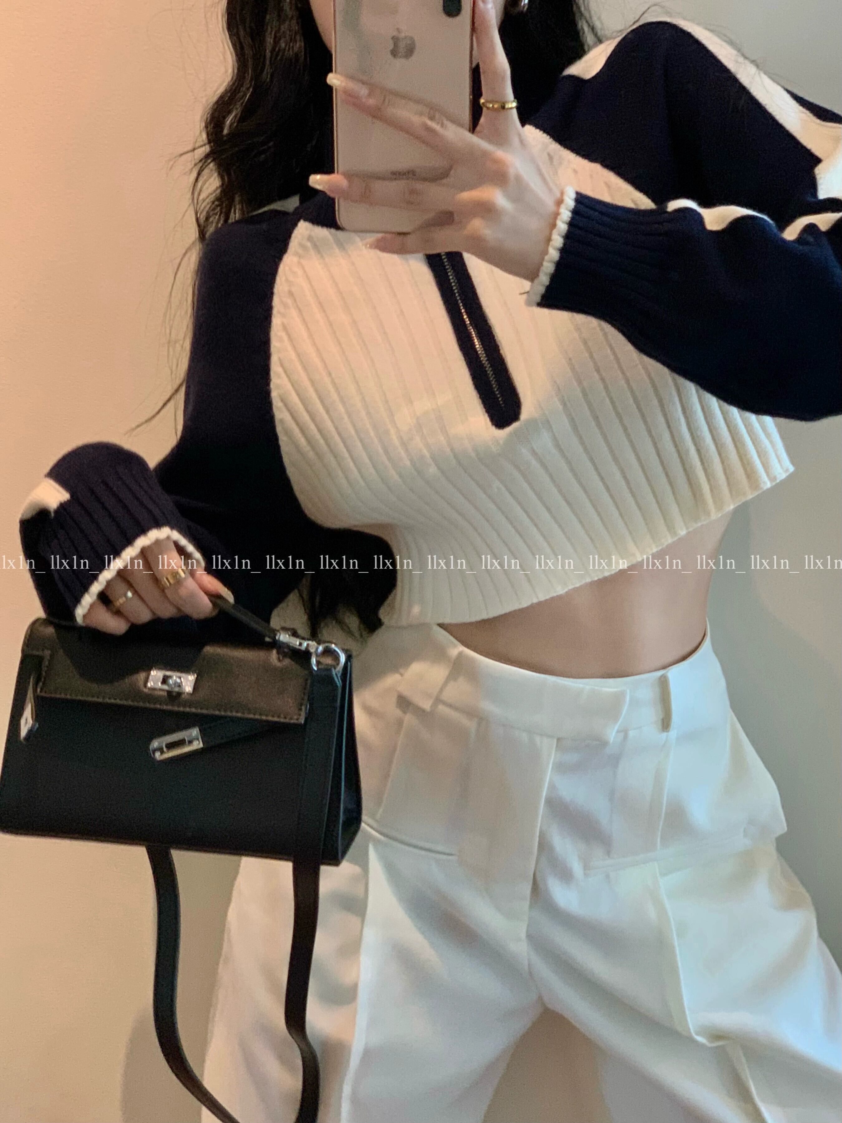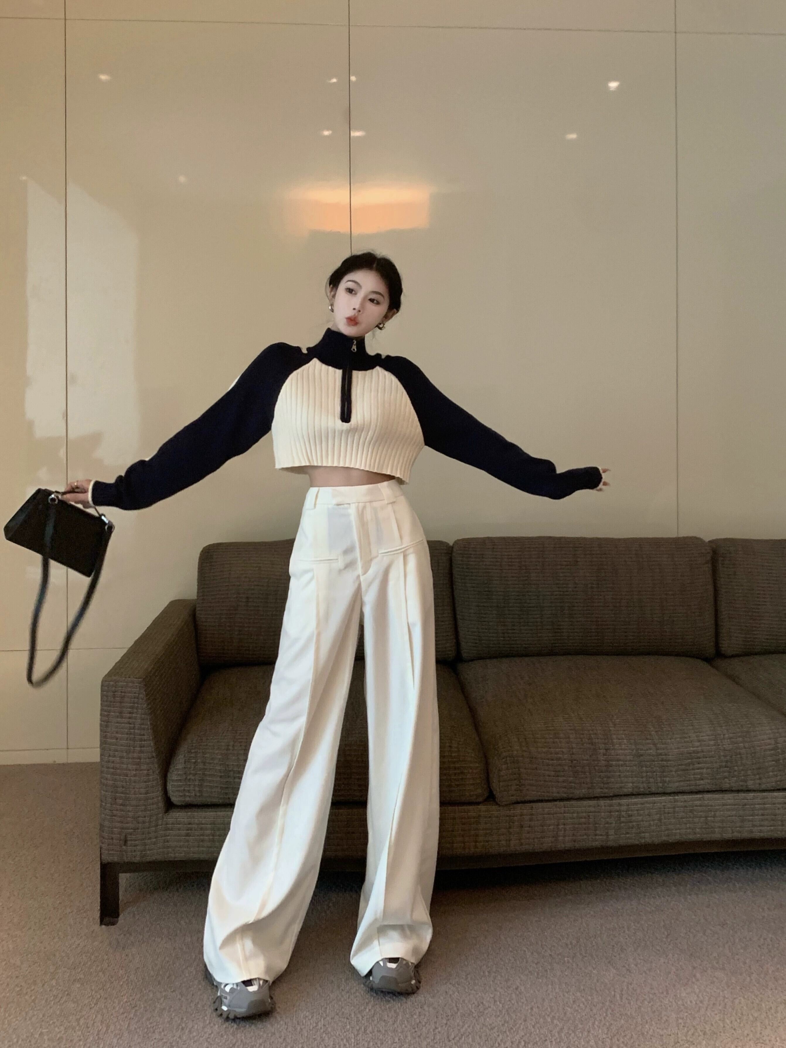 ホワイトハーフジップショートセーター女性秋冬2023新しいシックで甘いデザインニッチセーター 大人ガーリー スウィート キュート カジュアル オータム 秋物 ウィンター 冬物 8571698885950178