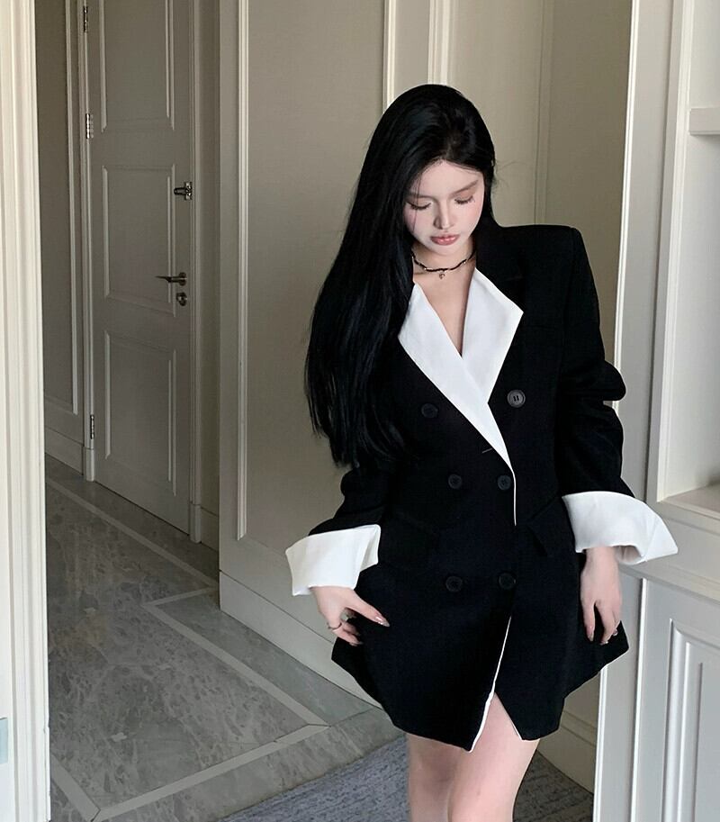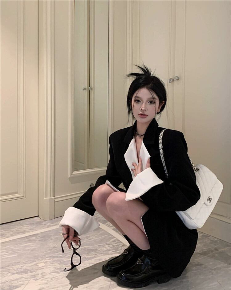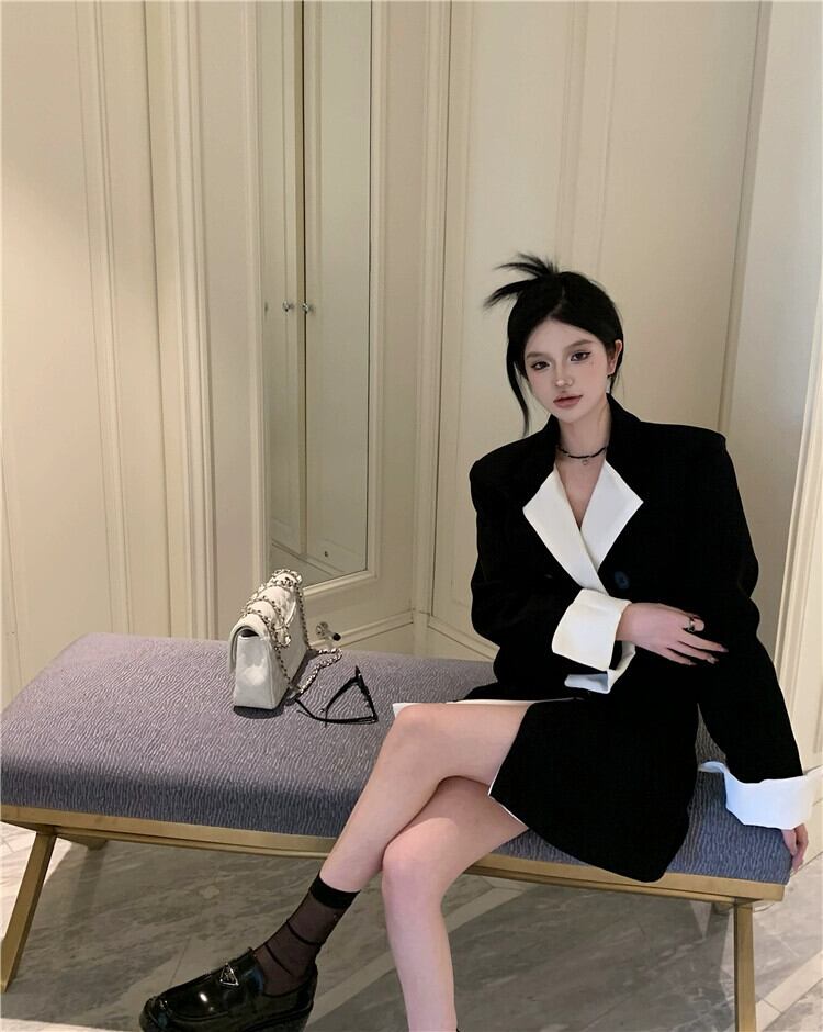 ミドル丈のスーツジャケットの女性、ハイエンドのデザイン、ニッチな2023秋の新しいスタイル、今年人気のブラックスーツ オータム 秋物 857161239599979