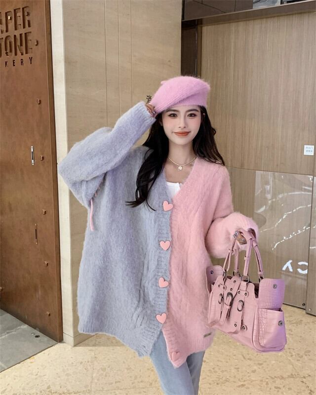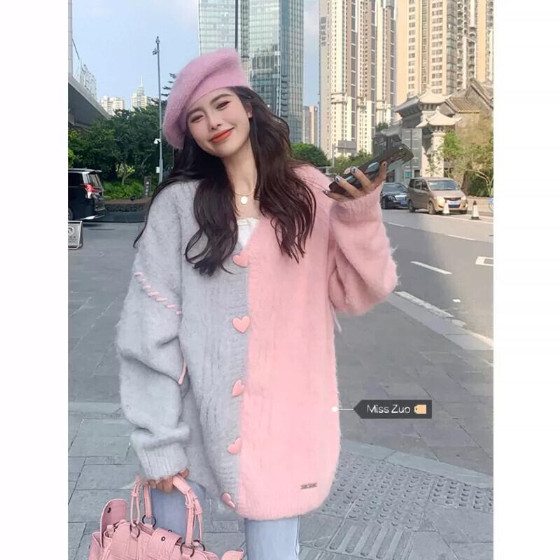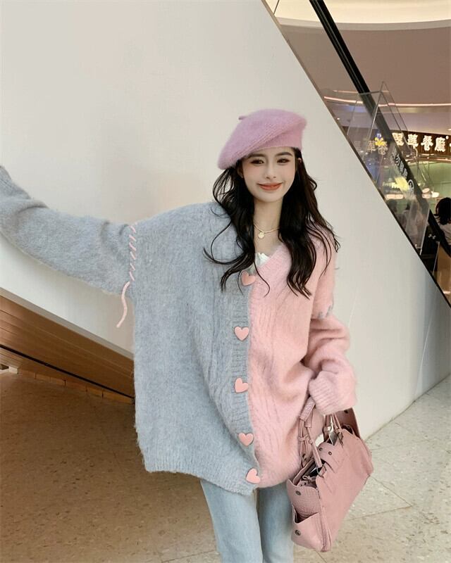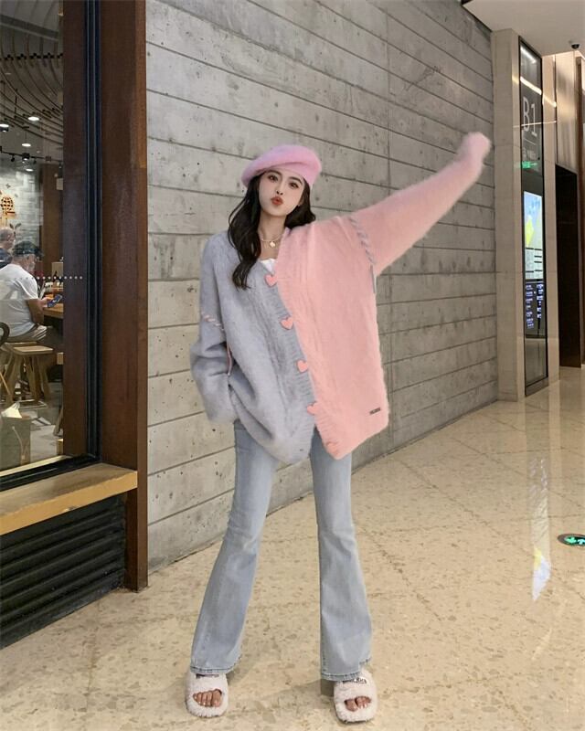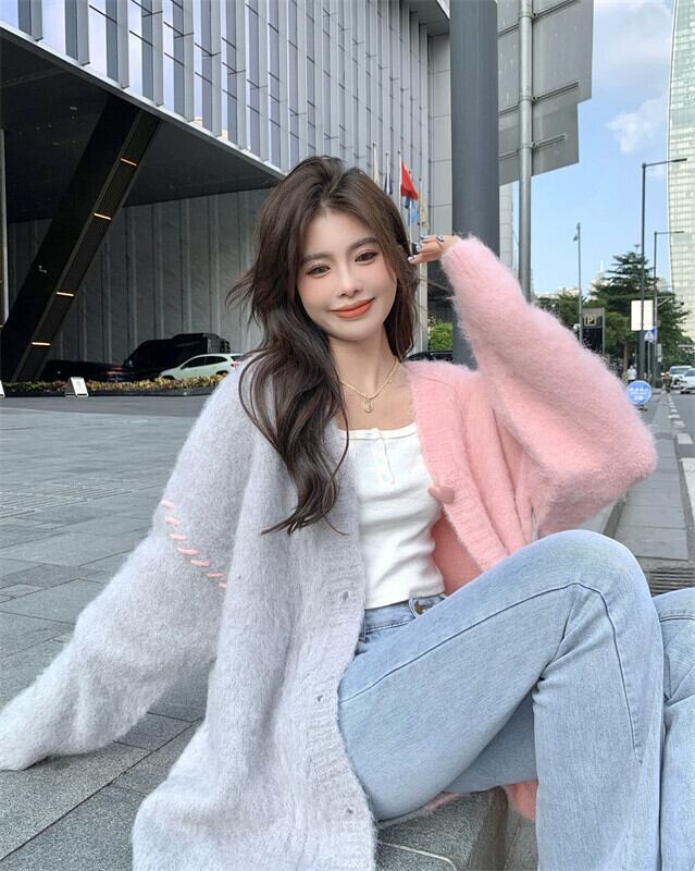 Fufu の V ネックセータージャケットレディース 2023 秋冬新作ルーズスタイル怠惰なスタイルニットカーディガン オータム 秋物 ウィンター 冬物 Vネック 8571612541393974