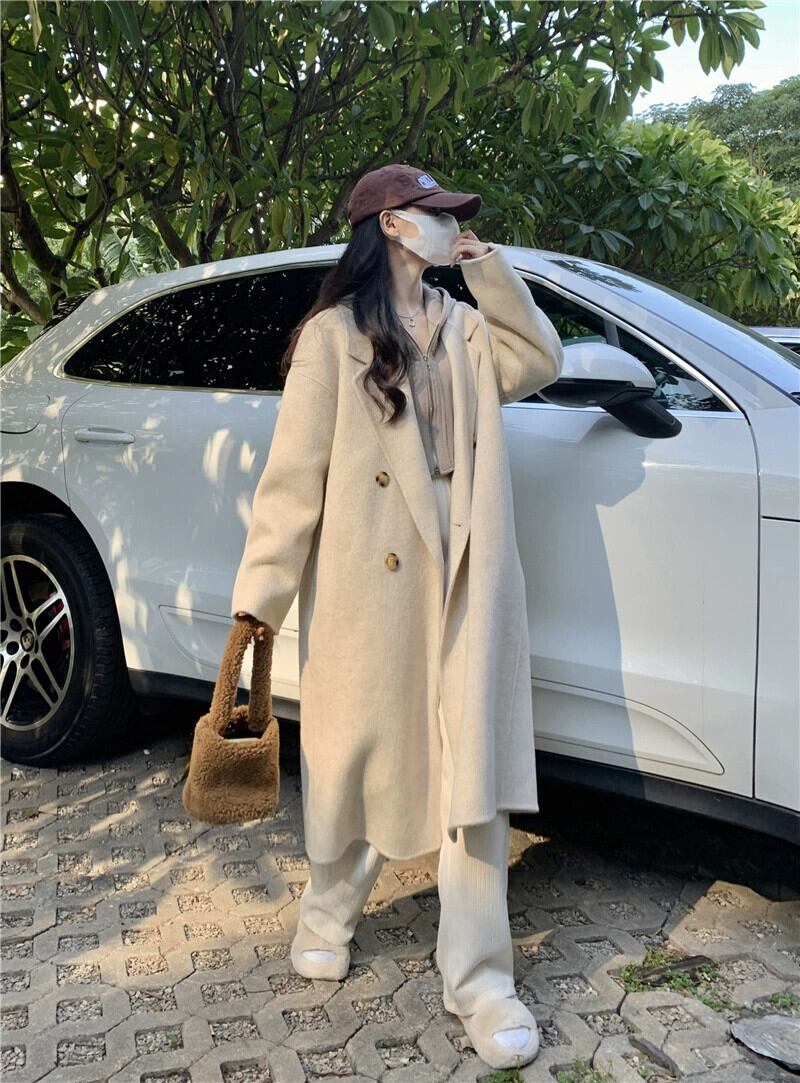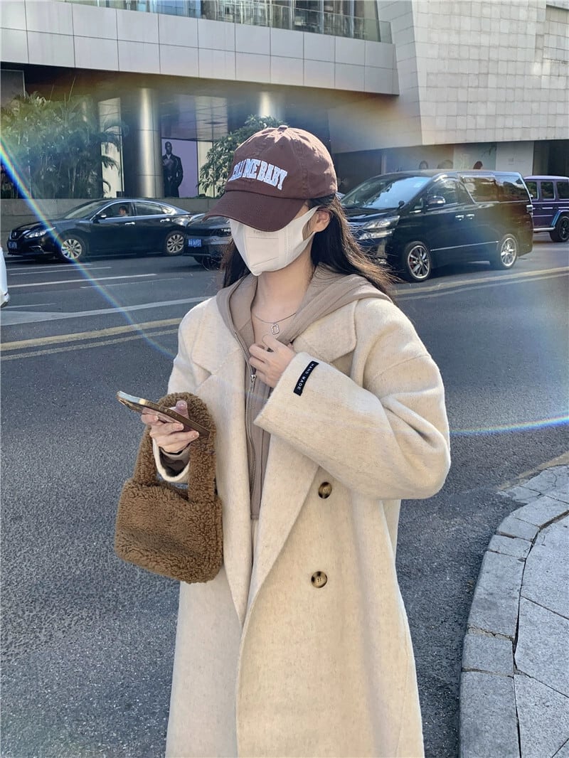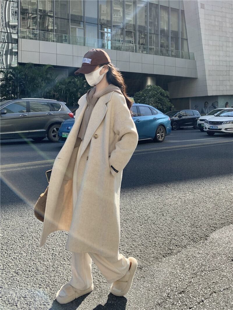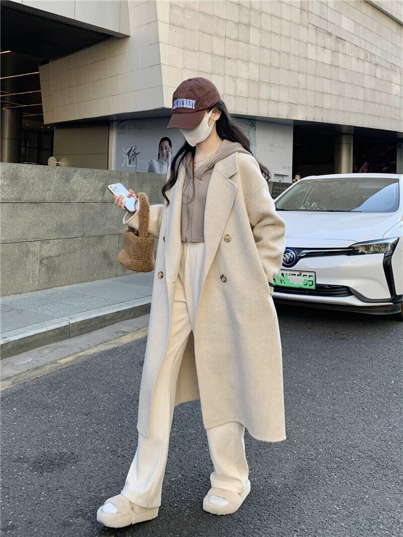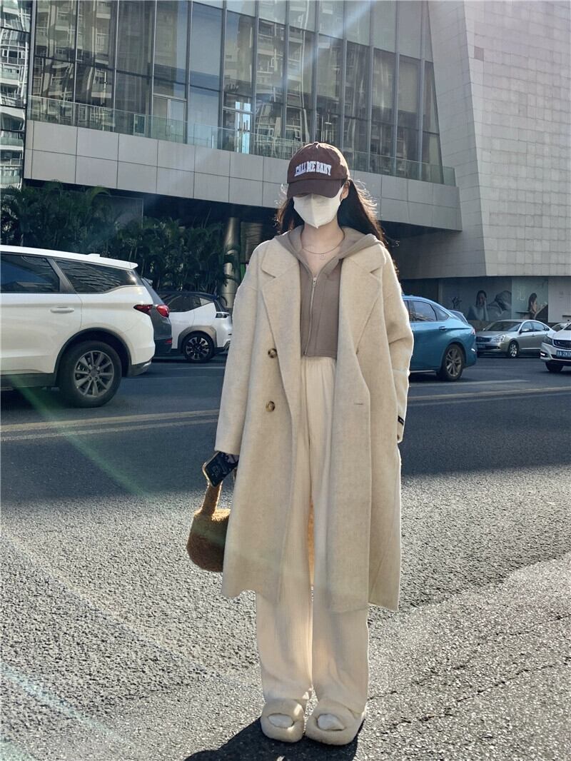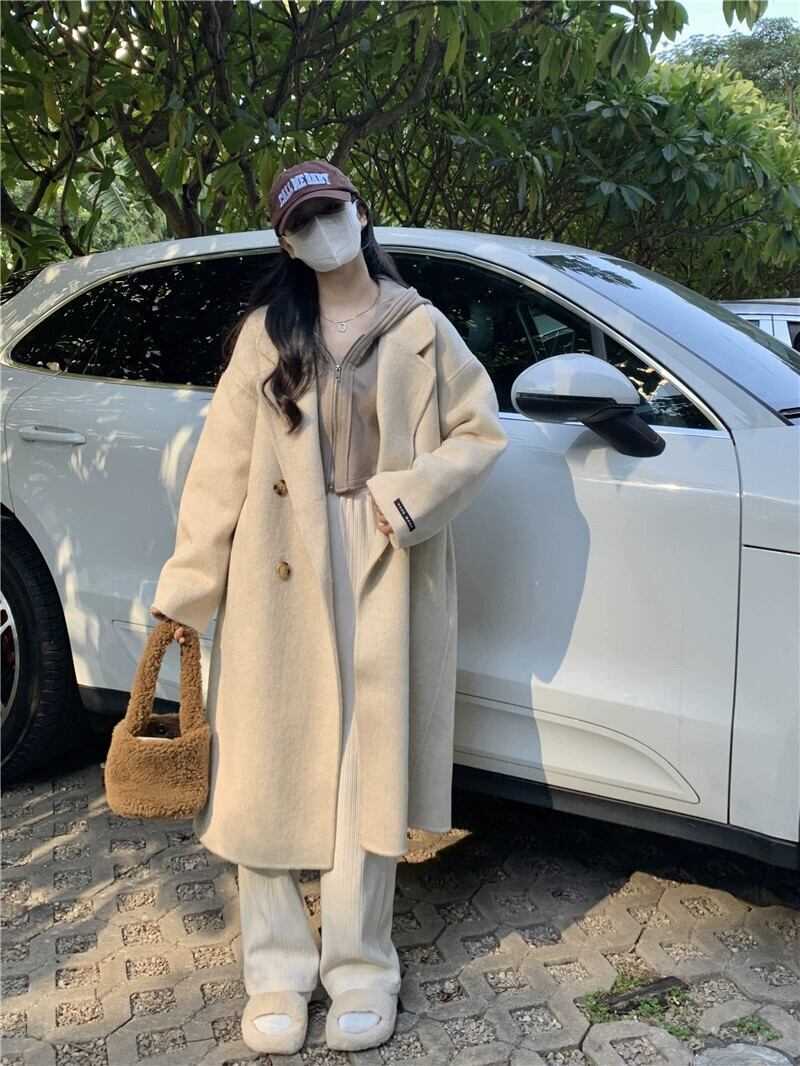 ミドル丈ウールコートの女性の秋冬2023新しいニッチデザインスタイル両面ウールコート小人 オータム 秋物 ウィンター 冬物 8571624815828847