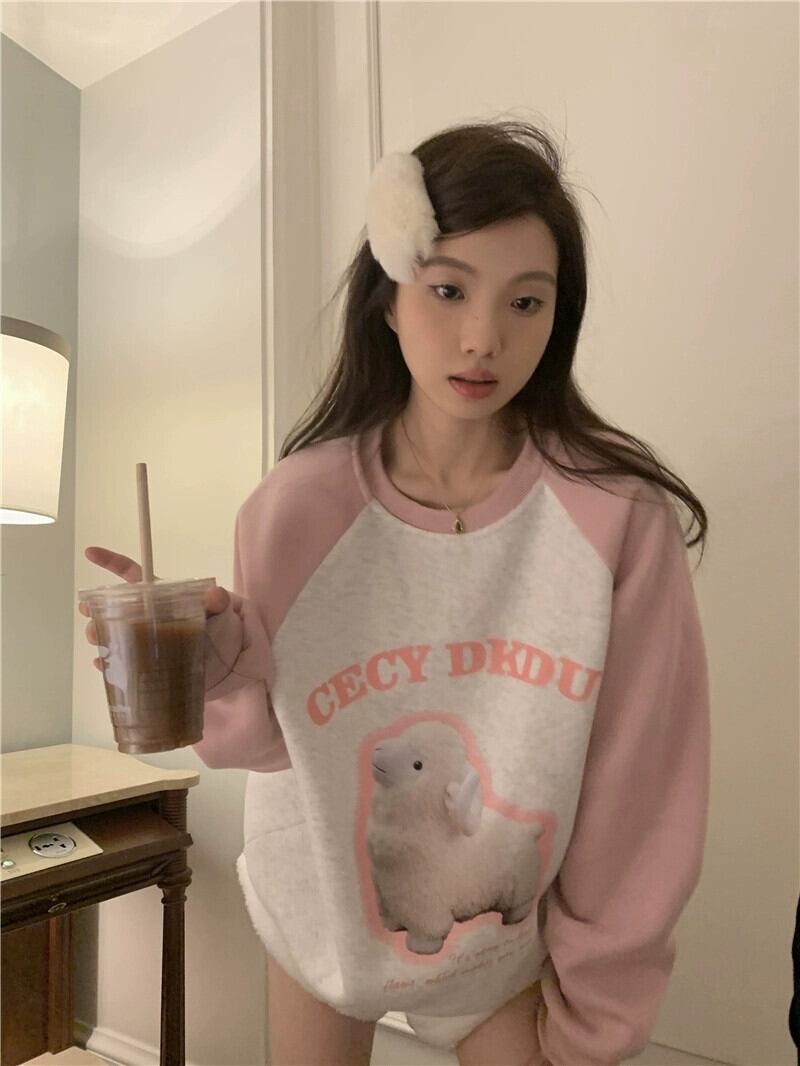 ジェントルブリーズフーフセーター女性の秋と冬プラスベルベット肥厚 2023 小さなルーズラグランスリーブトップ オータム 秋物 ウィンター 冬物 8571643342746968