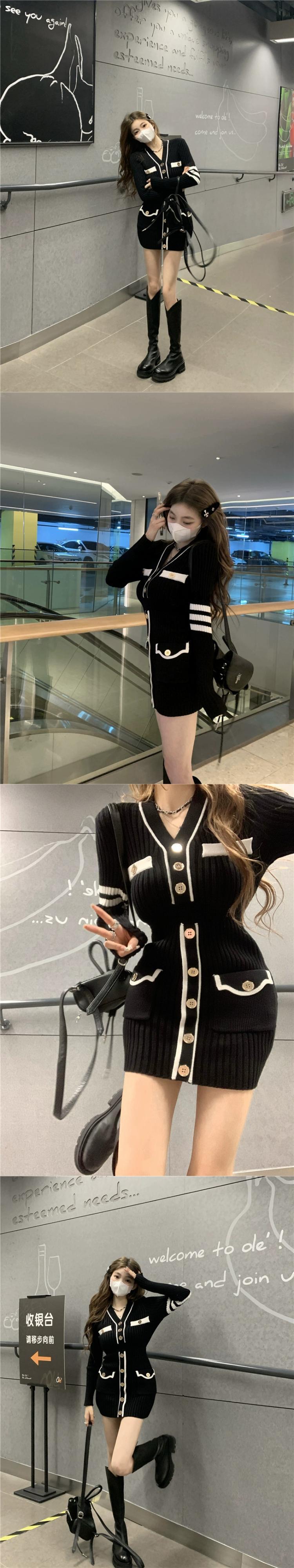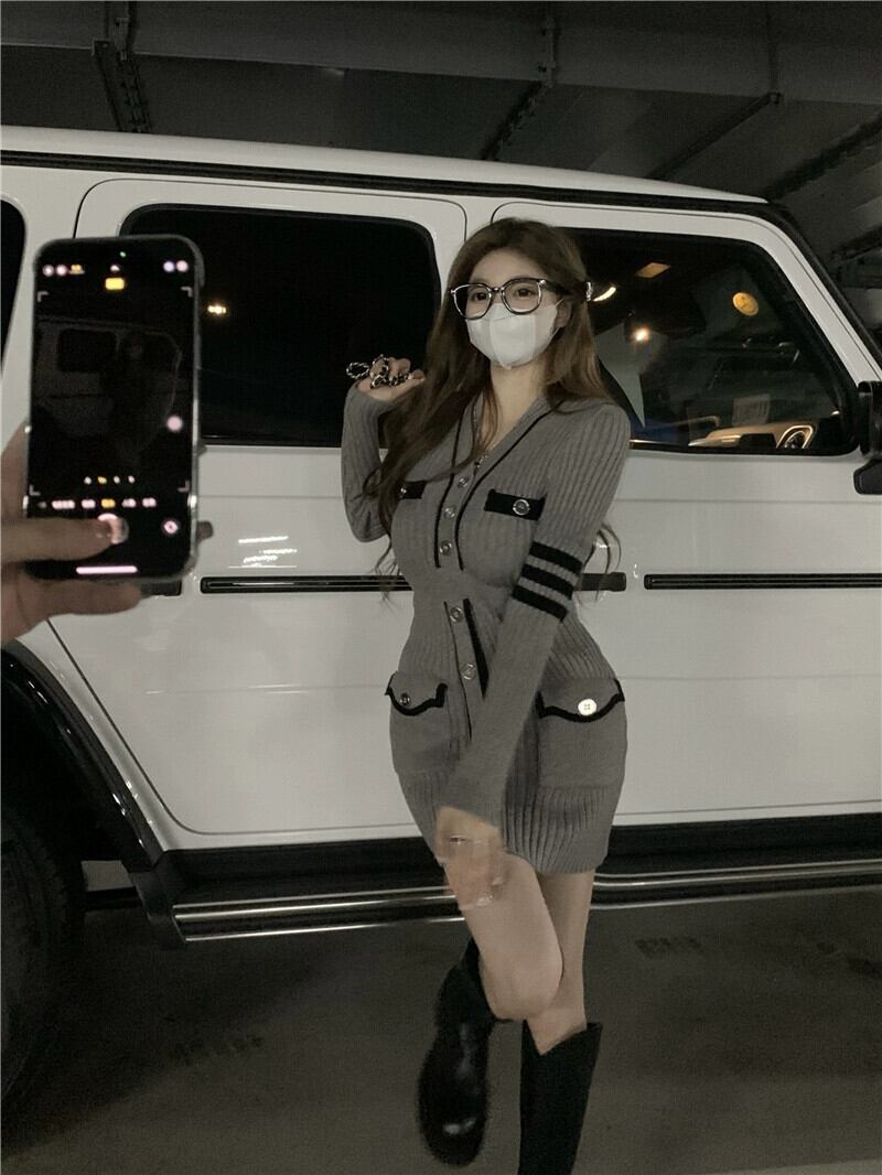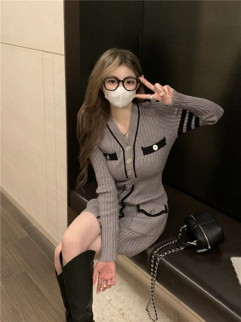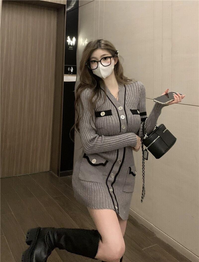 ダークグレーの小さな香りのスタイルボトリングドレス女性の秋 2023 新しいスタイルの気質ハイエンドスリムフィットヒップスカート オータム 秋物 8571651007821341