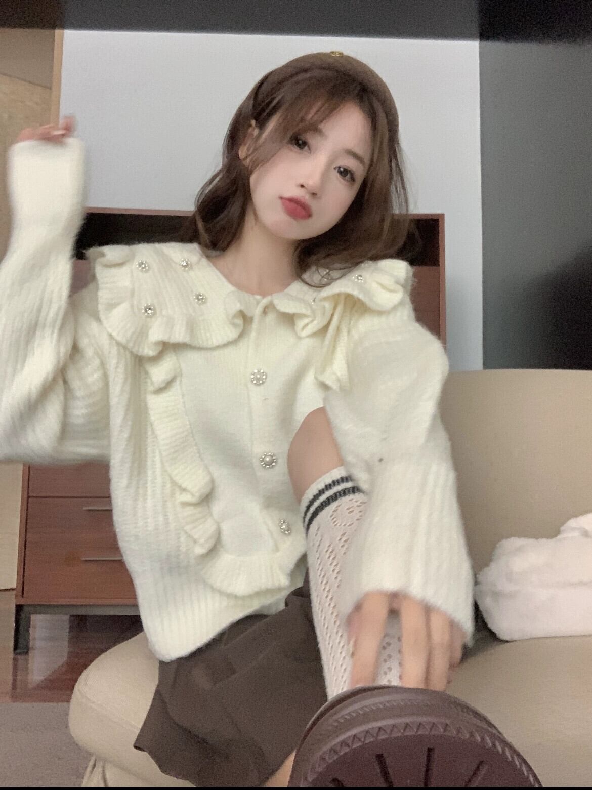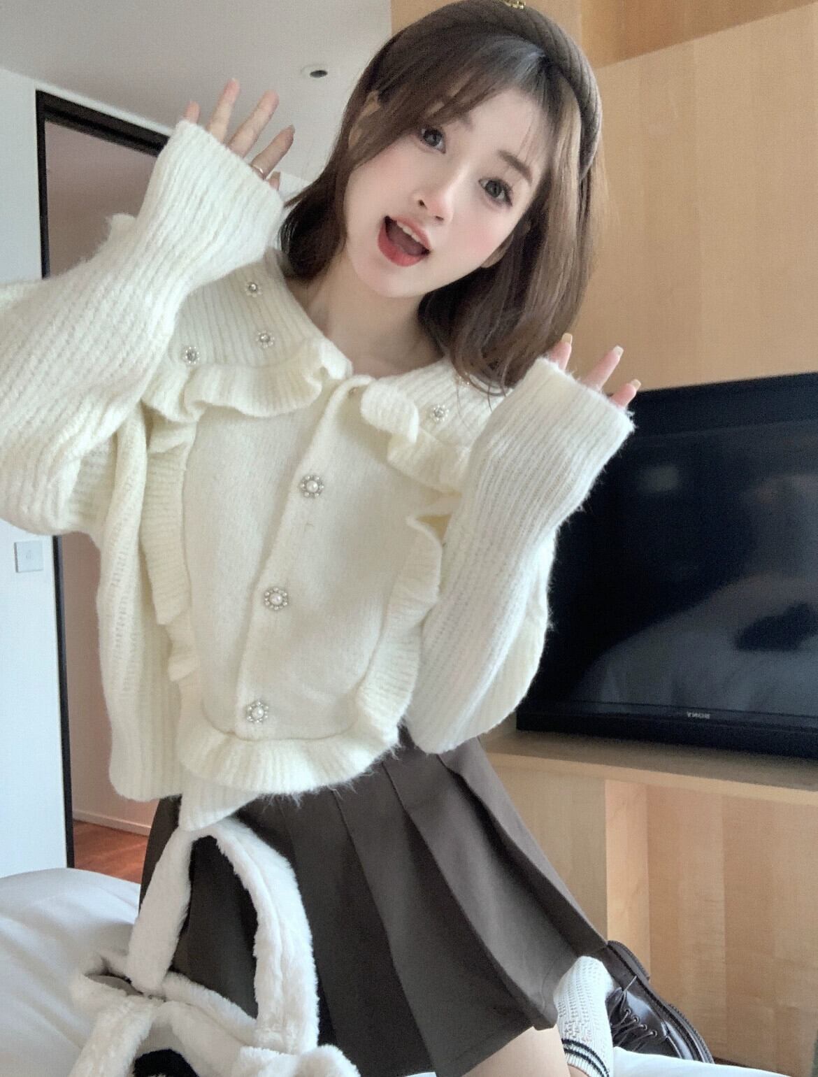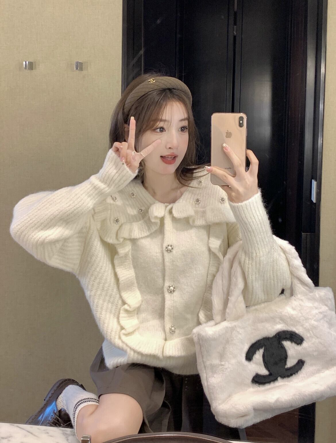 ドールカラーセーター女性の秋冬デザインニッチ2023新しい甘いスタイルショートトップ小柄で優しいスタイル 大人ガーリー スウィート キュート カジュアル オータム 秋物 ウィンター 冬物 8571667732797158