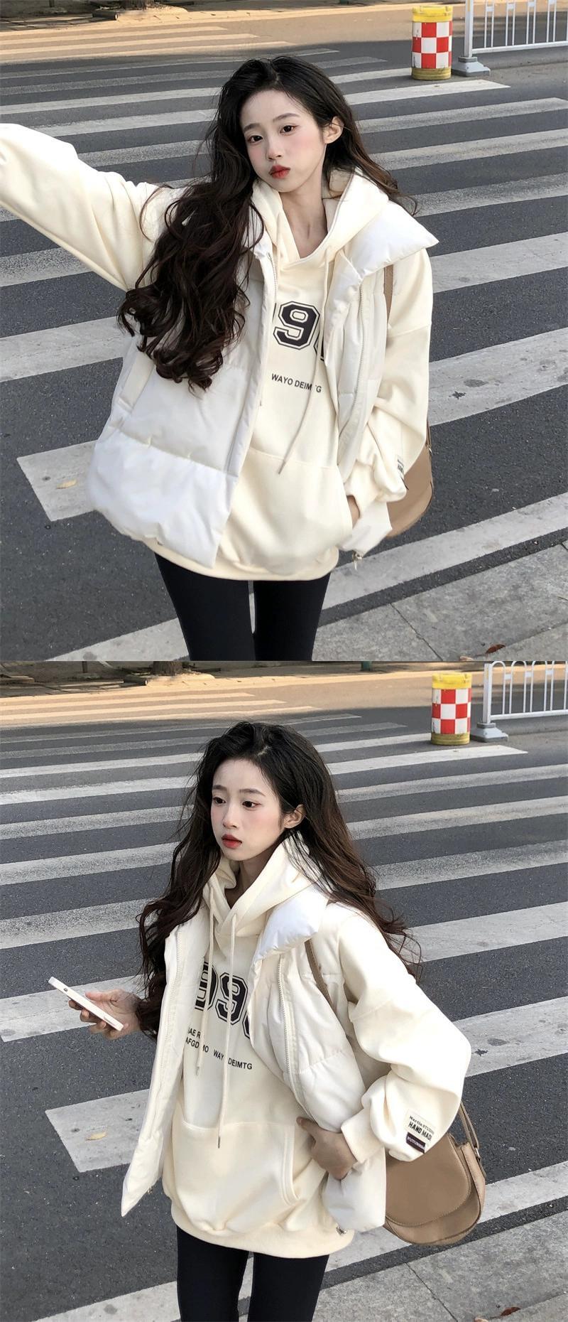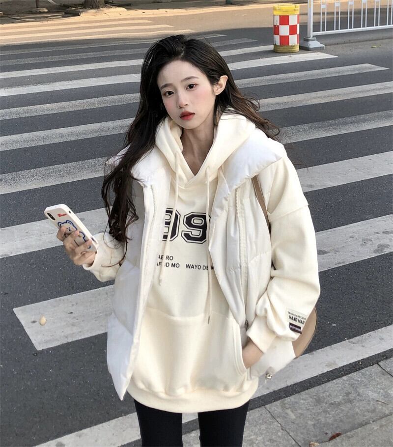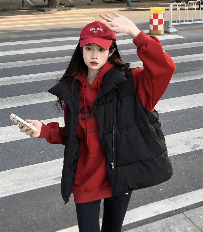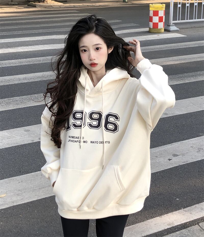 秋冬のレイヤードインナーフード付きスウェットシャツの小さな女性、ベルベットと厚みのある2023新しいスタイルの怠惰なスタイルの長袖トップ ロング レッド オータム 秋物 ウィンター 冬物 8571632681936370