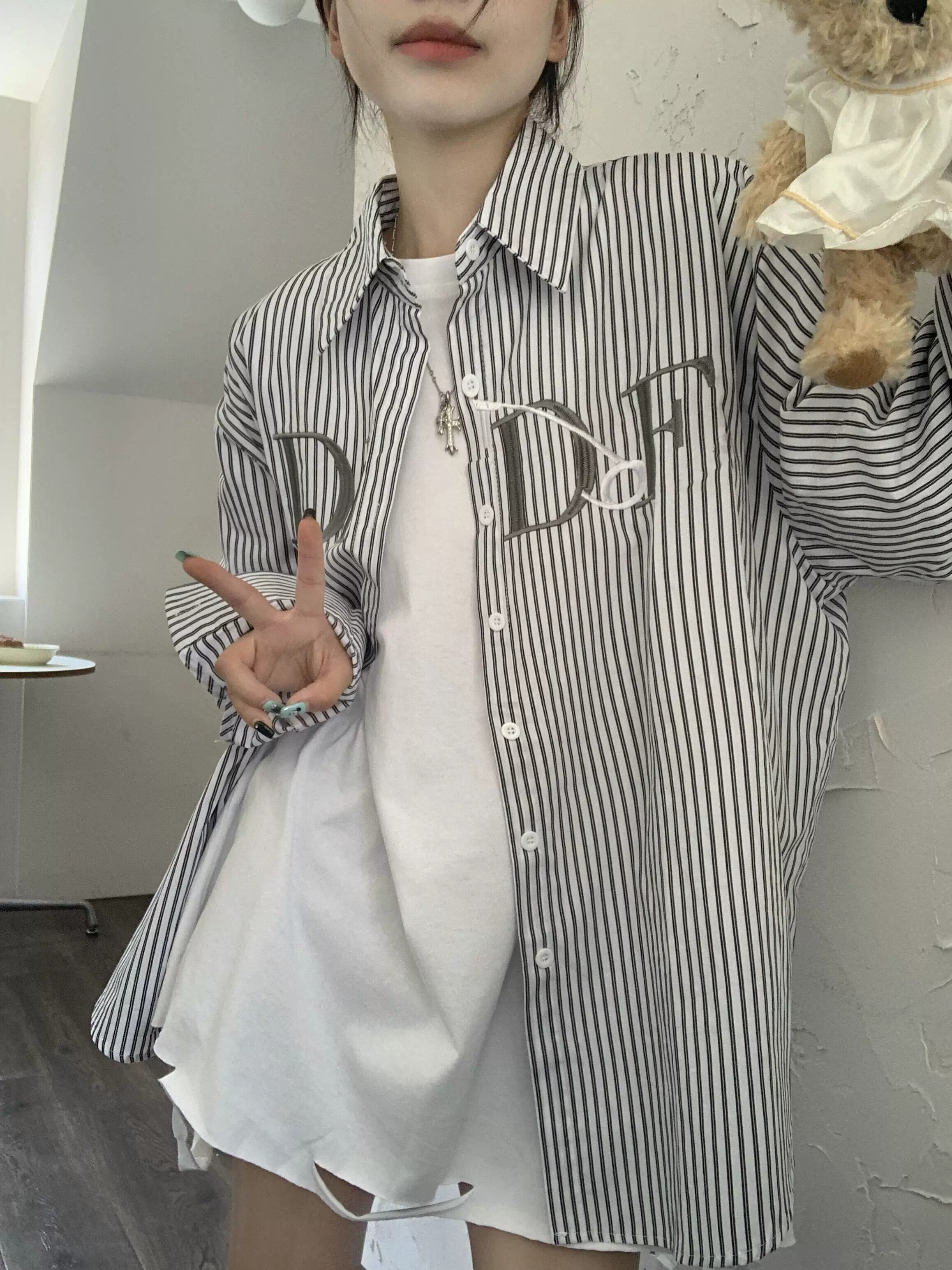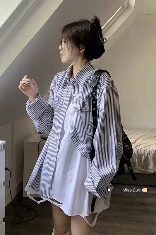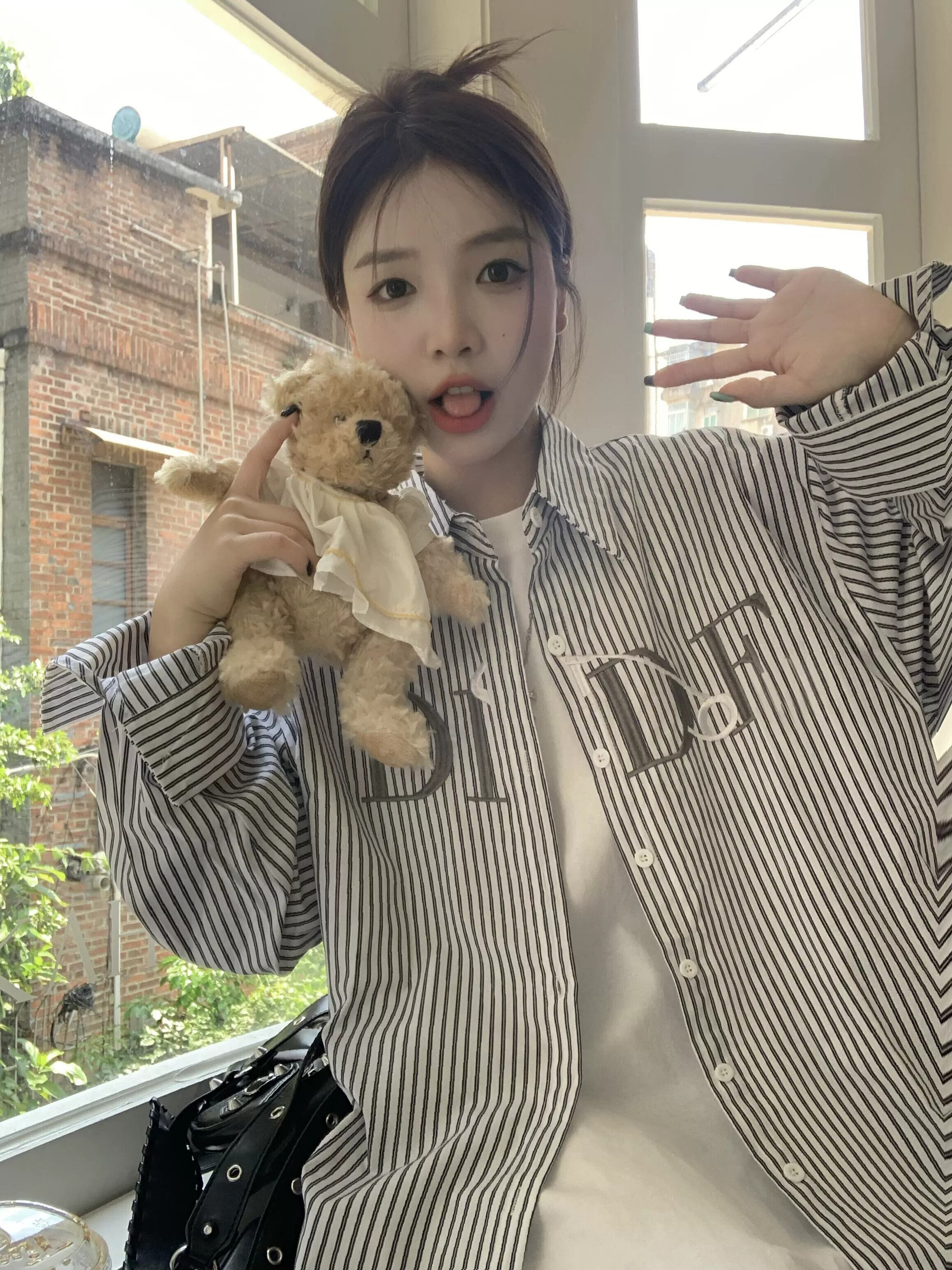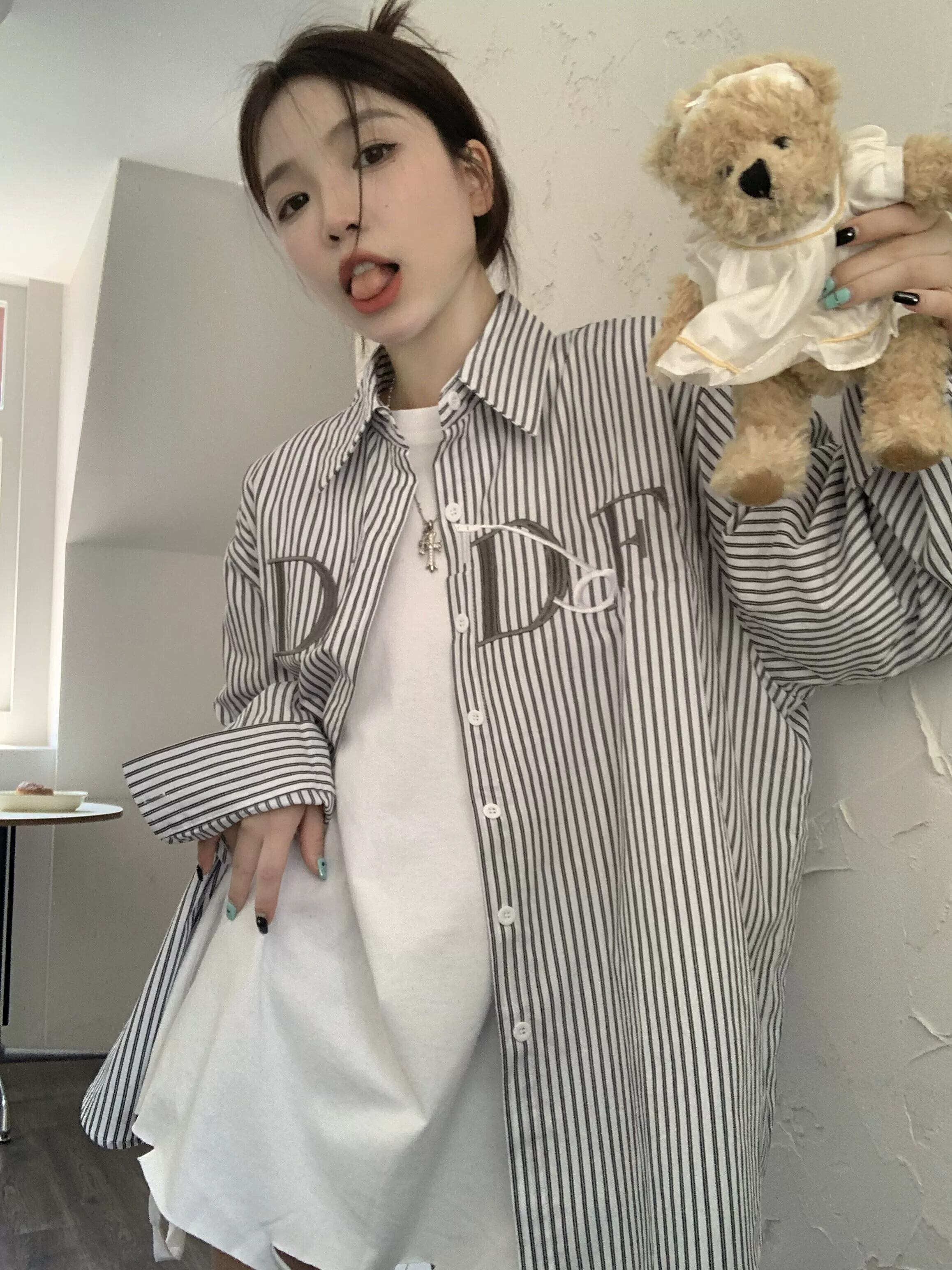 ストライプシャツジャケットレディースデザインニッチスタッキングシャツ2023初秋の新作ボーイフレンドスタイル長袖トップ ロング オータム 秋物 8571675613884872